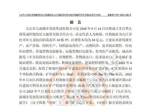 九江市九派城鄉(xiāng)發(fā)展集團(tuán)有限公司柴桑區(qū)朗山礦區(qū)建筑石料用灰?guī)r礦新建露天開采工程安全預(yù)評價(jià)報(bào)告