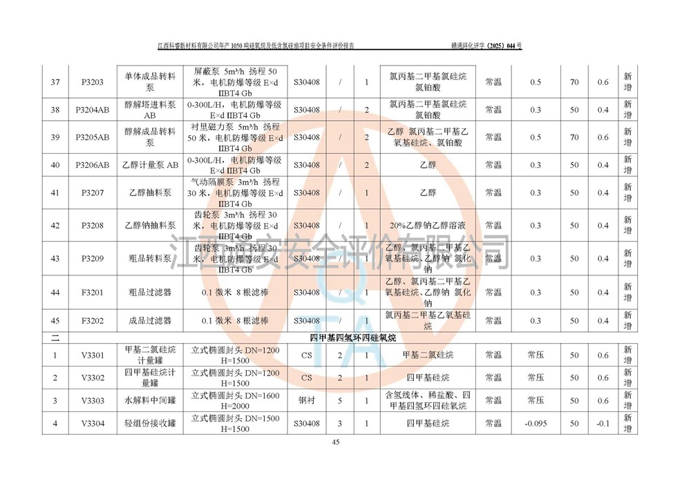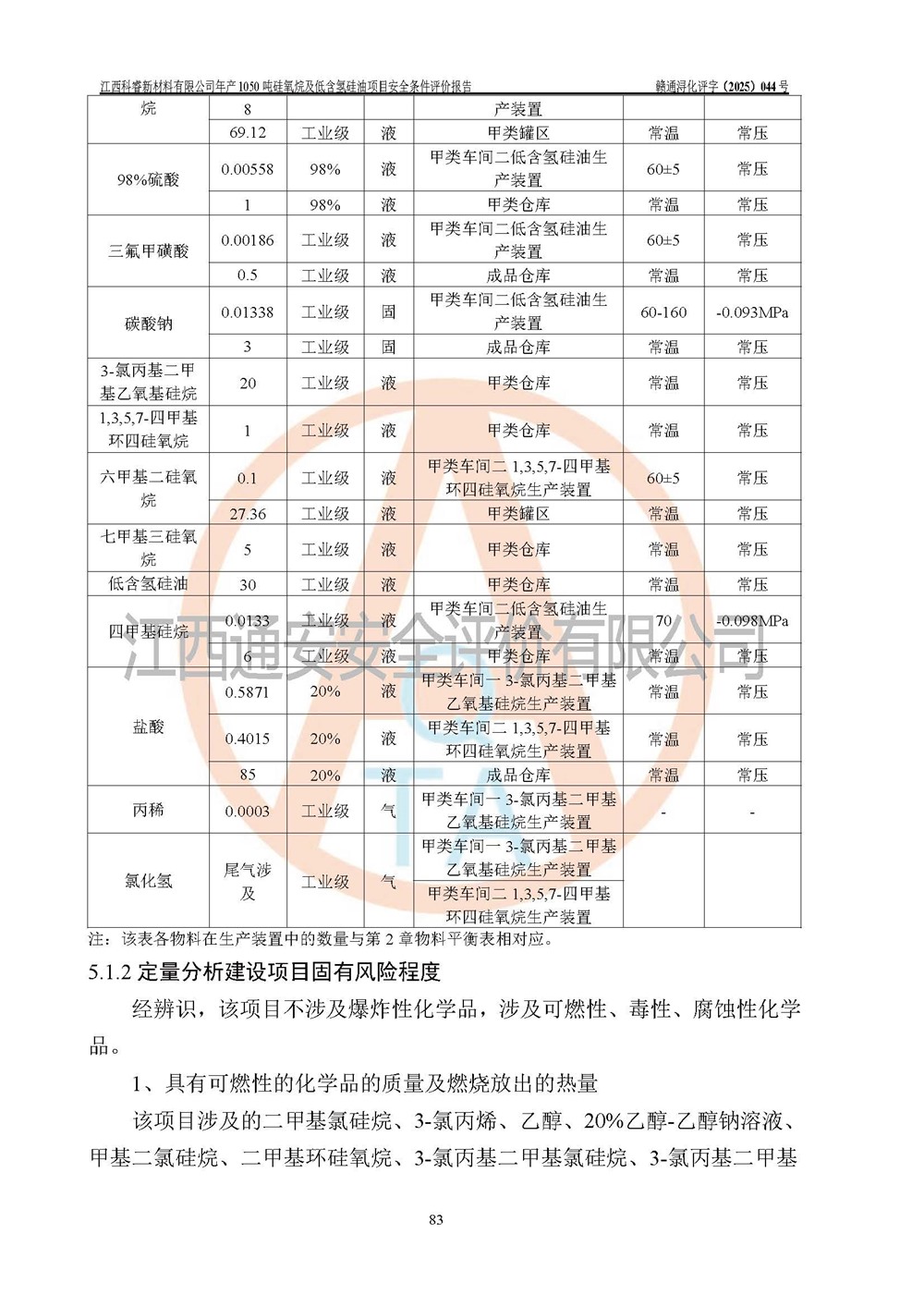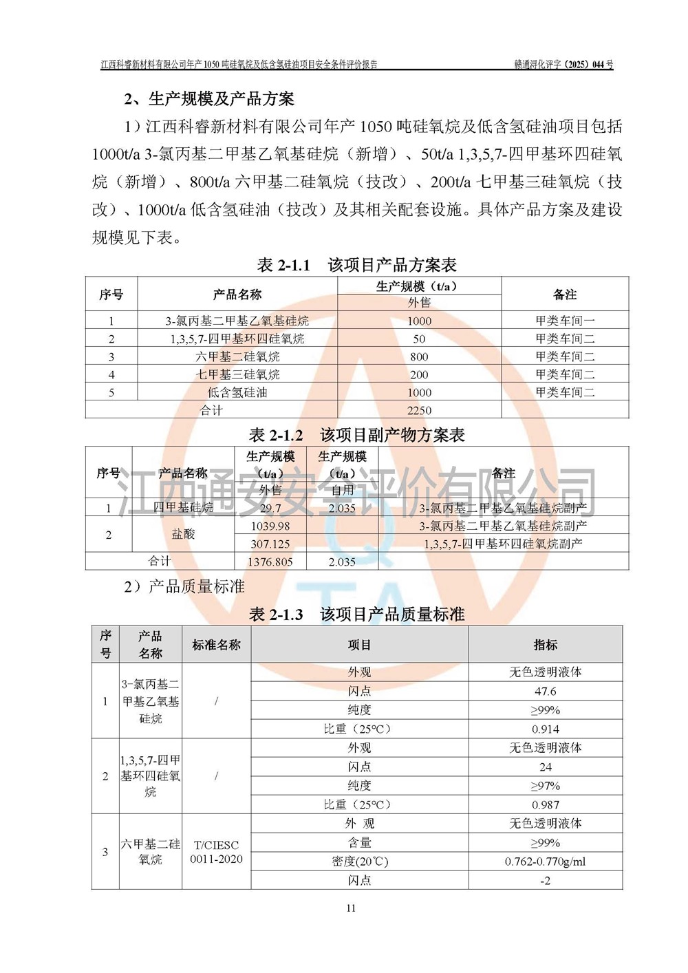 評(píng)價(jià)報(bào)告名稱 | 江西科睿新材料有限公司年產(chǎn)1050噸硅氧烷及低含氫硅油項(xiàng)目安全條件評(píng)價(jià) | |||||