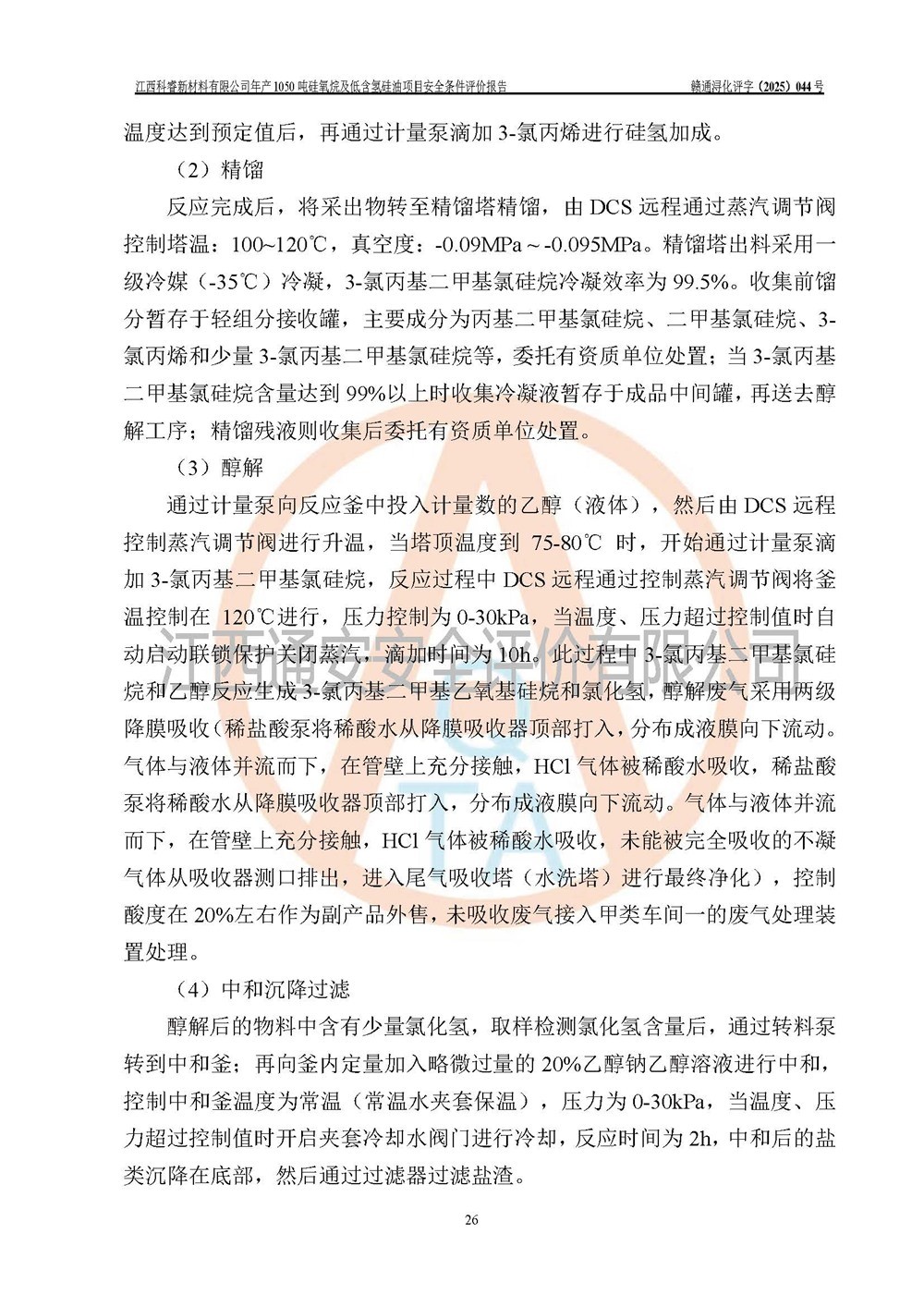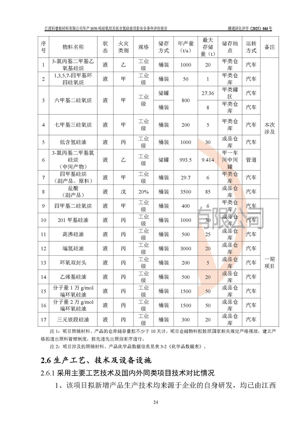項(xiàng)目簡介 | 江西科睿新材料有限公司位于江西省永修縣云山經(jīng)濟(jì)開發(fā)區(qū)星火工業(yè)園希望大道7號(hào),于2014年02月19日在永修縣市場監(jiān)督管理局注冊(cè)成立,注冊(cè)資本為2000(萬元),主要經(jīng)營一般項(xiàng)目:有機(jī)硅產(chǎn)品的生產(chǎn)、銷售(危險(xiǎn)化學(xué)品除外);進(jìn)出口業(yè)務(wù)(以上經(jīng)營項(xiàng)目**有專項(xiàng)規(guī)定的憑許可證、資質(zhì)證、批文經(jīng)營)。 為滿足企業(yè)內(nèi)部及市場需求擬再投資1215.94萬元在現(xiàn)有廠區(qū)內(nèi)建設(shè)年產(chǎn)1050噸硅氧烷及低含氫硅油項(xiàng)目,具體包括1000t/a 3-氯丙基二甲基乙氧基硅烷(新增)、50t/a 1,3,5,7-四甲基環(huán)四硅氧烷(新增)、800t/a六甲基二硅氧烷(技改)、200t/a七甲基三硅氧烷(技改)、1000t/a低含氫硅油(技改)。 | |||||