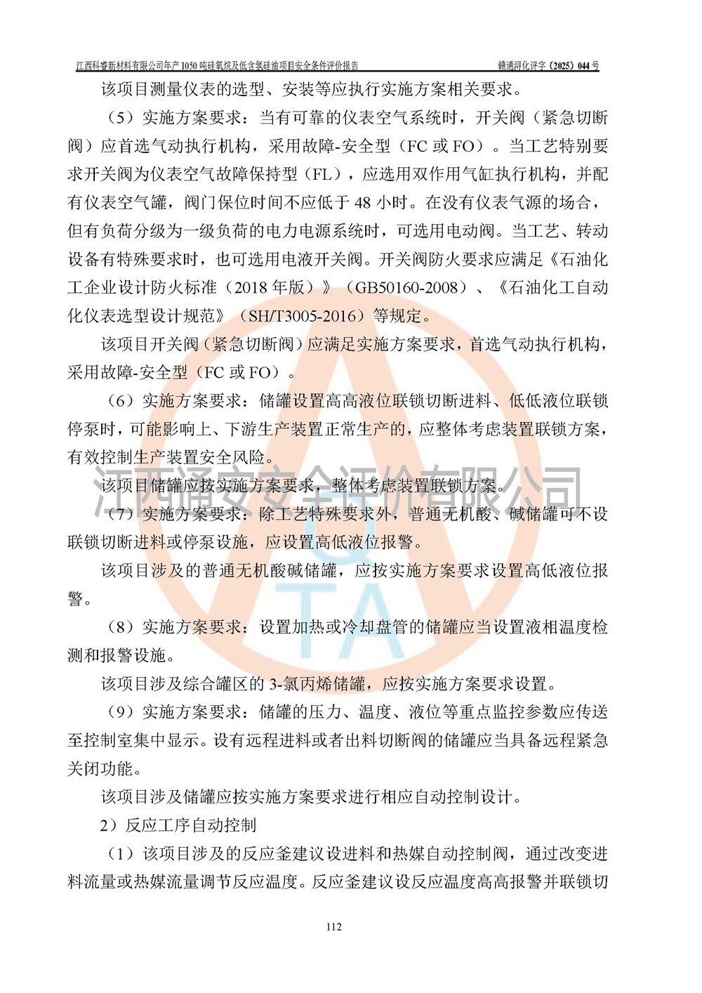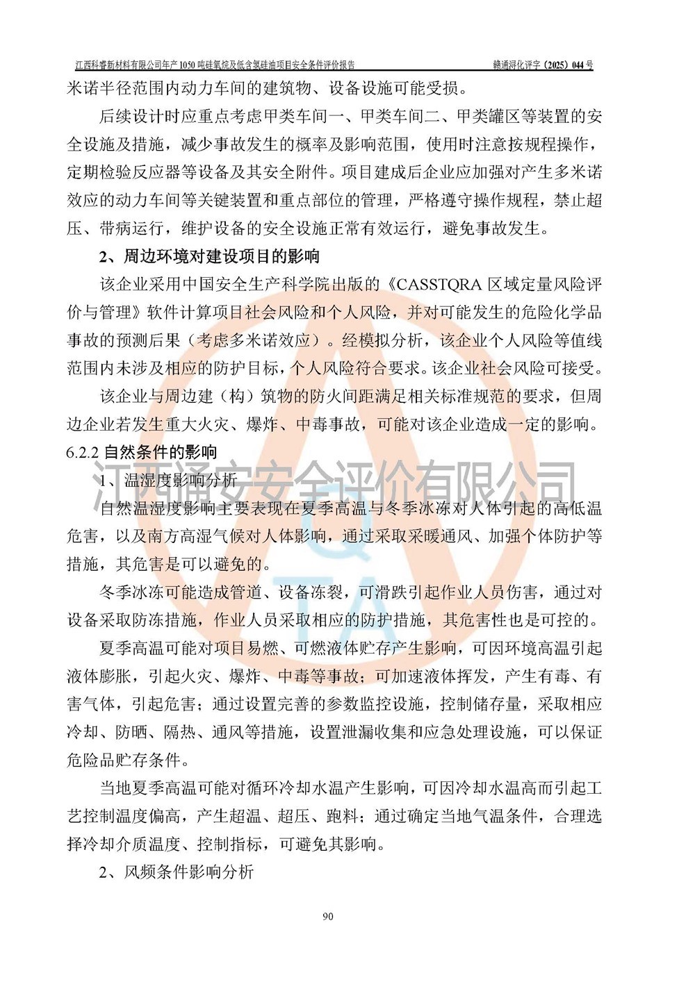 評(píng)價(jià)結(jié)論 | 江西科睿新材料有限公司年產(chǎn)1050噸硅氧烷及低含氫硅油項(xiàng)目的周邊環(huán)境、總體布局、自然環(huán)境能滿足建設(shè)安全條件;項(xiàng)目選擇的工藝過程及設(shè)備設(shè)施的安全可靠性能達(dá)到**法規(guī)、標(biāo)準(zhǔn)規(guī)定要求;項(xiàng)目存在的危險(xiǎn)有害因素可控,在落實(shí)本評(píng)價(jià)報(bào)告提出的有關(guān)安全對(duì)策措施后,其危險(xiǎn)有害程度能達(dá)到可以接受的程度,項(xiàng)目建設(shè)能夠?qū)崿F(xiàn)安全運(yùn)行的目標(biāo)。 | |||||