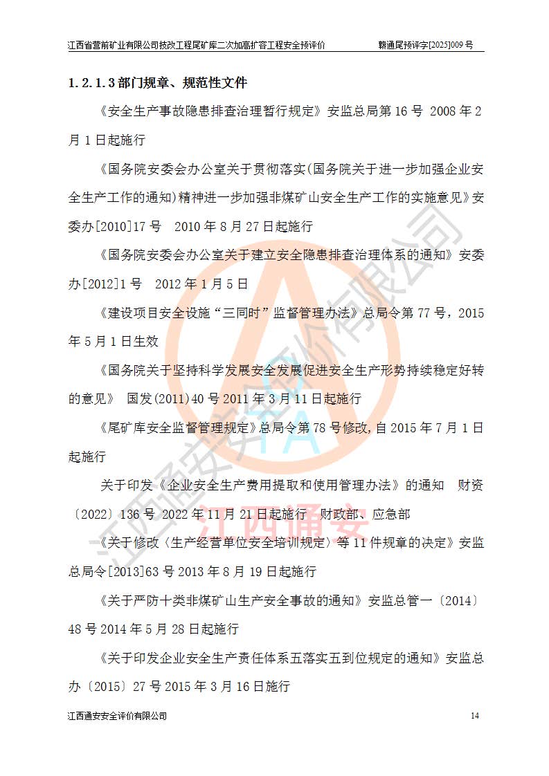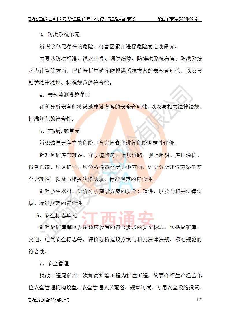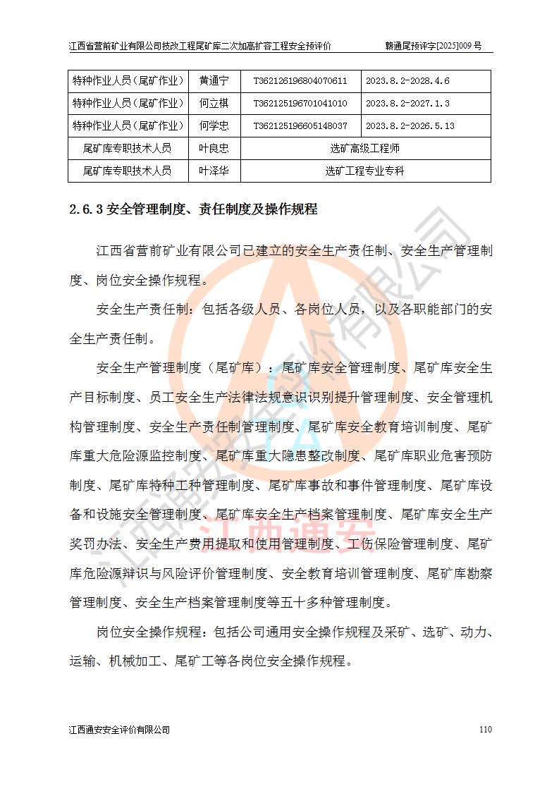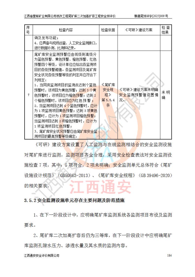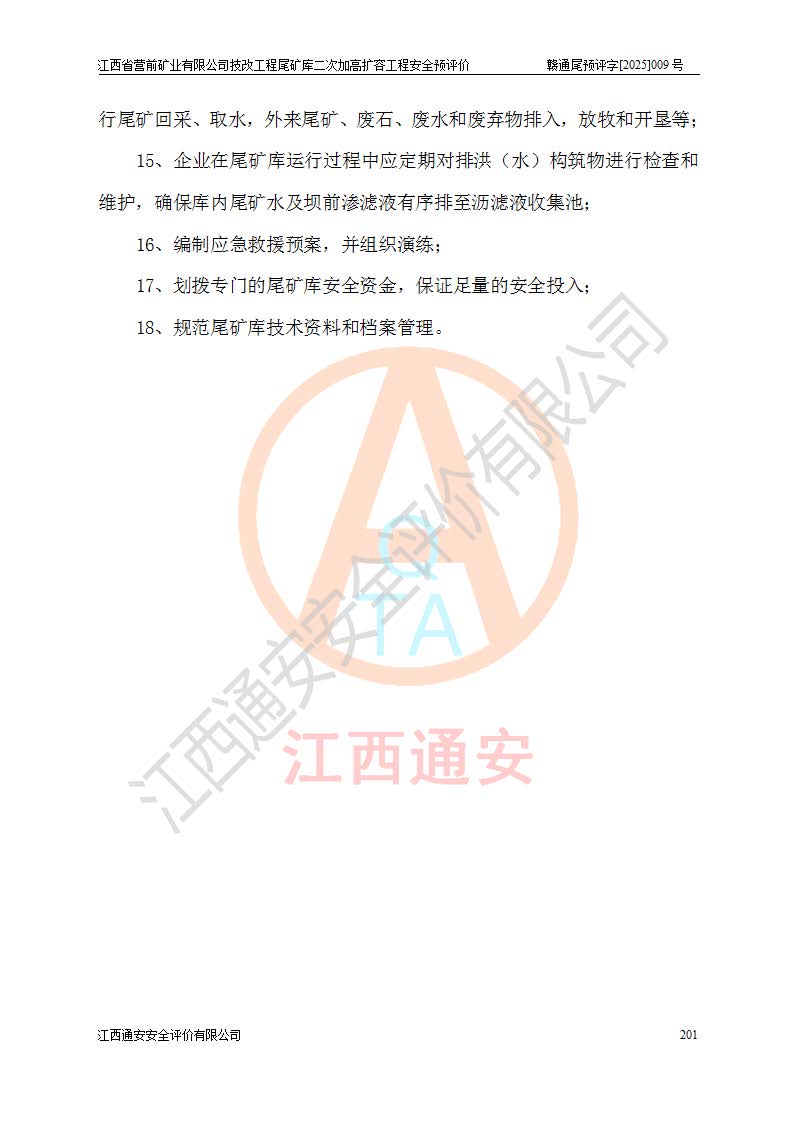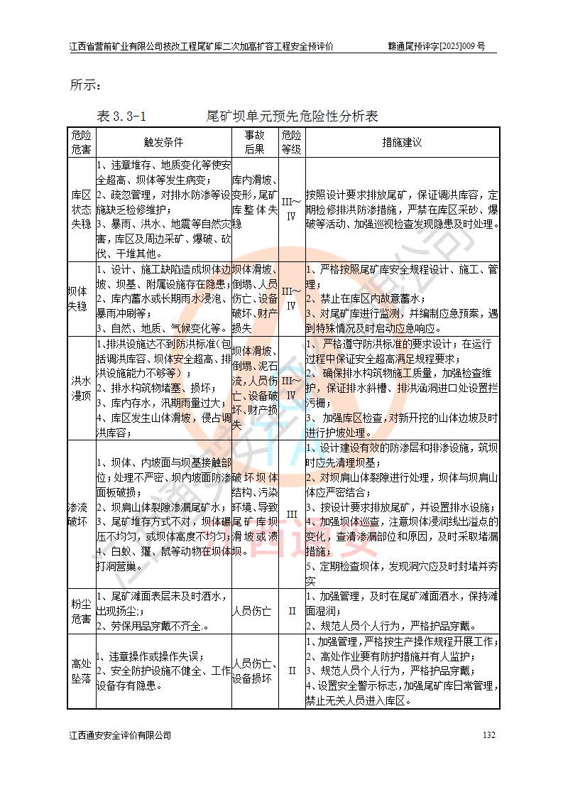 江西省營前礦業(yè)有限公司于2003年12月16日成立,位于贛州市上猶縣營前鎮(zhèn)焦里村境內(nèi),公司注冊資本10000萬元,法定**人陳雅博,礦區(qū)地理坐標(biāo):東經(jīng)114°18′30″~114°19′00″,北緯25°52′35″~25°53′47″。公司經(jīng)營范圍包括:鉛礦、鋅、鎢、銀地下開采、銷售。 江西省營前礦業(yè)有限公司技改工程尾礦庫位于焦里鎢銀鉛鋅礦區(qū),處于上猶縣水巖鄉(xiāng)井子村坑尾自然村境內(nèi),為山谷型尾礦庫。 江西省營前礦業(yè)有限公司技改工程尾礦庫于2013年由福建省冶金工業(yè)設(shè)計(jì)院設(shè)計(jì),2014年8月開始施工建設(shè),2015年4月竣工開始試運(yùn)行,2015年11月完成竣工驗(yàn)收,2016年1月首次取得安全生產(chǎn)許可證,2019年1月完成延期換證,2020年8月委托金建工程設(shè)計(jì)有限公司進(jìn)行尾礦庫加高擴(kuò)容工作,2020年10月21日取得了江西省應(yīng)急管理廳下發(fā)的《關(guān)于江西省營前礦業(yè)有限公司技改工程尾礦庫加高擴(kuò)容工程安全設(shè)施設(shè)計(jì)的審查意見》(贛應(yīng)急非煤項(xiàng)目設(shè)審〔2020〕46號),之后委托駐馬店市黃淮建設(shè)工程有限公司負(fù)責(zé)施工,云南潤滇工程技術(shù)有限公司負(fù)責(zé)監(jiān)理,2021年12月完成加高擴(kuò)容竣工驗(yàn)收工作,經(jīng)過延期,現(xiàn)尾礦庫安全生產(chǎn)許可證編號(贛)FM安許證字[2016]M1692號,**期為2025年01月18日至2028年01月17日。 江西省營前礦業(yè)有限公司技改工程尾礦庫為山谷型尾礦庫,初期壩為透水堆石壩,壩頂高程為330.0m,初期壩高25.0m,后期采用上游式尾礦堆積壩,加高擴(kuò)容后*終壩頂高程為380.0m,堆積壩高50.0m,總壩高為75.0m,總庫容為為503.14×104m3,尾礦庫為三等庫。尾礦庫初期壩以上總匯水面積3.53km2,防洪標(biāo)準(zhǔn)取500年一遇。 目前尾礦庫由初期壩、堆積壩、庫內(nèi)排洪系統(tǒng)(雙格排水斜槽+連接井+排水涵洞+排洪隧洞+排水陡槽+消力池)、1#攔洪壩、1#分洪隧洞、2#攔洪壩、2#分洪隧洞和安全監(jiān)測設(shè)施組成。根據(jù)建設(shè)單位提供的尾礦庫平面布置圖,截至2024年12月,現(xiàn)狀尾礦庫堆積壩頂高程為372.2m,現(xiàn)狀總壩高67.2m,灘頂高程為369.8m,現(xiàn)狀全庫容387.51×104m3,現(xiàn)狀尾礦庫為三等庫,原加高擴(kuò)容設(shè)計(jì)*終堆積壩頂高程為380.0m,現(xiàn)剩余庫容115.63×104m3,剩余**庫容約92.5×104m3,剩余服務(wù)年限約4.5年;礦山現(xiàn)有儲(chǔ)量較大,剩余庫容及服務(wù)年限不滿足礦山后期生產(chǎn)需要。 技改工程尾礦庫尾礦壩下游1**范圍無居民,不存在工礦企業(yè)等建構(gòu)筑物,不屬于“頭頂庫”;尾礦庫不壓礦;距贛江直線距離60**;不涉及保護(hù)區(qū)及生態(tài)紅線;尾礦庫所在溝谷較長,谷底平均縱坡9%,上游周邊山體地形有利于尾礦庫二次加高擴(kuò)容工程的實(shí)施,因此為了增加尾礦庫庫容,延長服務(wù)年限,充分利用尾礦庫所在溝谷地形,江西省營前礦業(yè)有限公司對技改尾礦庫進(jìn)行二次加高擴(kuò)容。 2024年12月,江西省營前礦業(yè)有限公司委托地礦贛西地質(zhì)工程勘察院編制了《江西省營前礦業(yè)有限公司技改工程尾礦庫二次擴(kuò)容工程(水文)地質(zhì)勘察報(bào)告》,2025年4月,江西省營前礦業(yè)有限公司委托金建工程設(shè)計(jì)有限公司編制了《江西省營前礦業(yè)有限公司技改工程尾礦庫二次加高擴(kuò)容工程可行性研究報(bào)告》。 按照非煤礦山建設(shè)項(xiàng)目安全設(shè)施“三同時(shí)”的規(guī)定要求,技改工程尾礦庫為二次加高擴(kuò)容工程,**進(jìn)行安全預(yù)評價(jià);江西省營前礦業(yè)有限公司委托我公司承擔(dān)技改工程尾礦庫二次加高擴(kuò)容工程建設(shè)項(xiàng)目的安全預(yù)評價(jià)工作。 |