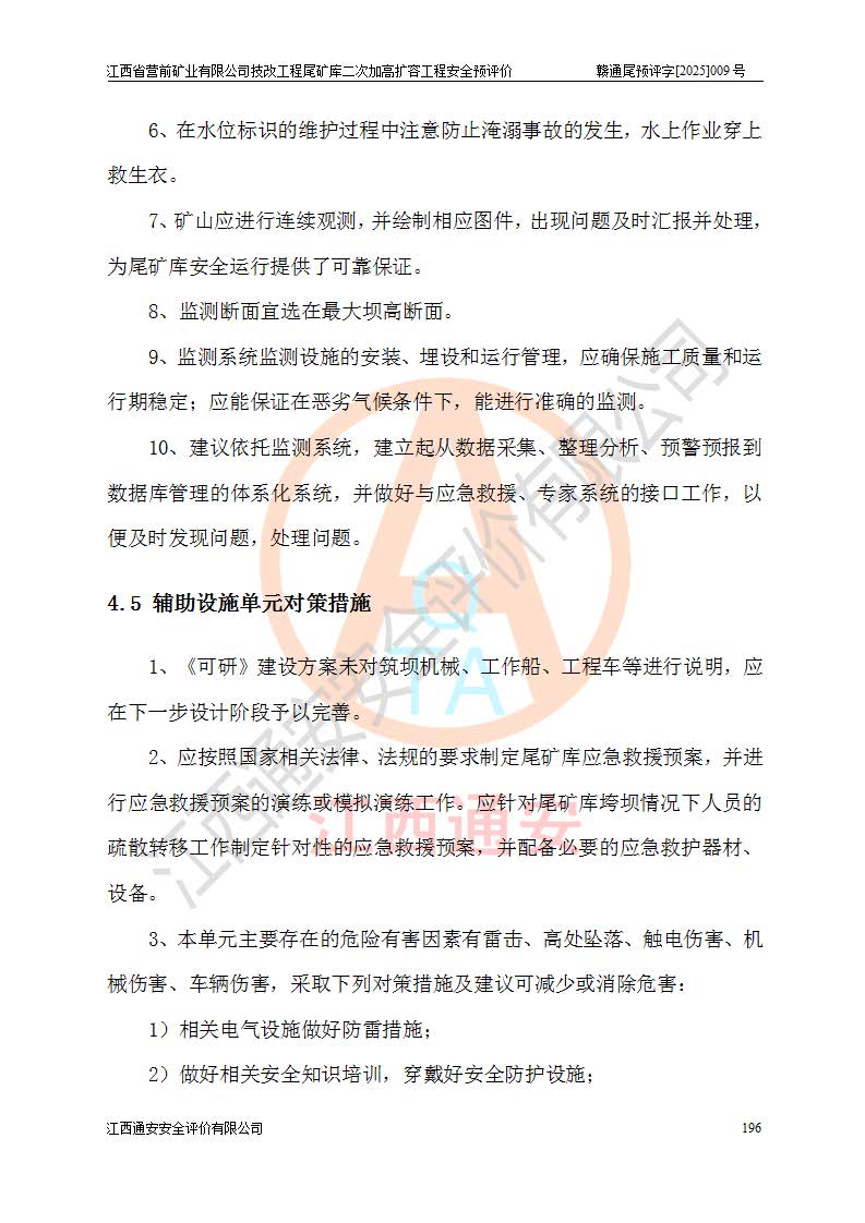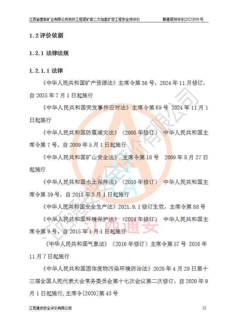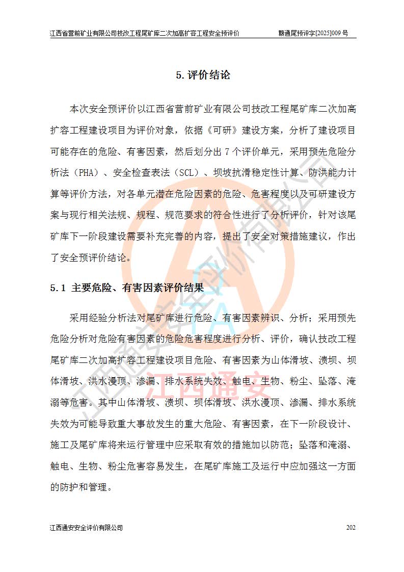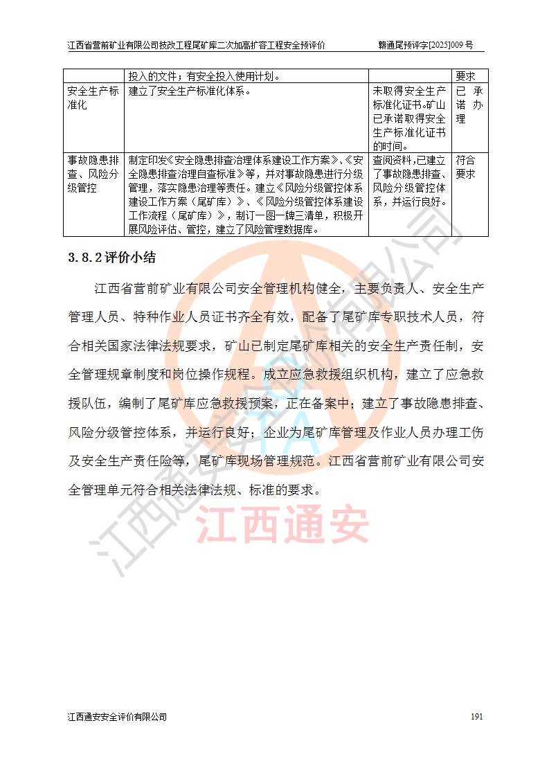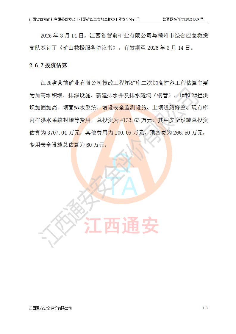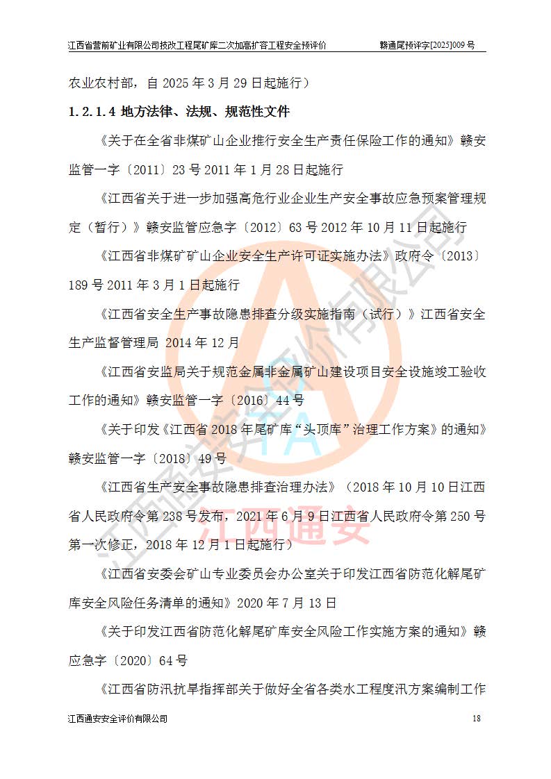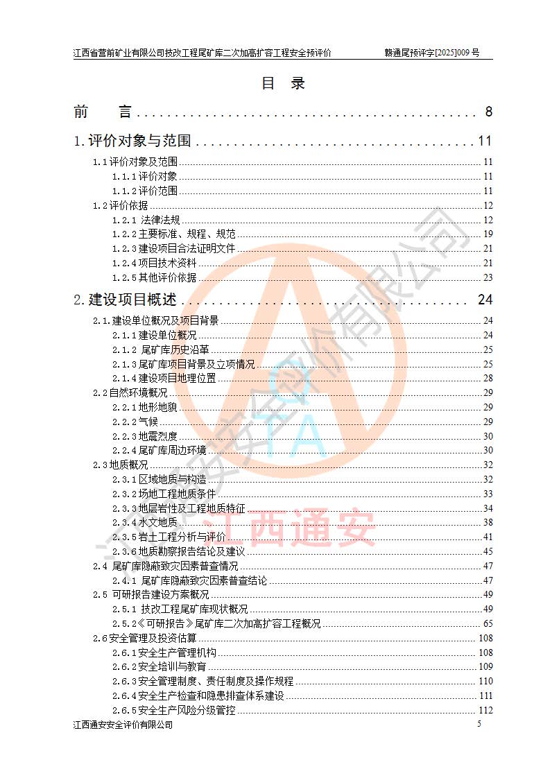 江西省營前礦業(yè)有限公司于2003年12月16日成立,位于贛州市上猶縣營前鎮(zhèn)焦里村境內(nèi),公司注冊資本10000萬元,法定**人陳雅博,礦區(qū)地理坐標(biāo):東經(jīng)114°18′30″~114°19′00″,北緯25°52′35″~25°53′47″。公司經(jīng)營范圍包括:鉛礦、鋅、鎢、銀地下開采、銷售。 江西省營前礦業(yè)有限公司技改工程尾礦庫位于焦里鎢銀鉛鋅礦區(qū),處于上猶縣水巖鄉(xiāng)井子村坑尾自然村境內(nèi),為山谷型尾礦庫。 江西省營前礦業(yè)有限公司技改工程尾礦庫于2013年由福建省冶金工業(yè)設(shè)計(jì)院設(shè)計(jì),2014年8月開始施工建設(shè),2015年4月竣工開始試運(yùn)行,2015年11月完成竣工驗(yàn)收,2016年1月首次取得安全生產(chǎn)許可證,2019年1月完成延期換證,2020年8月委托金建工程設(shè)計(jì)有限公司進(jìn)行尾礦庫加高擴(kuò)容工作,2020年10月21日取得了江西省應(yīng)急管理廳下發(fā)的《關(guān)于江西省營前礦業(yè)有限公司技改工程尾礦庫加高擴(kuò)容工程安全設(shè)施設(shè)計(jì)的審查意見》(贛應(yīng)急非煤項(xiàng)目設(shè)審〔2020〕46號),之后委托駐馬店市黃淮建設(shè)工程有限公司負(fù)責(zé)施工,云南潤滇工程技術(shù)有限公司負(fù)責(zé)監(jiān)理,2021年12月完成加高擴(kuò)容竣工驗(yàn)收工作,經(jīng)過延期,現(xiàn)尾礦庫安全生產(chǎn)許可證編號(贛)FM安許證字[2016]M1692號,**期為2025年01月18日至2028年01月17日。 江西省營前礦業(yè)有限公司技改工程尾礦庫為山谷型尾礦庫,初期壩為透水堆石壩,壩頂高程為330.0m,初期壩高25.0m,后期采用上游式尾礦堆積壩,加高擴(kuò)容后*終壩頂高程為380.0m,堆積壩高50.0m,總壩高為75.0m,總庫容為為503.14×104m3,尾礦庫為三等庫。尾礦庫初期壩以上總匯水面積3.53km2,防洪標(biāo)準(zhǔn)取500年一遇。 目前尾礦庫由初期壩、堆積壩、庫內(nèi)排洪系統(tǒng)(雙格排水斜槽+連接井+排水涵洞+排洪隧洞+排水陡槽+消力池)、1#攔洪壩、1#分洪隧洞、2#攔洪壩、2#分洪隧洞和安全監(jiān)測設(shè)施組成。根據(jù)建設(shè)單位提供的尾礦庫平面布置圖,截至2024年12月,現(xiàn)狀尾礦庫堆積壩頂高程為372.2m,現(xiàn)狀總壩高67.2m,灘頂高程為369.8m,現(xiàn)狀全庫容387.51×104m3,現(xiàn)狀尾礦庫為三等庫,原加高擴(kuò)容設(shè)計(jì)*終堆積壩頂高程為380.0m,現(xiàn)剩余庫容115.63×104m3,剩余**庫容約92.5×104m3,剩余服務(wù)年限約4.5年;礦山現(xiàn)有儲(chǔ)量較大,剩余庫容及服務(wù)年限不滿足礦山后期生產(chǎn)需要。 技改工程尾礦庫尾礦壩下游1**范圍無居民,不存在工礦企業(yè)等建構(gòu)筑物,不屬于“頭頂庫”;尾礦庫不壓礦;距贛江直線距離60**;不涉及保護(hù)區(qū)及生態(tài)紅線;尾礦庫所在溝谷較長,谷底平均縱坡9%,上游周邊山體地形有利于尾礦庫二次加高擴(kuò)容工程的實(shí)施,因此為了增加尾礦庫庫容,延長服務(wù)年限,充分利用尾礦庫所在溝谷地形,江西省營前礦業(yè)有限公司對技改尾礦庫進(jìn)行二次加高擴(kuò)容。 2024年12月,江西省營前礦業(yè)有限公司委托地礦贛西地質(zhì)工程勘察院編制了《江西省營前礦業(yè)有限公司技改工程尾礦庫二次擴(kuò)容工程(水文)地質(zhì)勘察報(bào)告》,2025年4月,江西省營前礦業(yè)有限公司委托金建工程設(shè)計(jì)有限公司編制了《江西省營前礦業(yè)有限公司技改工程尾礦庫二次加高擴(kuò)容工程可行性研究報(bào)告》。 按照非煤礦山建設(shè)項(xiàng)目安全設(shè)施“三同時(shí)”的規(guī)定要求,技改工程尾礦庫為二次加高擴(kuò)容工程,**進(jìn)行安全預(yù)評價(jià);江西省營前礦業(yè)有限公司委托我公司承擔(dān)技改工程尾礦庫二次加高擴(kuò)容工程建設(shè)項(xiàng)目的安全預(yù)評價(jià)工作。 |