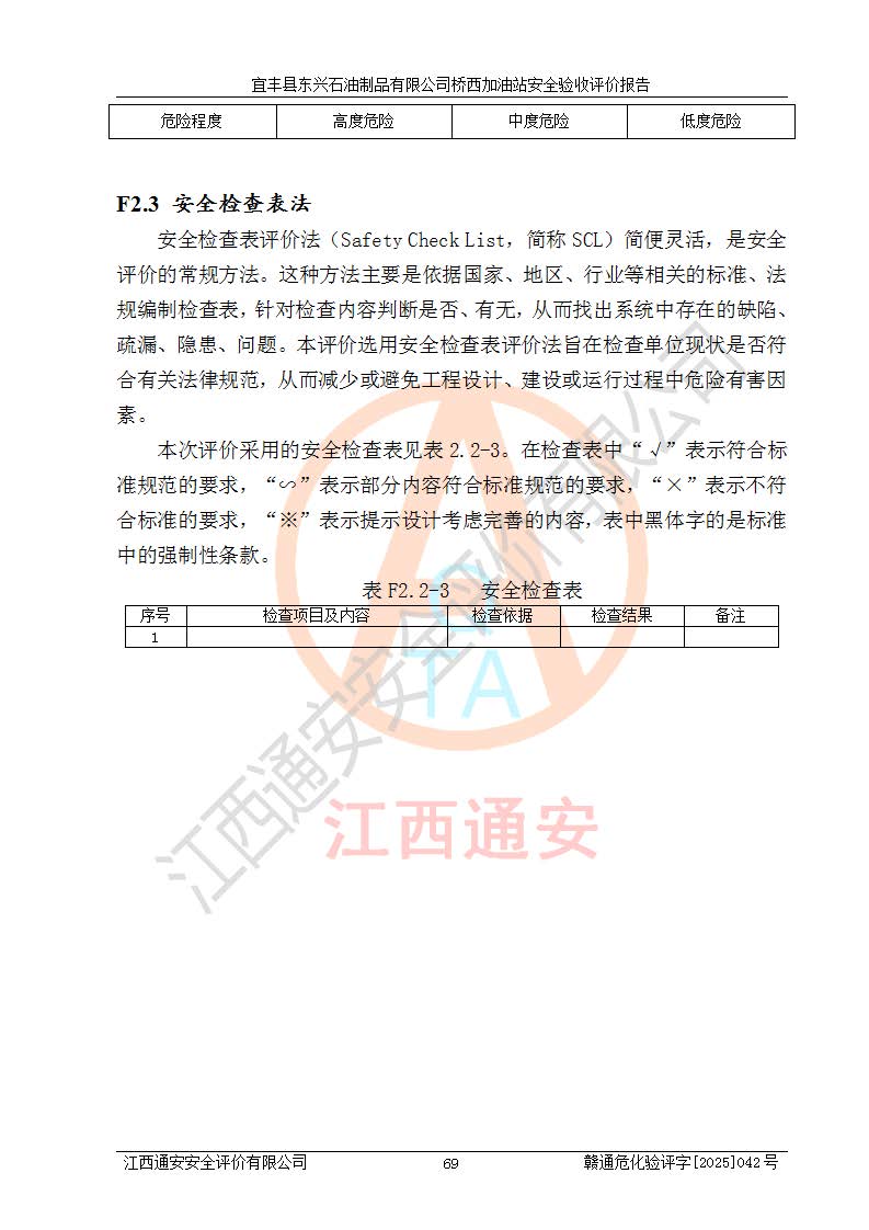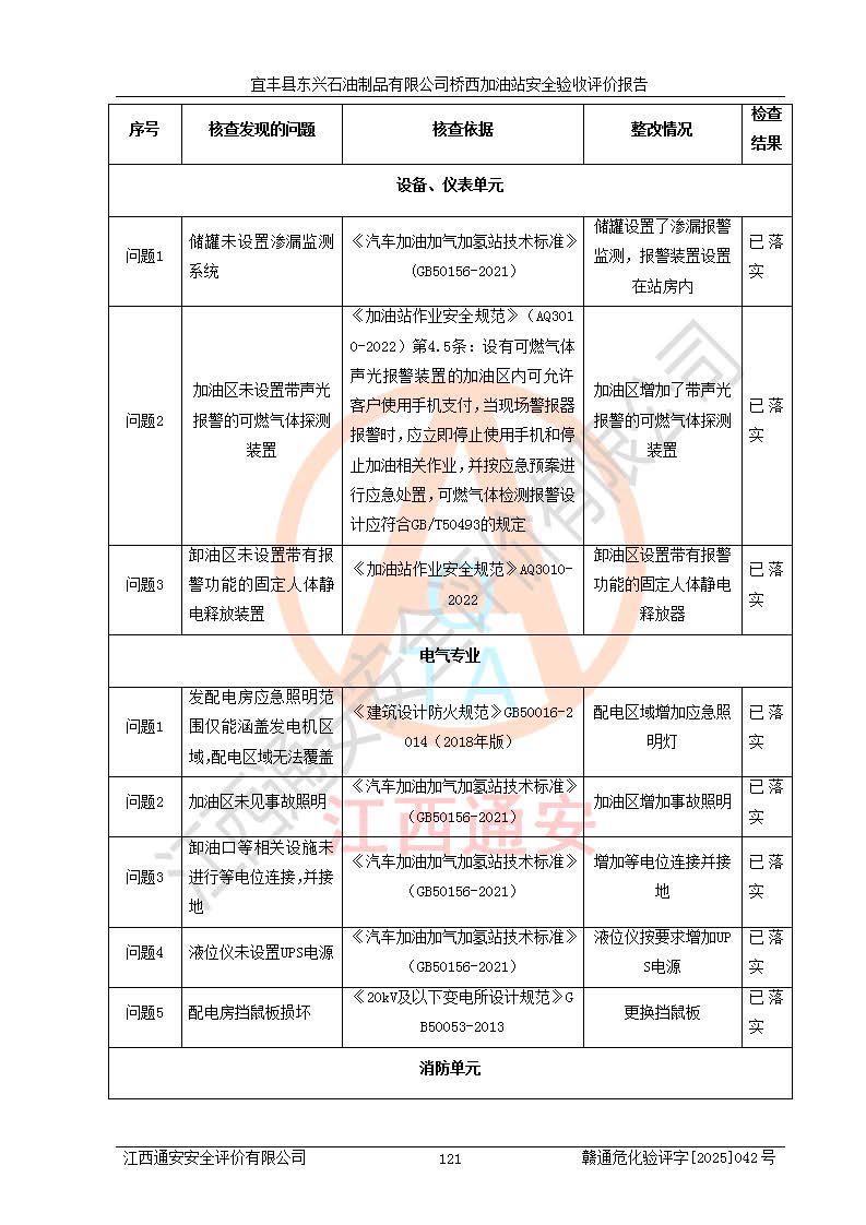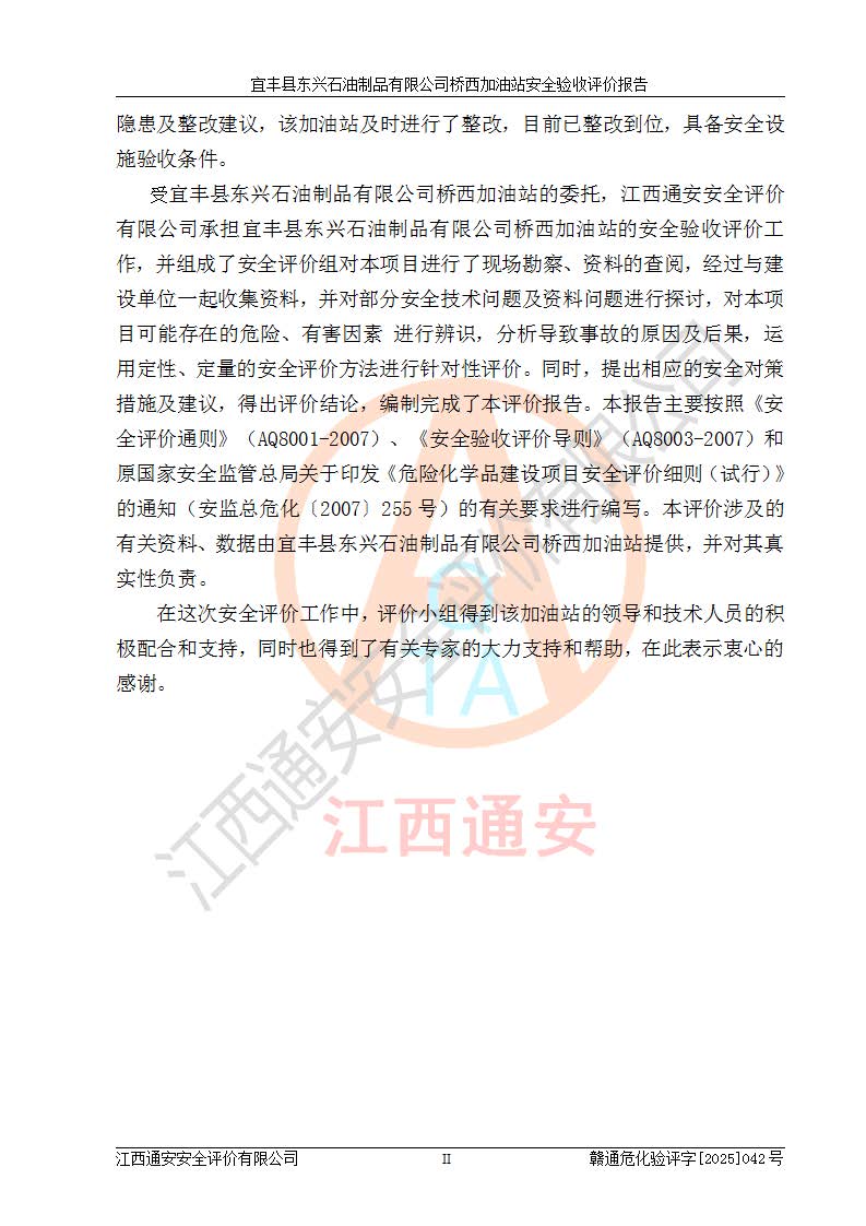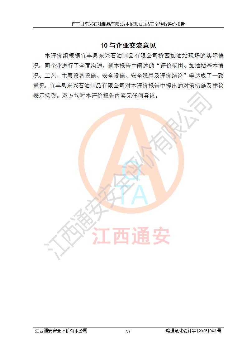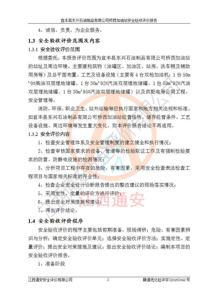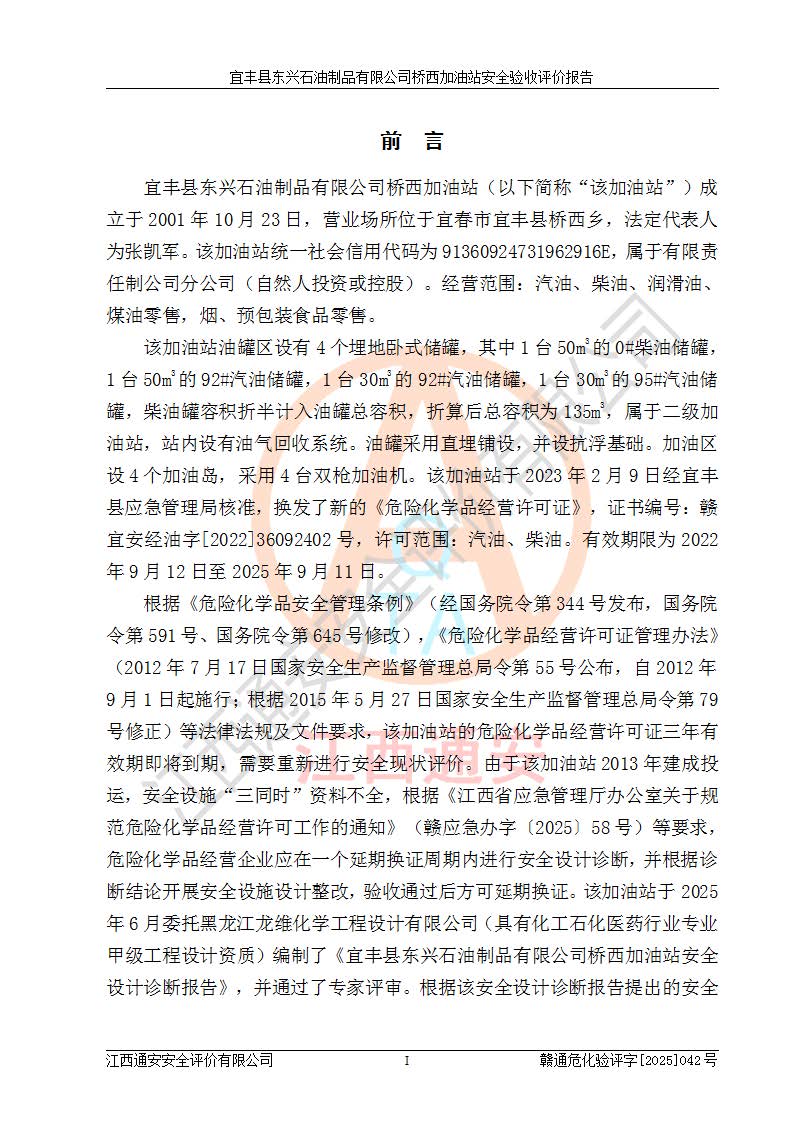 項(xiàng)目名稱 | 宜豐縣東興石油制品有限公司橋西加油站安全驗(yàn)收評(píng)價(jià) | ||||