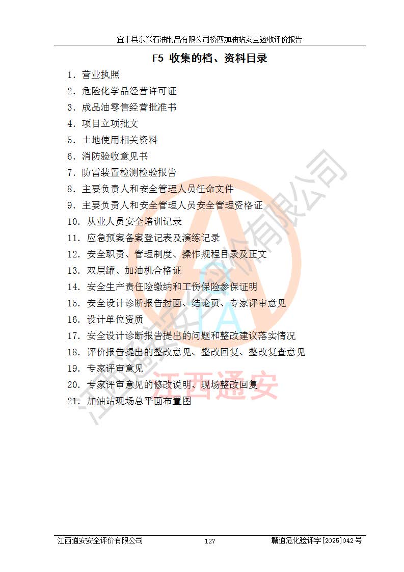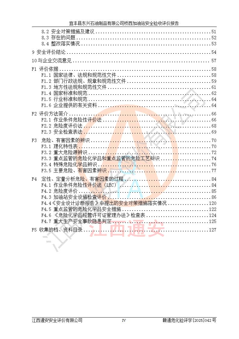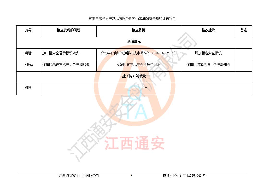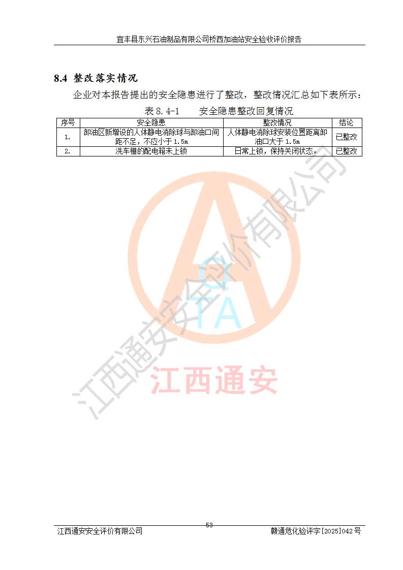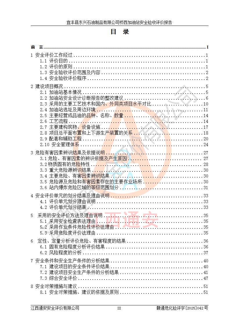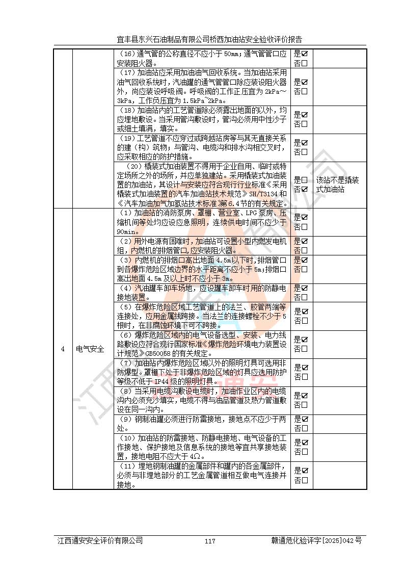 項(xiàng)目名稱 | 宜豐縣東興石油制品有限公司橋西加油站安全驗(yàn)收評(píng)價(jià) | ||||