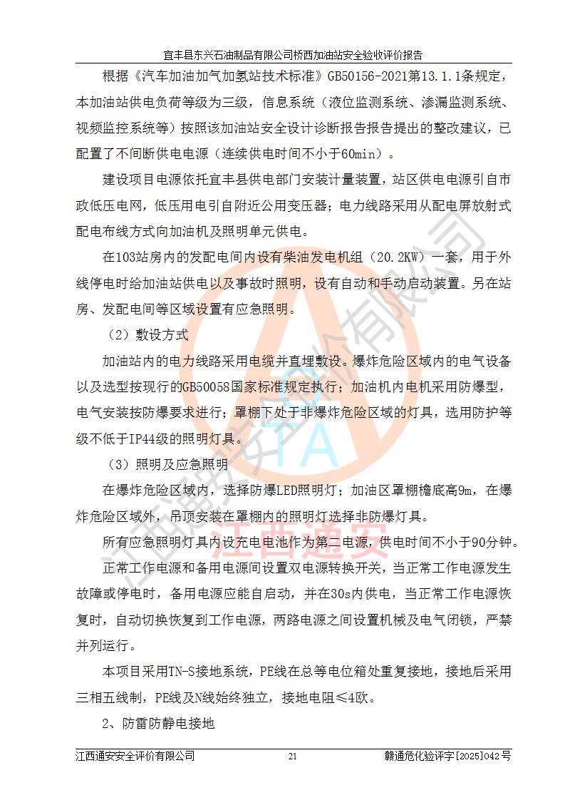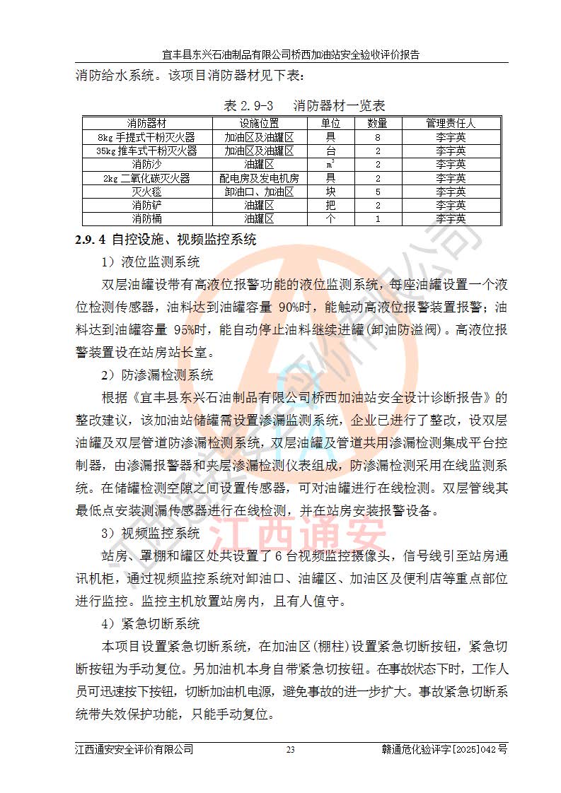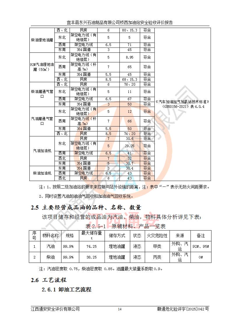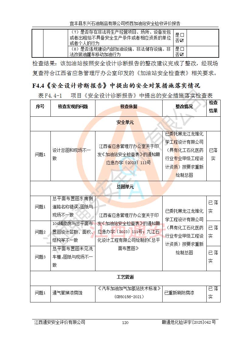 項(xiàng)目簡(jiǎn)介 | 宜豐縣東興石油制品有限公司橋西加油站(以下簡(jiǎn)稱“該加油站”)成立于2001年10月23日,營(yíng)業(yè)場(chǎng)所位于宜春市宜豐縣橋西鄉(xiāng),法定**人為張凱軍。該加油站統(tǒng)一社會(huì)信用代碼為91360924731962916E,屬于有限責(zé)任制公司分公司(自然人投資或控股)。經(jīng)營(yíng)范圍:汽油、柴油、潤(rùn)滑油、煤油零售,煙、預(yù)包裝食品零售。 該加油站油罐區(qū)設(shè)有4個(gè)埋地臥式儲(chǔ)罐,其中1臺(tái)50m3的0#柴油儲(chǔ)罐,1臺(tái)50m3的92#汽油儲(chǔ)罐,1臺(tái)30m3的92#汽油儲(chǔ)罐,1臺(tái)30m3的95#汽油儲(chǔ)罐,柴油罐容積折半計(jì)入油罐總?cè)莘e,折算后總?cè)莘e為135m3,屬于二級(jí)加油站,站內(nèi)設(shè)有油氣回收系統(tǒng)。油罐采用直埋鋪設(shè),并設(shè)抗浮基礎(chǔ)。加油區(qū)設(shè)4個(gè)加油島,采用4臺(tái)雙槍加油機(jī)。該加油站于2023年2月9日經(jīng)宜豐縣應(yīng)急管理局核準(zhǔn),換發(fā)了新的《危險(xiǎn)化學(xué)品經(jīng)營(yíng)許可證》,證書(shū)編號(hào):贛宜安經(jīng)油字[2022]36092402號(hào),許可范圍:汽油、柴油。**期限為2022年9月12日至2025年9月11日。 根據(jù)《危險(xiǎn)化學(xué)品安全管理?xiàng)l例》(經(jīng)***令第344號(hào)發(fā)布,***令第591號(hào)、***令第645號(hào)修改),《危險(xiǎn)化學(xué)品經(jīng)營(yíng)許可證管理辦法》(2012年7月17日**安全生產(chǎn)監(jiān)督管理總局令第55號(hào)公布,自2012年9月1日起施行;根據(jù)2015年5月27日**安全生產(chǎn)監(jiān)督管理總局令第79號(hào)修正)等法律法規(guī)及文件要求,該加油站的危險(xiǎn)化學(xué)品經(jīng)營(yíng)許可證三年**期即將到期,需要重新進(jìn)行安全現(xiàn)狀評(píng)價(jià)。由于該加油站2013年建成投運(yùn),安全設(shè)施“三同時(shí)”資料不全,根據(jù)《江西省應(yīng)急管理廳辦公室關(guān)于規(guī)范危險(xiǎn)化學(xué)品經(jīng)營(yíng)許可工作的通知》(贛應(yīng)急辦字〔2025〕58號(hào))等要求,危險(xiǎn)化學(xué)品經(jīng)營(yíng)企業(yè)應(yīng)在一個(gè)延期換證周期內(nèi)進(jìn)行安全設(shè)計(jì)診斷,并根據(jù)診斷結(jié)論開(kāi)展安全設(shè)施設(shè)計(jì)整改,驗(yàn)收通過(guò)后方可延期換證。該加油站于2025年6月委托黑龍江龍維化學(xué)工程設(shè)計(jì)有限公司(具有化工石化醫(yī)藥行業(yè)專業(yè)**工程設(shè)計(jì)資質(zhì))編制了《宜豐縣東興石油制品有限公司橋西加油站安全設(shè)計(jì)診斷報(bào)告》,并通過(guò)了專家評(píng)審。根據(jù)該安全設(shè)計(jì)診斷報(bào)告提出的安全隱患及整改建議,該加油站及時(shí)進(jìn)行了整改,目前已整改到位,具備安全設(shè)施驗(yàn)收條件。