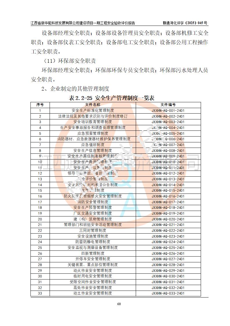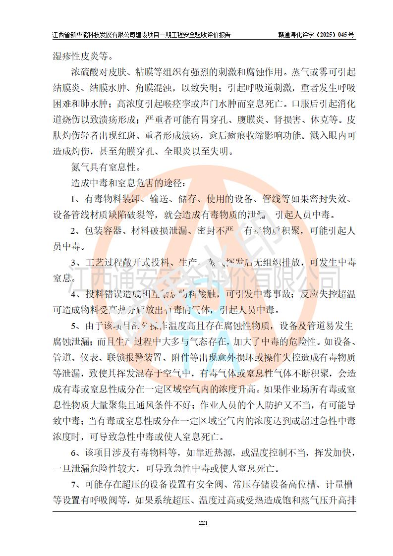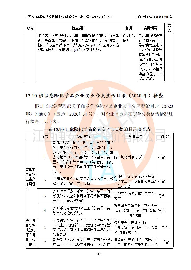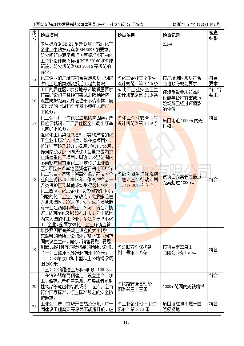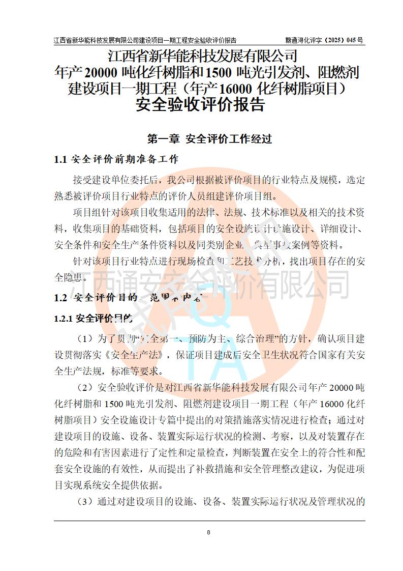 評(píng)價(jià)報(bào)告名稱 | 江西省新華能科技發(fā)展有限公司建設(shè)項(xiàng)目一期工程安全驗(yàn)收評(píng)價(jià)報(bào)告 | |||||