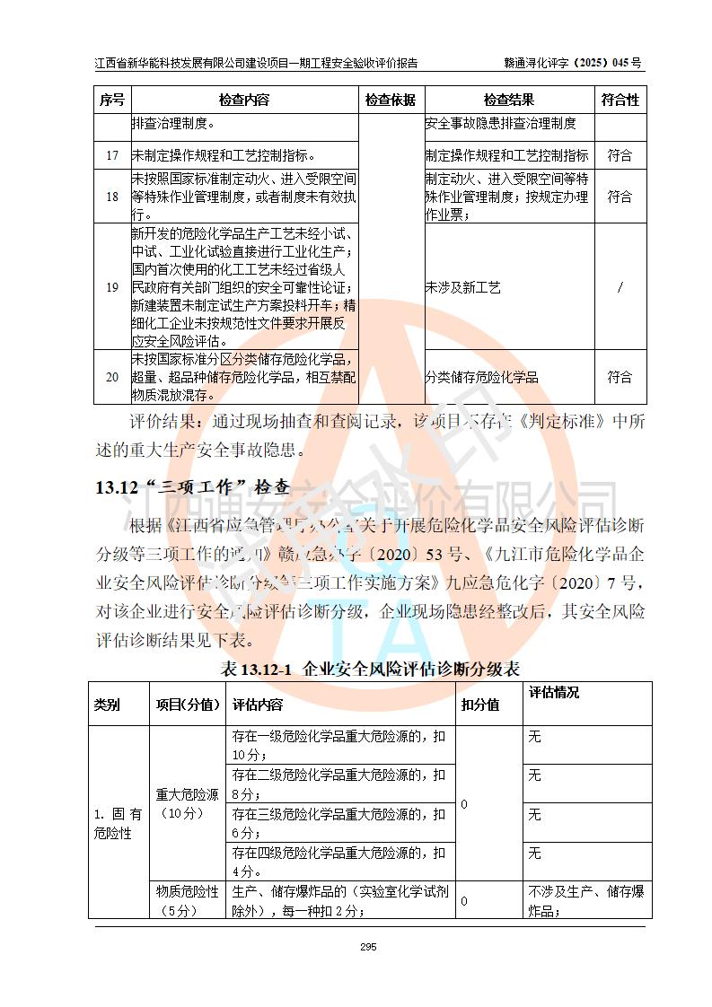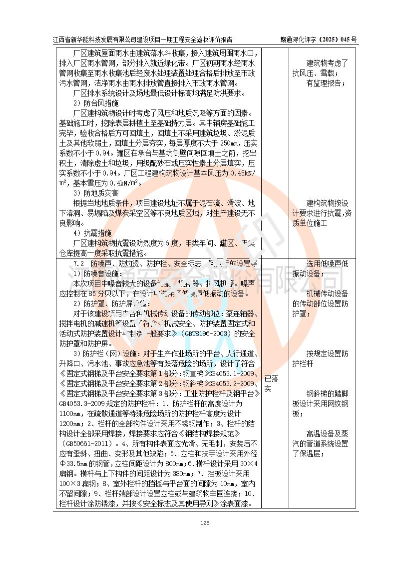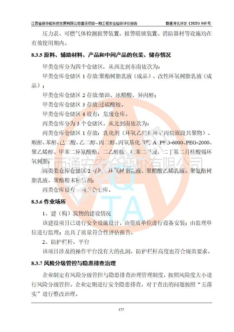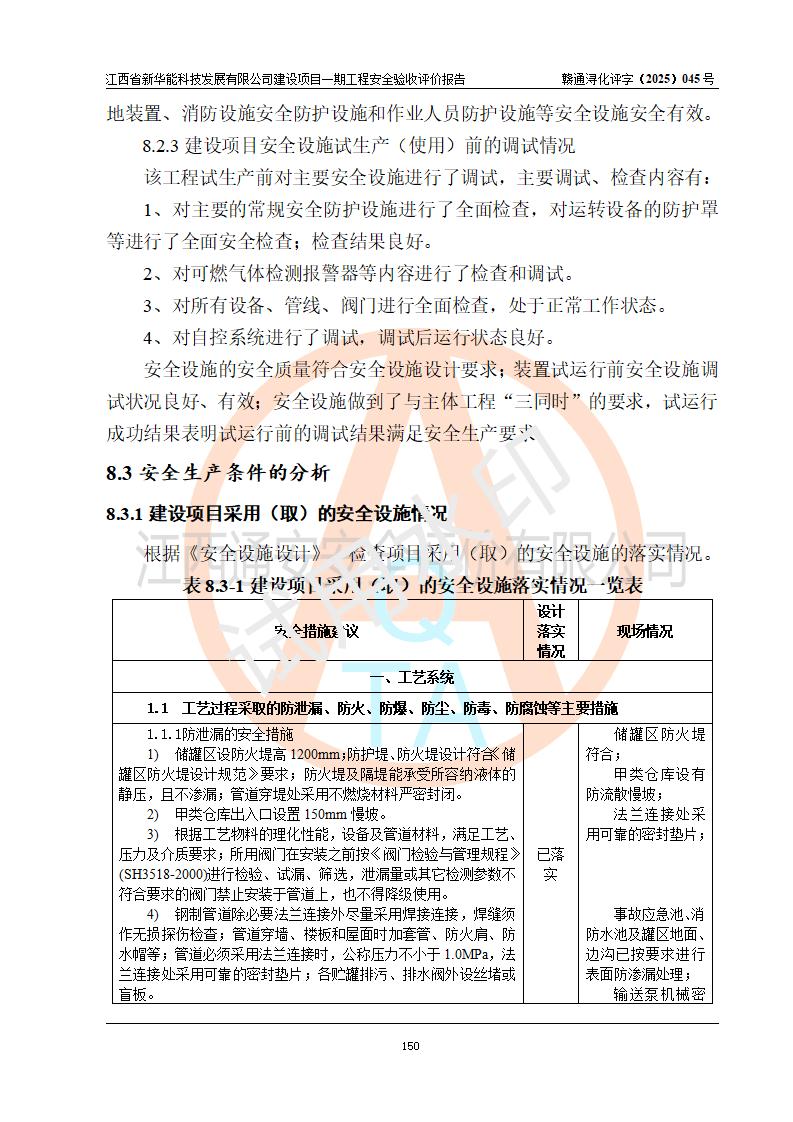 評(píng)價(jià)報(bào)告名稱 | 江西省新華能科技發(fā)展有限公司建設(shè)項(xiàng)目一期工程安全驗(yàn)收評(píng)價(jià)報(bào)告 | |||||