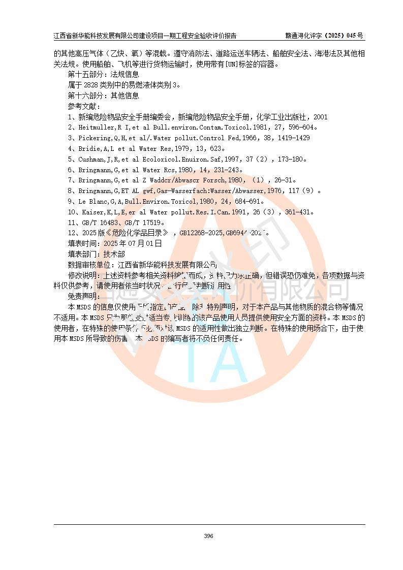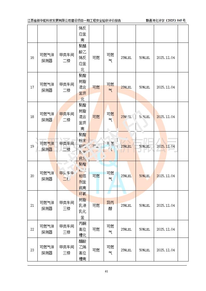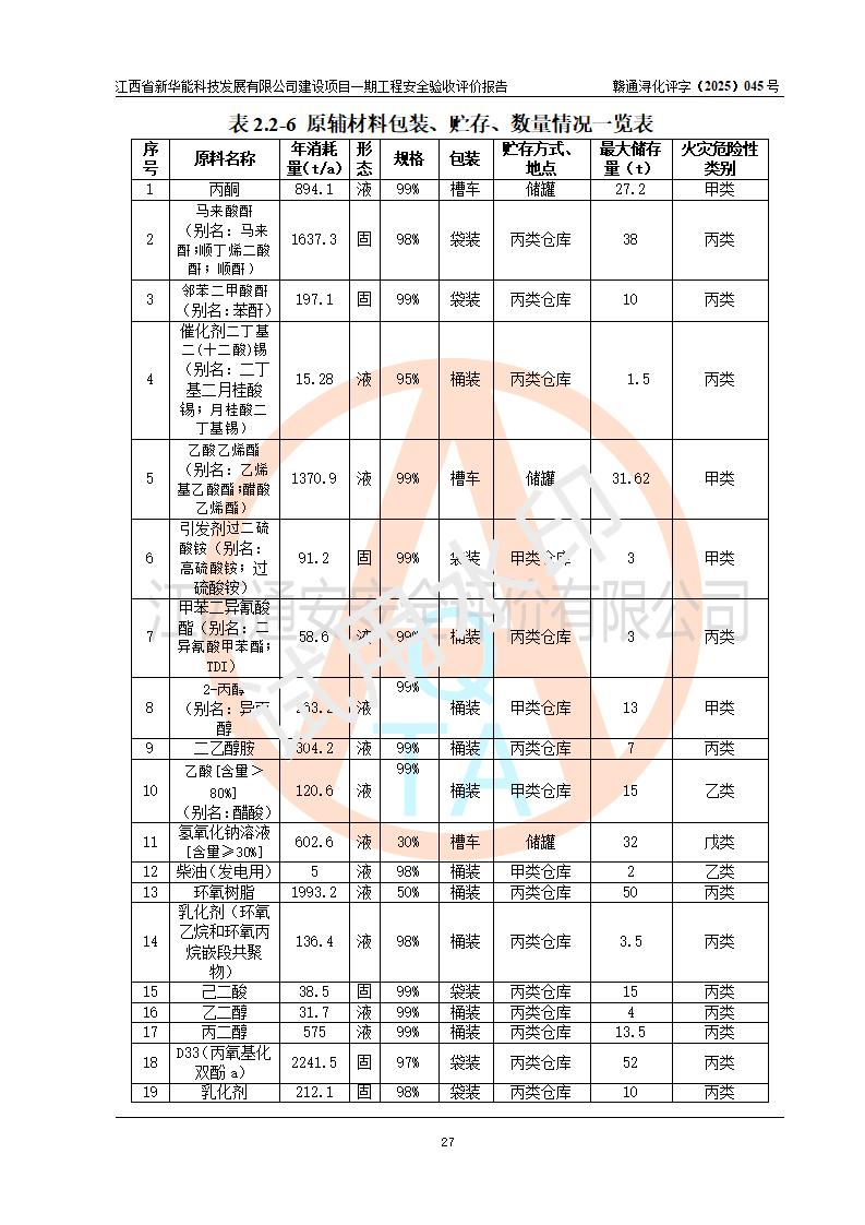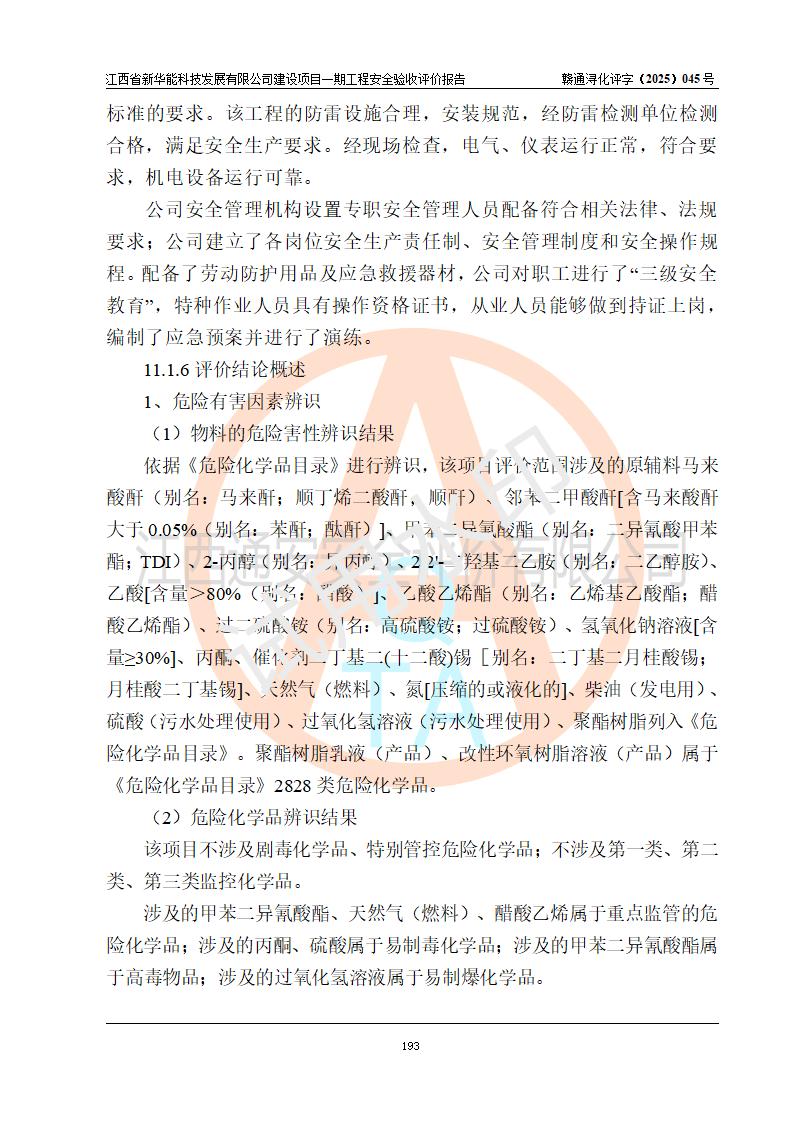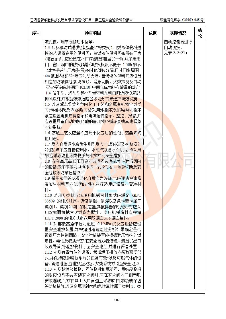 評(píng)價(jià)報(bào)告名稱 | 江西省新華能科技發(fā)展有限公司建設(shè)項(xiàng)目一期工程安全驗(yàn)收評(píng)價(jià)報(bào)告 | |||||