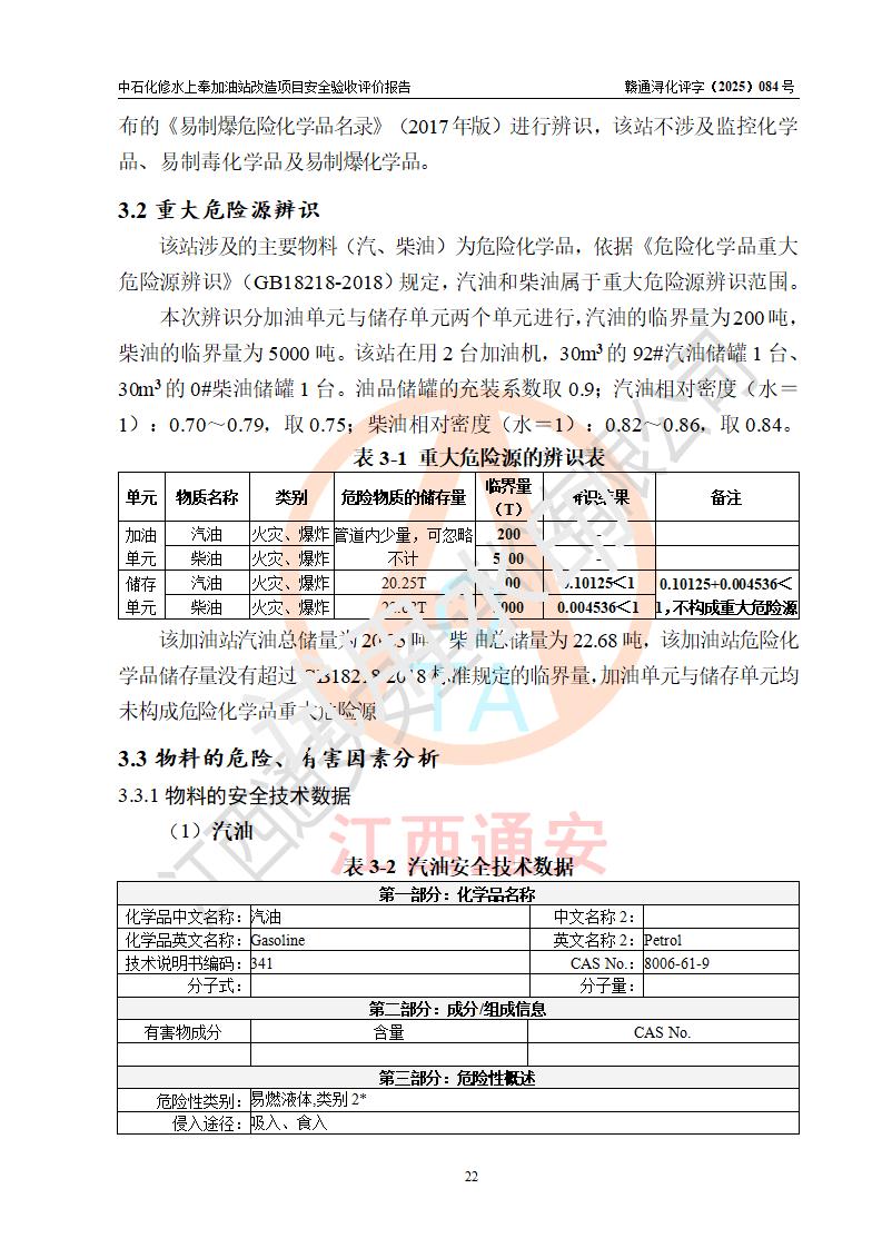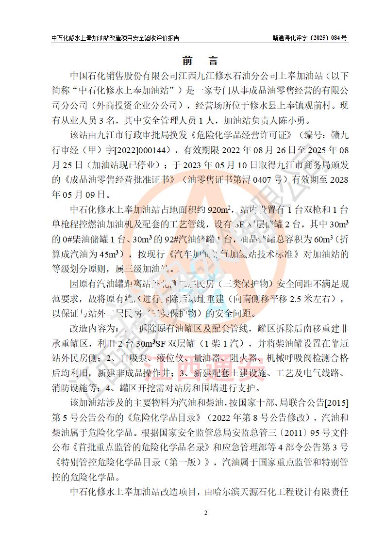 評價報告名稱 | 中國石化銷售股份有限公司江西九江修水石油分公司上奉加油站改造項目安全驗收評價報告 | |||