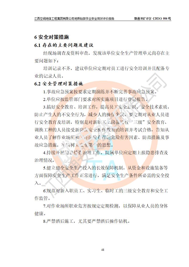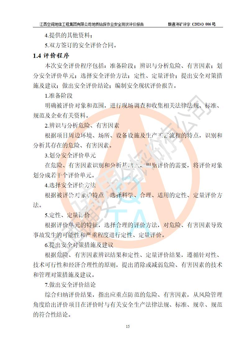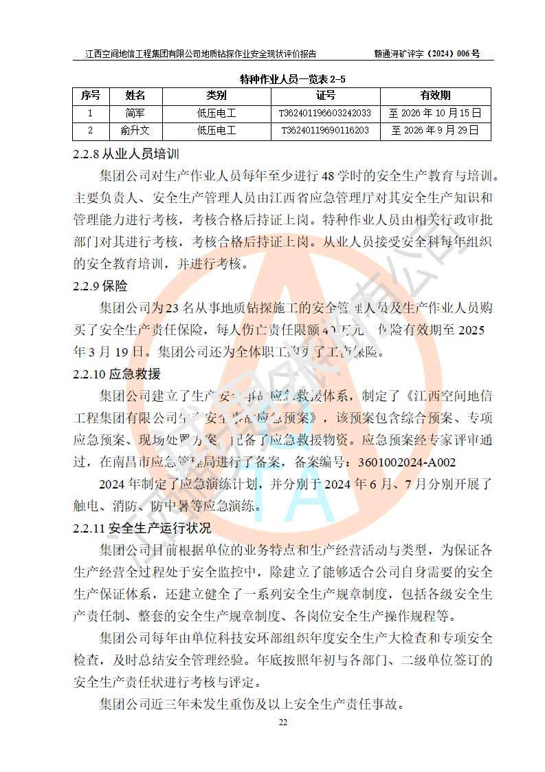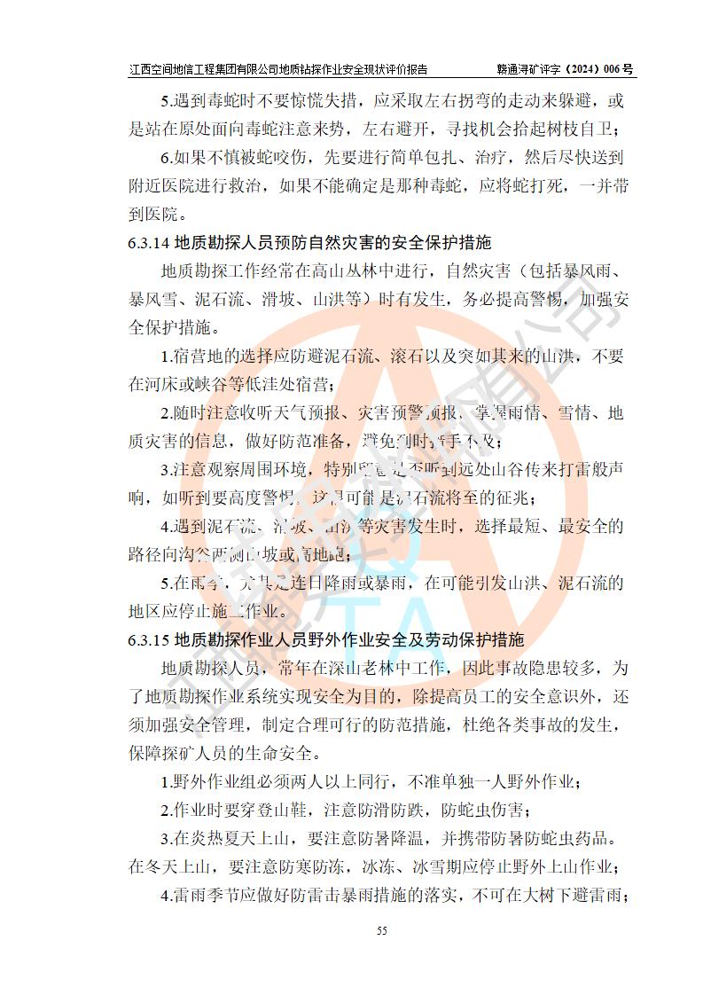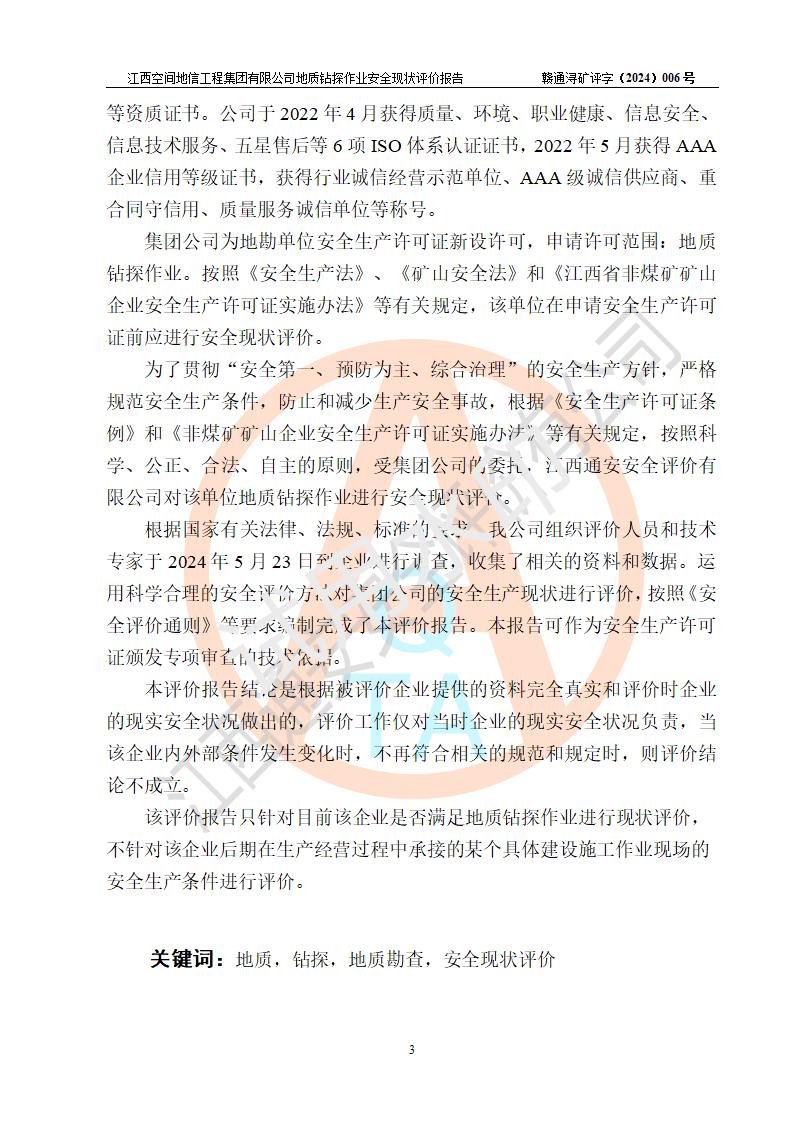 江西空間地信工程集團(tuán)有限公司成立于2019年10月,位于江西省南昌市青云譜區(qū)南蓮路76號(hào),為江西省地理信息工程大隊(duì)隊(duì)屬二級(jí)企業(yè),由“江西中煤路橋工程有限公司”、“江西省煤田地質(zhì)局普查綜合大隊(duì)”(企業(yè))、“江西工程物探新技術(shù)公司”、“江西華昌地質(zhì)測試有限公司”“江西中煤集團(tuán)第六建設(shè)有限公司”、“江西中煤集團(tuán)生態(tài)環(huán)境有限公司”重組而成。主要承擔(dān)全隊(duì)市場運(yùn)營、業(yè)務(wù)開拓、政策研究、科技創(chuàng)新等職責(zé)。 集團(tuán)公司經(jīng)營范圍:地質(zhì)災(zāi)害危險(xiǎn)性評(píng)估,地質(zhì)災(zāi)害治理工程勘查,地質(zhì)災(zāi)害治理工程設(shè)計(jì),地質(zhì)災(zāi)害治理工程施工,國土空間規(guī)劃編制,測繪服務(wù),互聯(lián)網(wǎng)信息服務(wù),礦產(chǎn)資源勘查(依法須經(jīng)批準(zhǔn)的項(xiàng)目,經(jīng)相關(guān)部門批準(zhǔn)后方可開展經(jīng)營活動(dòng))一般項(xiàng)目:地質(zhì)災(zāi)害治理服務(wù),土地整治服務(wù),規(guī)劃設(shè)計(jì)管理,互聯(lián)網(wǎng)安全服務(wù),信息咨詢服務(wù)(不含許可類信息咨詢服務(wù)),軟件開發(fā),地理遙感信息服務(wù),礦產(chǎn)資源儲(chǔ)量估算和報(bào)告編制服務(wù)(須在中國礦業(yè)權(quán)評(píng)估師**完成登記備案后方可從事經(jīng)營活動(dòng)),礦產(chǎn)資源儲(chǔ)量評(píng)估服務(wù)(須在中國礦業(yè)權(quán)評(píng)估師**完成登記備案后方可從事經(jīng)營活動(dòng)),基礎(chǔ)地質(zhì)勘查,土壤污染治理與修復(fù)服務(wù),對(duì)外承包工程(除許可業(yè)務(wù)外,可自主依法經(jīng)營法律法規(guī)非禁止或限制的項(xiàng)目)。 江西空間地信工程集團(tuán)有限公司為江西省地理信息工程大隊(duì)隊(duì)屬二級(jí)企業(yè),集團(tuán)公司內(nèi)設(shè)7個(gè)直屬部門:綜合辦、科研中心、資產(chǎn)辦、人力資源辦、資質(zhì)辦、招標(biāo)辦、黨群辦;3個(gè)分公司:上饒分公司、宜春分公司、全南項(xiàng)目部;下設(shè)9個(gè)實(shí)體:基礎(chǔ)測繪院、測繪工程院、自然資源調(diào)查院、規(guī)劃設(shè)計(jì)院、勘測設(shè)計(jì)院、地信中心、航測遙感院、國土綜合整治院、地環(huán)探測院。集團(tuán)公司產(chǎn)業(yè)發(fā)展分測繪工程、航測遙感、地理信息工程、國土空間規(guī)劃、國土綜合整治、地環(huán)探測工程六大板塊。 集團(tuán)公司現(xiàn)有干部職工900人,在編職工601人,合同聘用職工299人,其中副高以上職稱106人,工程師職稱209人,助理工程師162人,研究生76人,本科生773人。 集團(tuán)公司擁有測繪**,地災(zāi)評(píng)估、勘查、設(shè)計(jì)、施工**,土地規(guī)劃**;土地規(guī)劃、土地整治、城鄉(xiāng)規(guī)劃乙級(jí)、水利水電工程、市政二級(jí)等資質(zhì)證書。公司于2022年4月獲得質(zhì)量、環(huán)境、職業(yè)健康、信息安全、信息技術(shù)服務(wù)、五星售后等6項(xiàng)ISO體系認(rèn)證證書,2022年5月獲得AAA企業(yè)信用等級(jí)證書,獲得行業(yè)誠信經(jīng)營示范單位、AAA級(jí)誠信供應(yīng)商、重合同守信用、質(zhì)量服務(wù)誠信單位等稱號(hào)。 集團(tuán)公司為地勘單位安全生產(chǎn)許可證新設(shè)許可,申請(qǐng)?jiān)S可范圍:地質(zhì)鉆探作業(yè)。按照《安全生產(chǎn)法》、《礦山安全法》和《江西省非煤礦礦山企業(yè)安全生產(chǎn)許可證實(shí)施辦法》等有關(guān)規(guī)定,該單位在申請(qǐng)安全生產(chǎn)許可證前應(yīng)進(jìn)行安全現(xiàn)狀評(píng)價(jià)。 |