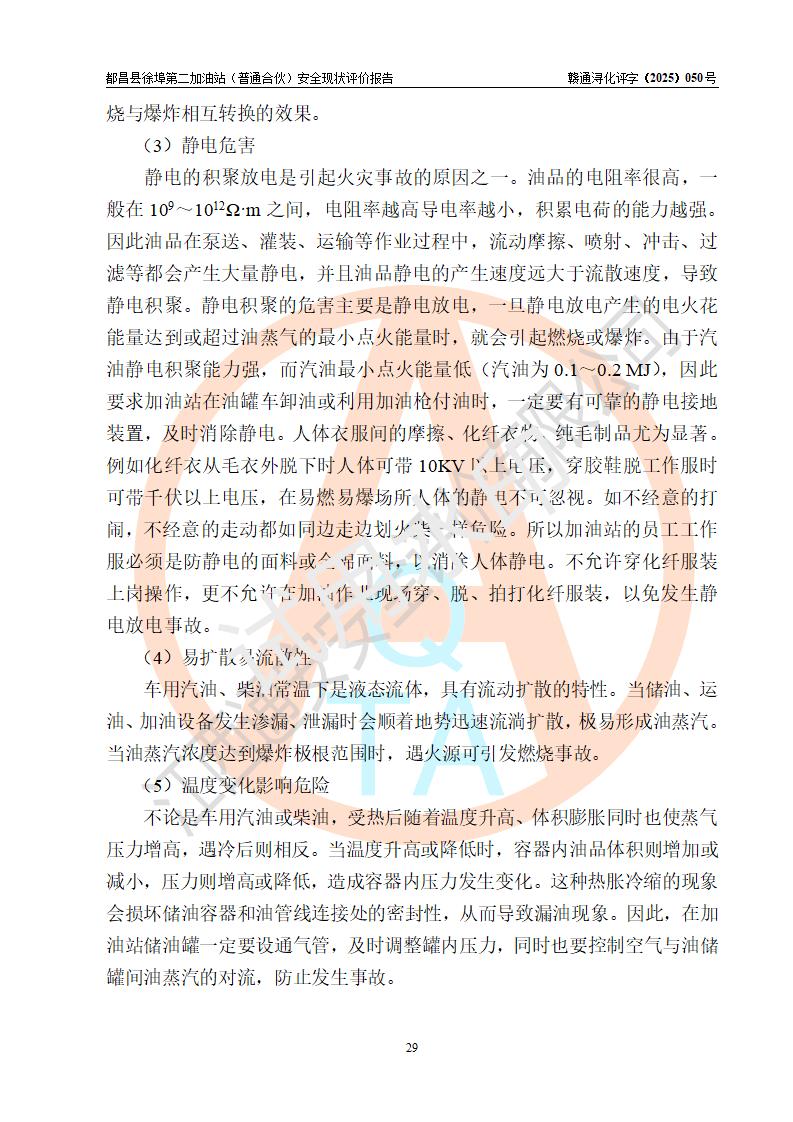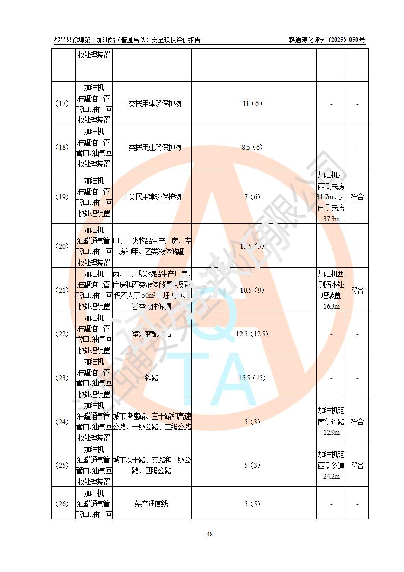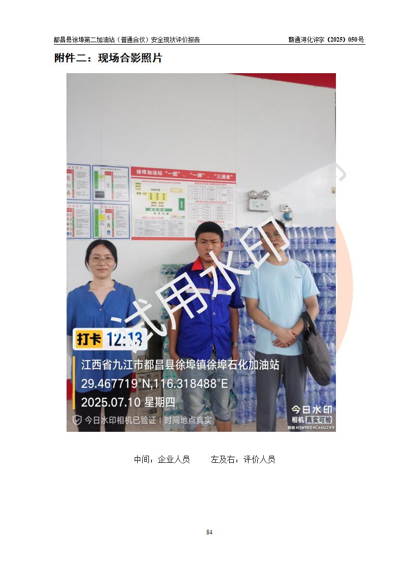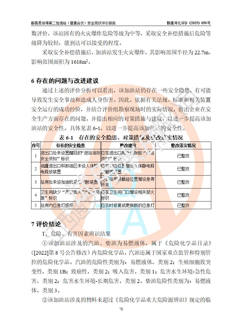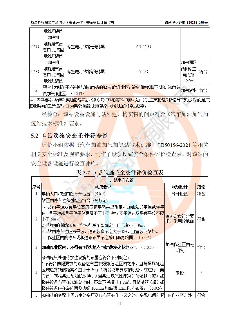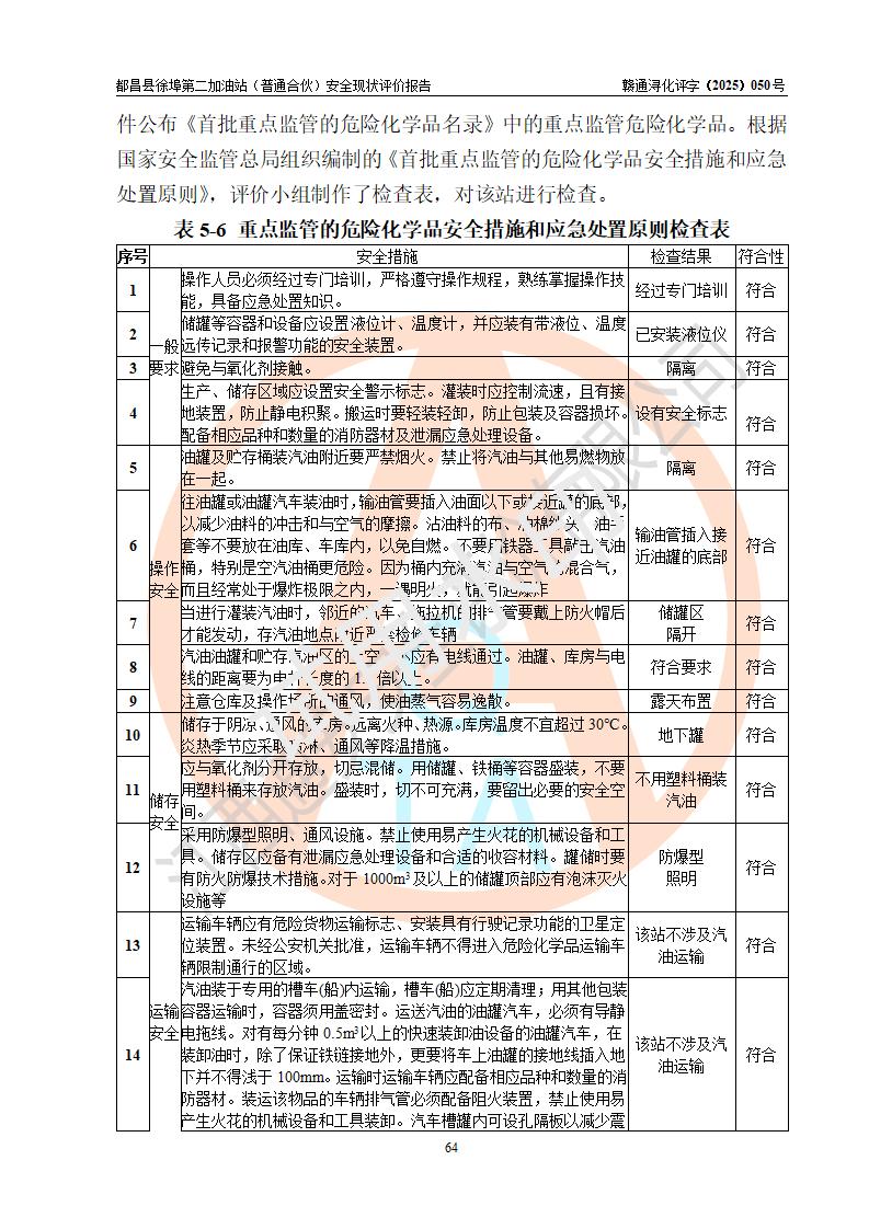 都昌縣徐埠第二加油站(普通合伙)是一家專門從事成品油零售經(jīng)營(yíng)的普通合伙企業(yè),執(zhí)行事務(wù)合伙人:曹建平,經(jīng)營(yíng)場(chǎng)所位于江西省九江市都昌縣徐埠鎮(zhèn)徐埠村委會(huì)上街七組。該加油站現(xiàn)有從業(yè)人員6人,其中安全管理人員1人,主要負(fù)責(zé)人方錦英。 該加油站站區(qū)占地面積2100m2,站區(qū)內(nèi)設(shè)置有3臺(tái)雙槍程控燃油加油機(jī)、1臺(tái)單槍程控燃油加油機(jī)及配套的工藝管線、30m3雙層0#柴油儲(chǔ)罐1臺(tái)、30m3雙層92#汽油儲(chǔ)罐2臺(tái)、30m3雙層95#汽油儲(chǔ)罐1臺(tái),油品儲(chǔ)罐總?cè)莘e為120m3(折算成汽油為105m3)。按現(xiàn)行《汽車加油加氣加氫站技術(shù)標(biāo)準(zhǔn)》對(duì)加油站的等級(jí)劃分原則,該站屬于二級(jí)加油站。 該站由九江市行政審批局換發(fā)《危險(xiǎn)化學(xué)品經(jīng)營(yíng)許可證》(證號(hào):贛九行審經(jīng)(甲)字[2022]000171號(hào)),**期限2022年10月18日至2025年10月17日。 |
