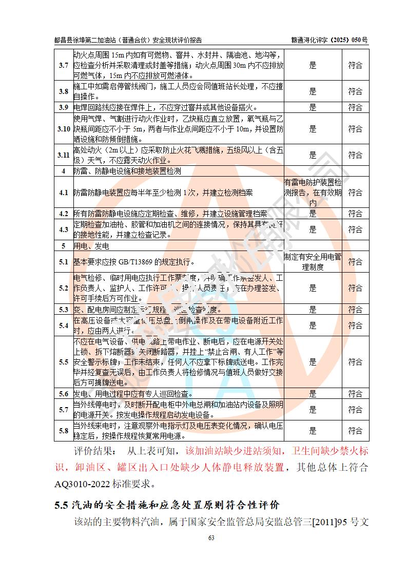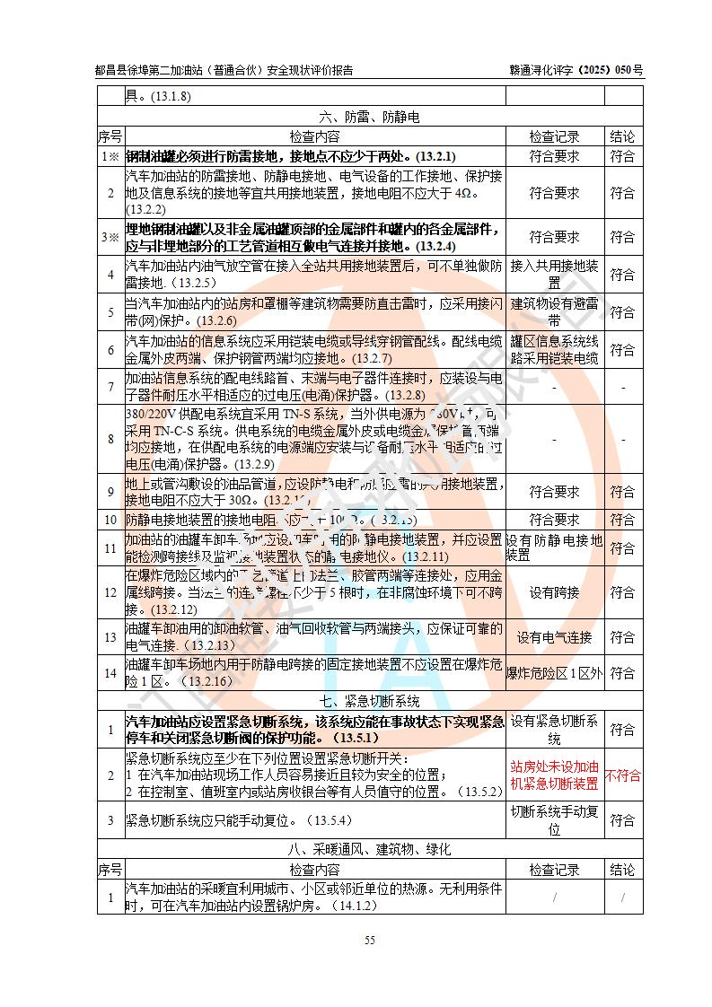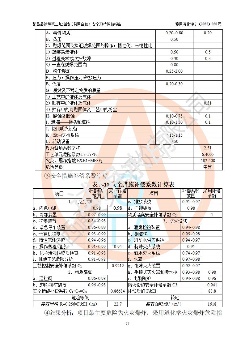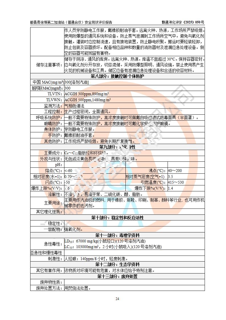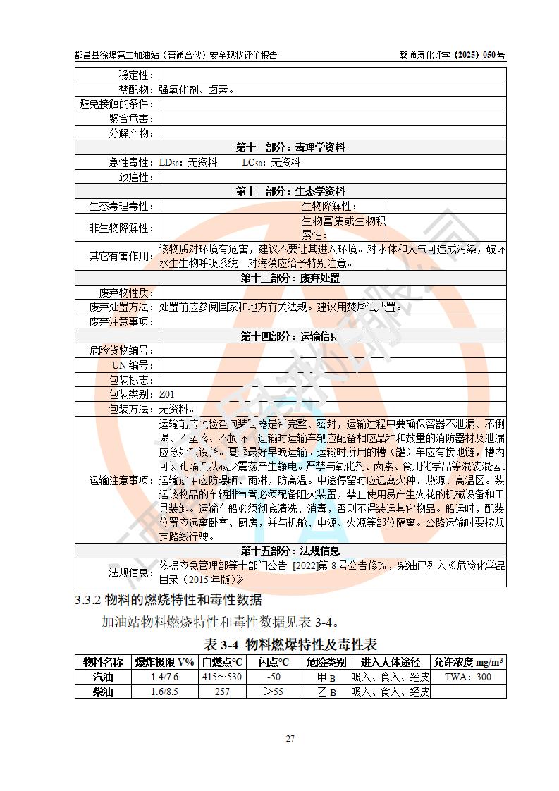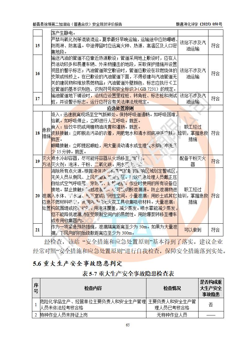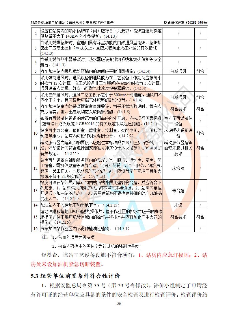 都昌縣徐埠第二加油站(普通合伙)是一家專門從事成品油零售經(jīng)營(yíng)的普通合伙企業(yè),執(zhí)行事務(wù)合伙人:曹建平,經(jīng)營(yíng)場(chǎng)所位于江西省九江市都昌縣徐埠鎮(zhèn)徐埠村委會(huì)上街七組。該加油站現(xiàn)有從業(yè)人員6人,其中安全管理人員1人,主要負(fù)責(zé)人方錦英。 該加油站站區(qū)占地面積2100m2,站區(qū)內(nèi)設(shè)置有3臺(tái)雙槍程控燃油加油機(jī)、1臺(tái)單槍程控燃油加油機(jī)及配套的工藝管線、30m3雙層0#柴油儲(chǔ)罐1臺(tái)、30m3雙層92#汽油儲(chǔ)罐2臺(tái)、30m3雙層95#汽油儲(chǔ)罐1臺(tái),油品儲(chǔ)罐總?cè)莘e為120m3(折算成汽油為105m3)。按現(xiàn)行《汽車加油加氣加氫站技術(shù)標(biāo)準(zhǔn)》對(duì)加油站的等級(jí)劃分原則,該站屬于二級(jí)加油站。 該站由九江市行政審批局換發(fā)《危險(xiǎn)化學(xué)品經(jīng)營(yíng)許可證》(證號(hào):贛九行審經(jīng)(甲)字[2022]000171號(hào)),**期限2022年10月18日至2025年10月17日。 |