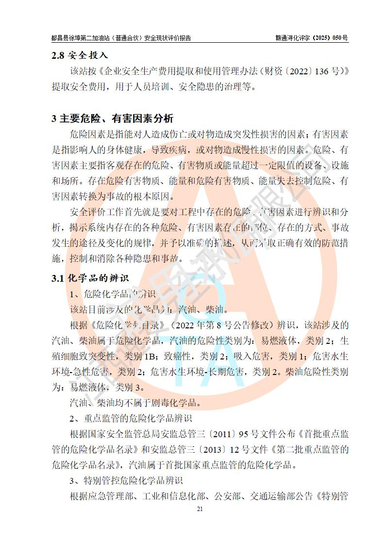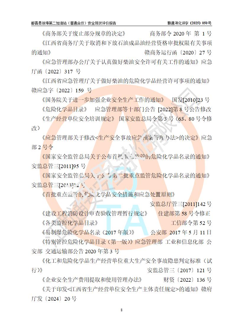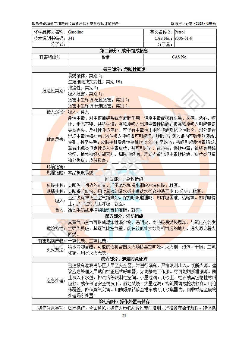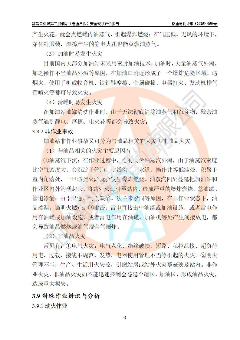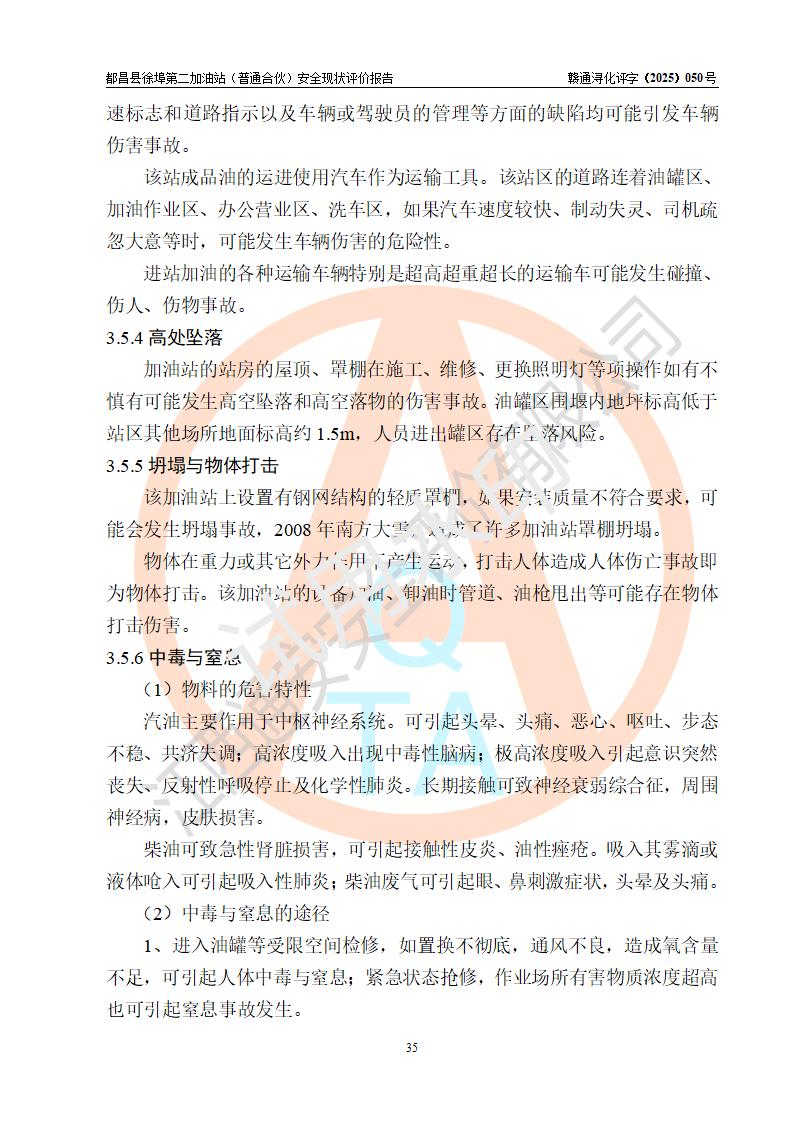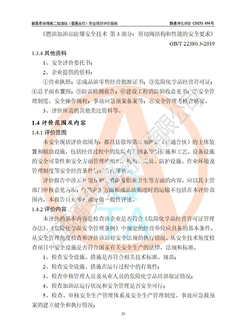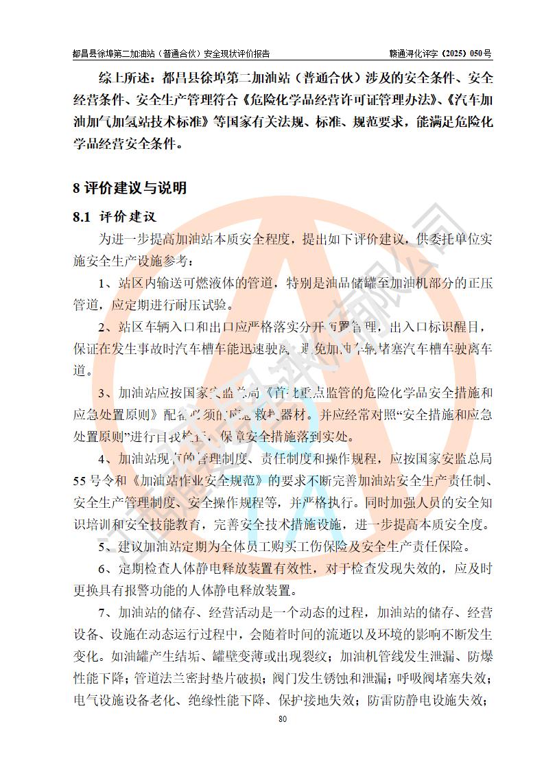 都昌縣徐埠第二加油站(普通合伙)是一家專門從事成品油零售經(jīng)營(yíng)的普通合伙企業(yè),執(zhí)行事務(wù)合伙人:曹建平,經(jīng)營(yíng)場(chǎng)所位于江西省九江市都昌縣徐埠鎮(zhèn)徐埠村委會(huì)上街七組。該加油站現(xiàn)有從業(yè)人員6人,其中安全管理人員1人,主要負(fù)責(zé)人方錦英。 該加油站站區(qū)占地面積2100m2,站區(qū)內(nèi)設(shè)置有3臺(tái)雙槍程控燃油加油機(jī)、1臺(tái)單槍程控燃油加油機(jī)及配套的工藝管線、30m3雙層0#柴油儲(chǔ)罐1臺(tái)、30m3雙層92#汽油儲(chǔ)罐2臺(tái)、30m3雙層95#汽油儲(chǔ)罐1臺(tái),油品儲(chǔ)罐總?cè)莘e為120m3(折算成汽油為105m3)。按現(xiàn)行《汽車加油加氣加氫站技術(shù)標(biāo)準(zhǔn)》對(duì)加油站的等級(jí)劃分原則,該站屬于二級(jí)加油站。 該站由九江市行政審批局換發(fā)《危險(xiǎn)化學(xué)品經(jīng)營(yíng)許可證》(證號(hào):贛九行審經(jīng)(甲)字[2022]000171號(hào)),**期限2022年10月18日至2025年10月17日。 |