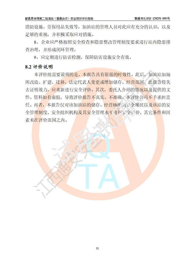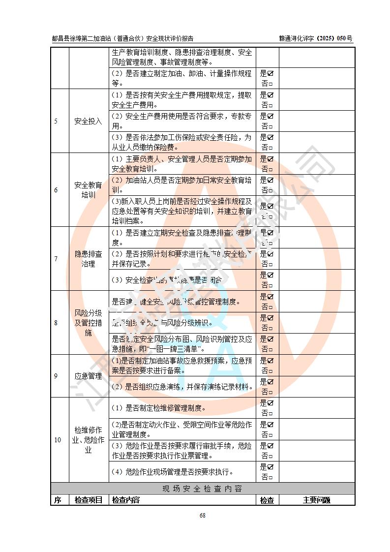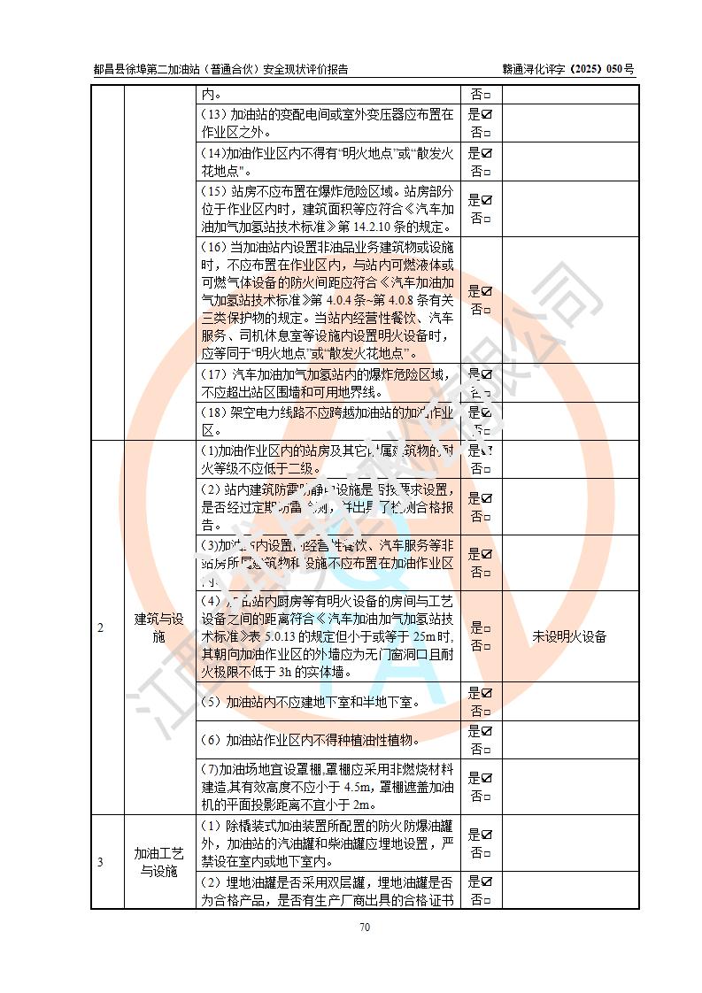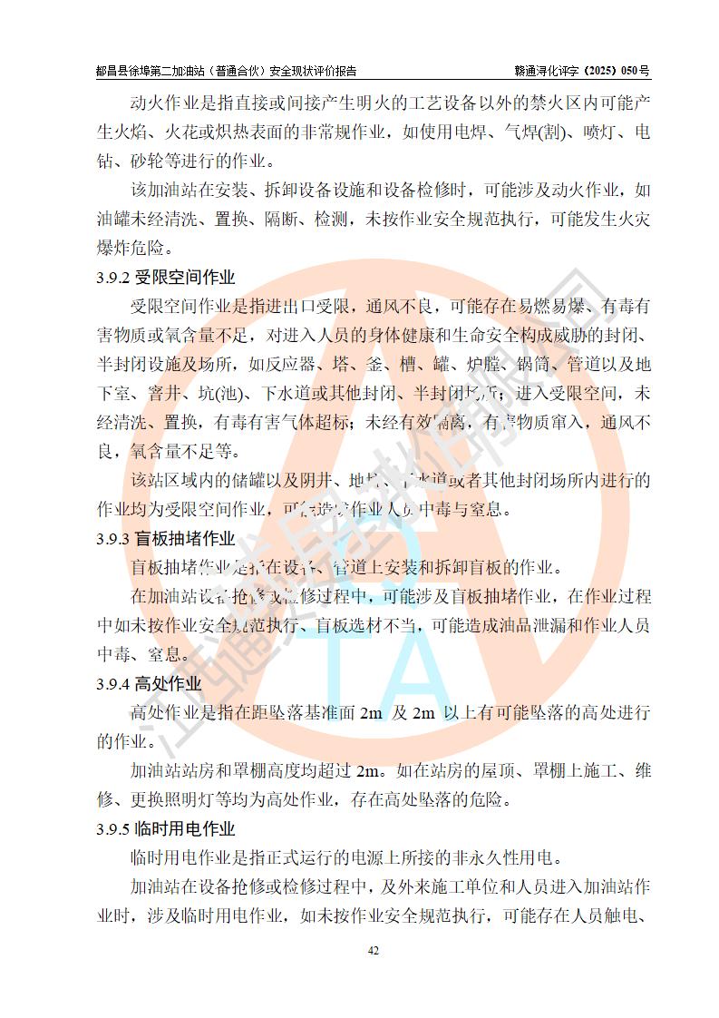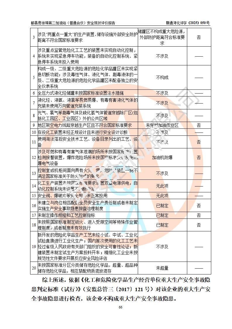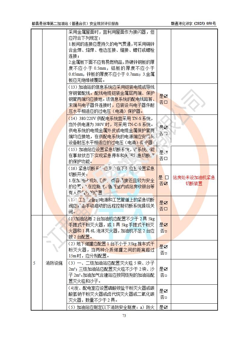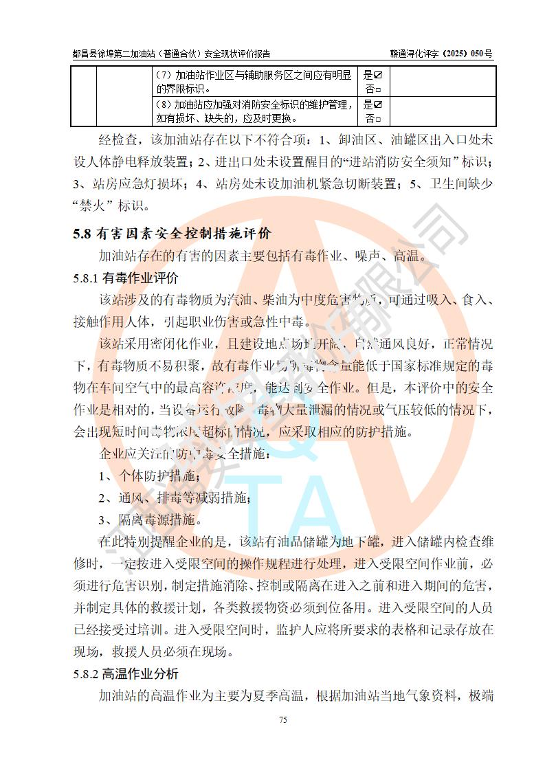 都昌縣徐埠第二加油站(普通合伙)是一家專門從事成品油零售經(jīng)營(yíng)的普通合伙企業(yè),執(zhí)行事務(wù)合伙人:曹建平,經(jīng)營(yíng)場(chǎng)所位于江西省九江市都昌縣徐埠鎮(zhèn)徐埠村委會(huì)上街七組。該加油站現(xiàn)有從業(yè)人員6人,其中安全管理人員1人,主要負(fù)責(zé)人方錦英。 該加油站站區(qū)占地面積2100m2,站區(qū)內(nèi)設(shè)置有3臺(tái)雙槍程控燃油加油機(jī)、1臺(tái)單槍程控燃油加油機(jī)及配套的工藝管線、30m3雙層0#柴油儲(chǔ)罐1臺(tái)、30m3雙層92#汽油儲(chǔ)罐2臺(tái)、30m3雙層95#汽油儲(chǔ)罐1臺(tái),油品儲(chǔ)罐總?cè)莘e為120m3(折算成汽油為105m3)。按現(xiàn)行《汽車加油加氣加氫站技術(shù)標(biāo)準(zhǔn)》對(duì)加油站的等級(jí)劃分原則,該站屬于二級(jí)加油站。 該站由九江市行政審批局換發(fā)《危險(xiǎn)化學(xué)品經(jīng)營(yíng)許可證》(證號(hào):贛九行審經(jīng)(甲)字[2022]000171號(hào)),**期限2022年10月18日至2025年10月17日。 |