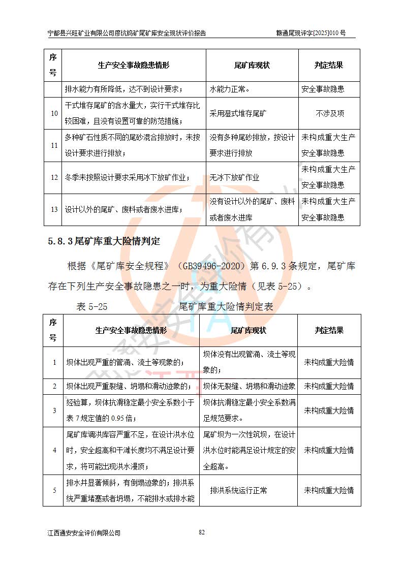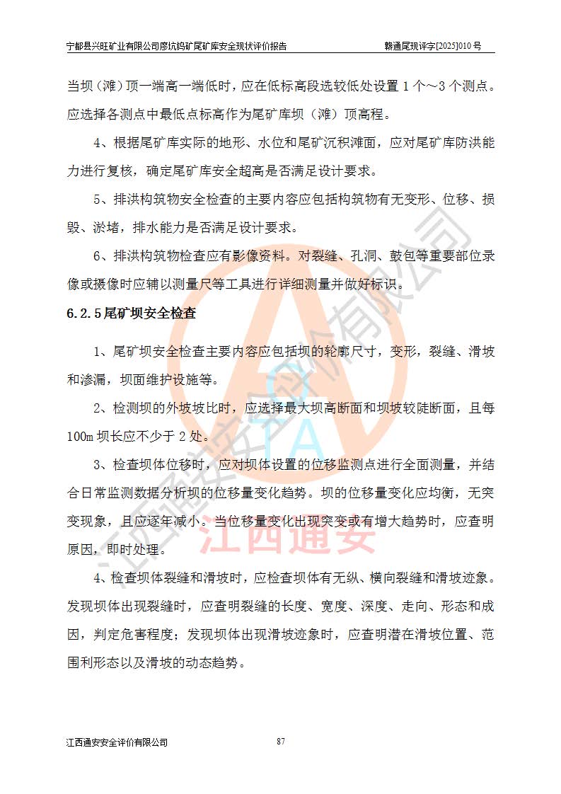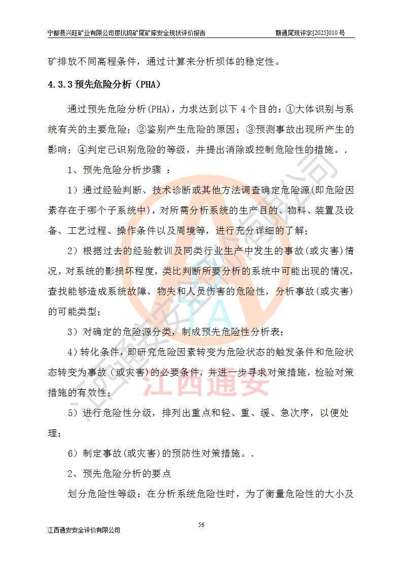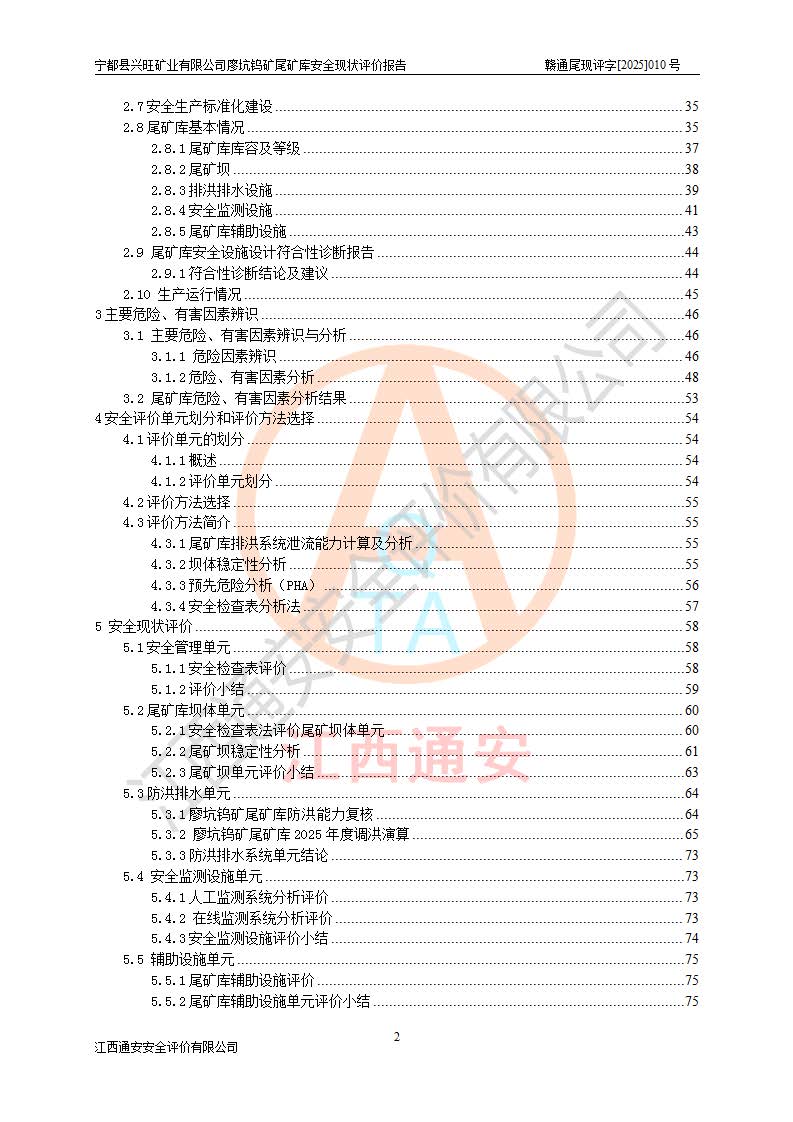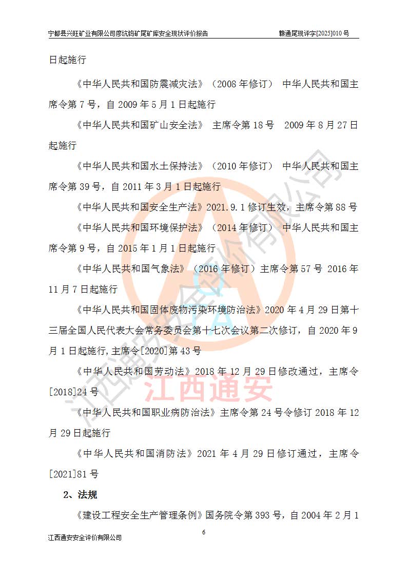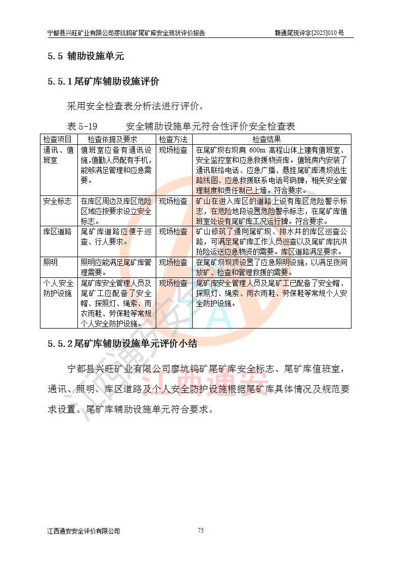 寧都縣興旺礦業(yè)有限公司廖坑鎢礦位于寧都縣縣城北西直距約15km處的安福鄉(xiāng)西甲村,地理坐標(biāo):東經(jīng)115°50′48″;北緯26°32′1″。寧都縣興旺礦業(yè)有限公司成立于2006年03月29日,統(tǒng)一社會(huì)信用代碼為91360730787253633E,企業(yè)類型為有限責(zé)任公司(自然人投資或控股),企業(yè)注冊(cè)地位于江西省贛州市寧都縣安福鄉(xiāng)西甲村,法定**人為曾德強(qiáng),注冊(cè)資本為1915萬元人民幣,所屬行業(yè)為有色金屬礦采選業(yè),經(jīng)營范圍包括鎢砂開采及廢砂石加工、銷售。 廖坑鎢礦尾礦庫位于寧都縣安福鄉(xiāng)西甲村、選礦廠東面約1.17Km的下游溝谷中,選礦廠年生產(chǎn)工作日300d,尾礦堆積干容重1.60 t/m3。尾礦庫匯水面積1.927km2,尾礦壩為漿砌塊石重力壩,壩頂高程595.0m,清基后壩底高程為571.0m,壩高24.0m,壩頂寬度2.7m,壩頂軸線長75.0m;上游壩坡1:0,下游壩坡1:1.0。尾礦從庫尾進(jìn)行排放,設(shè)計(jì)總庫容8.5×104m3,服務(wù)年限10.9年。尾礦庫總占地面積約21.0畝。為山谷型五等庫。 該尾礦庫于1982年11月由寧都縣水電施工隊(duì)建設(shè)施工,1983年11月投產(chǎn),2007年1月由江西省冶金設(shè)計(jì)院編制了《寧都縣興旺礦業(yè)有限公司廖坑鎢礦尾礦庫整改方案設(shè)計(jì)》,2008年4月2日取得江西省安全生產(chǎn)監(jiān)督管理局頒發(fā)的安全生產(chǎn)許可證,證書編號(hào)(贛)FM安許證字[2008]M1268號(hào)。2022年江西通安安全評(píng)價(jià)有限公司編制了安全現(xiàn)狀評(píng)價(jià)報(bào)告,2022年7月15日由贛州市行政審批局下發(fā)了安全生產(chǎn)許可證,證號(hào)(贛)FM安許證字[2022]B0081號(hào),(贛市行審證(3)字[2022]第274號(hào)),**期至2025年7月14日。 依照《非煤礦礦山企業(yè)安全生產(chǎn)許可證延期換證工作》的通知,根據(jù)***《安全生產(chǎn)許可證條例》、《江西省安全生產(chǎn)條例》、《非煤礦山安全生產(chǎn)許可證實(shí)施辦法》、《江西省非煤礦礦山企業(yè)安全生產(chǎn)許可證辦法》規(guī)定及非煤礦山安全評(píng)價(jià)導(dǎo)則的要求,受寧都縣興旺礦業(yè)有限公司的委托,我公司承擔(dān)廖坑鎢礦尾礦庫延期換證的安全現(xiàn)狀評(píng)價(jià)工作。 |