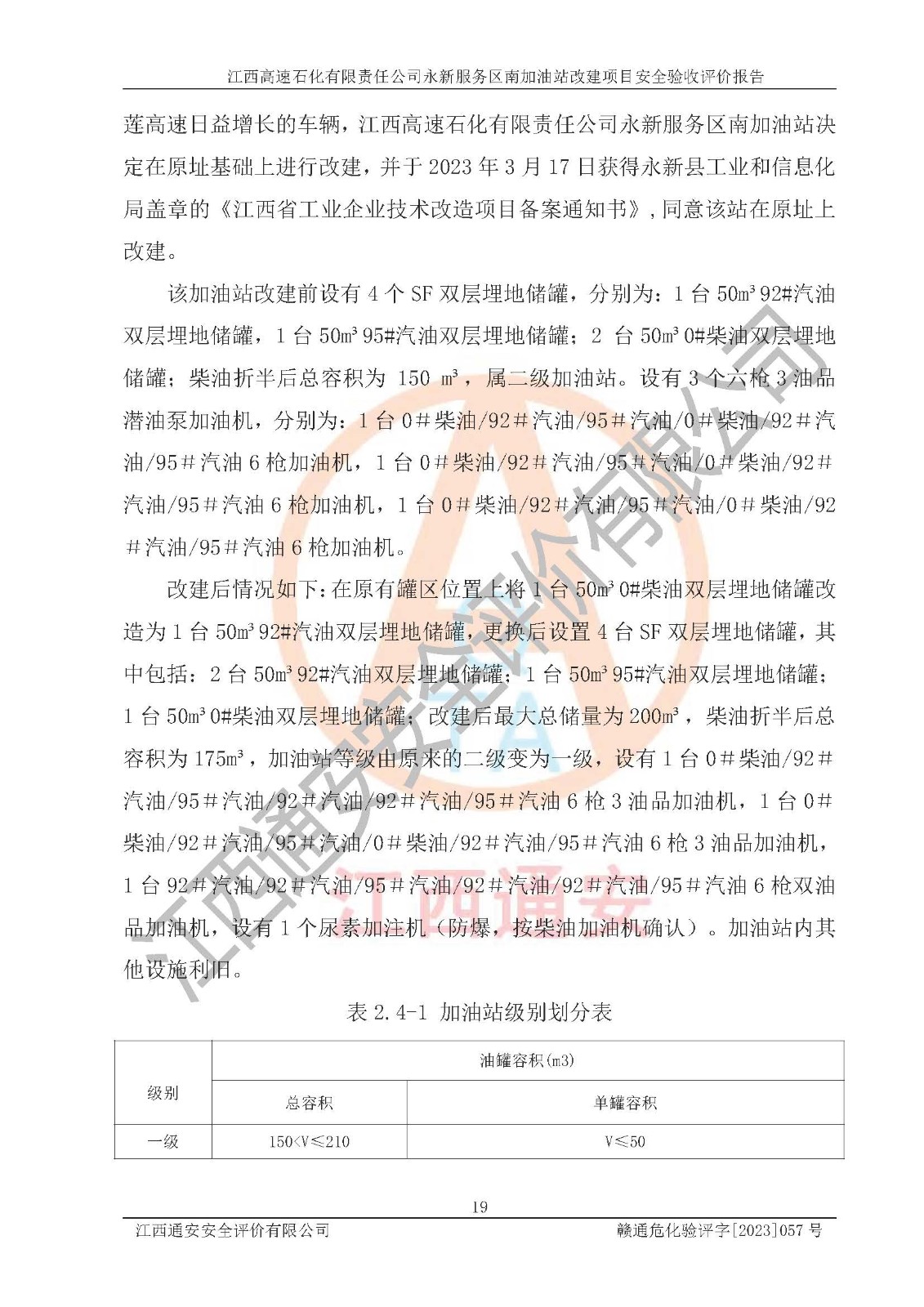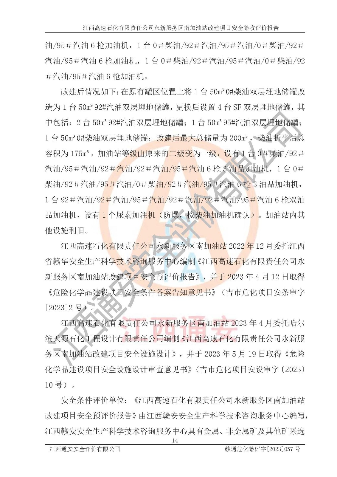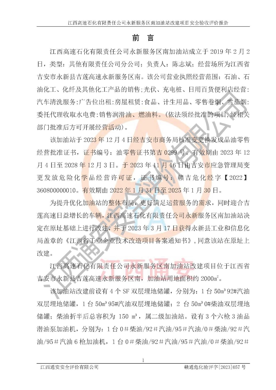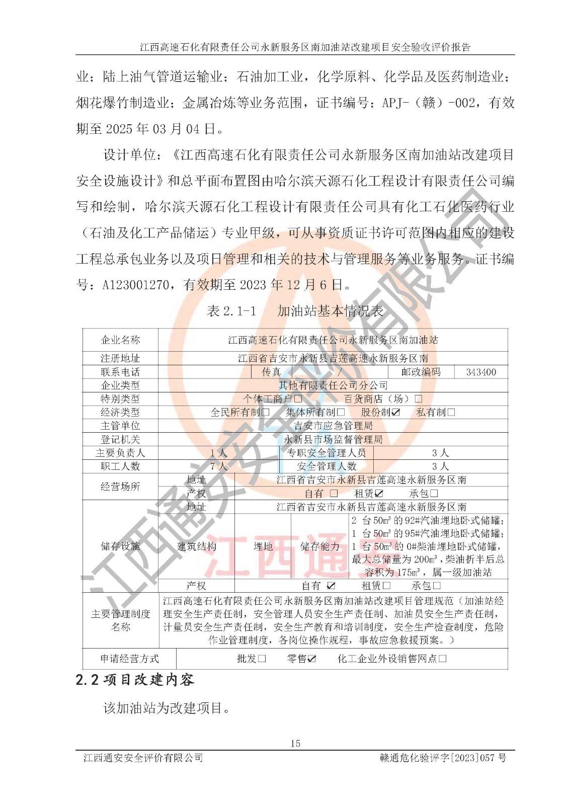 項(xiàng)目名稱 | 江西高速石化有限責(zé)任公司永新服務(wù)區(qū)南加油站改建項(xiàng)目安全驗(yàn)收評(píng)價(jià)報(bào)告 | ||||