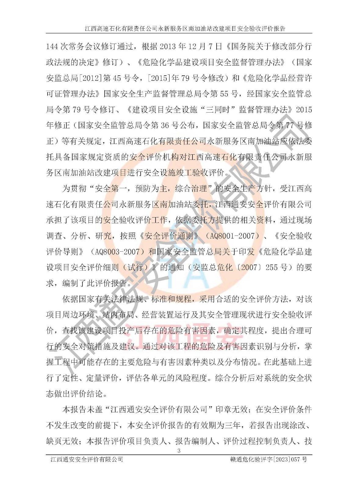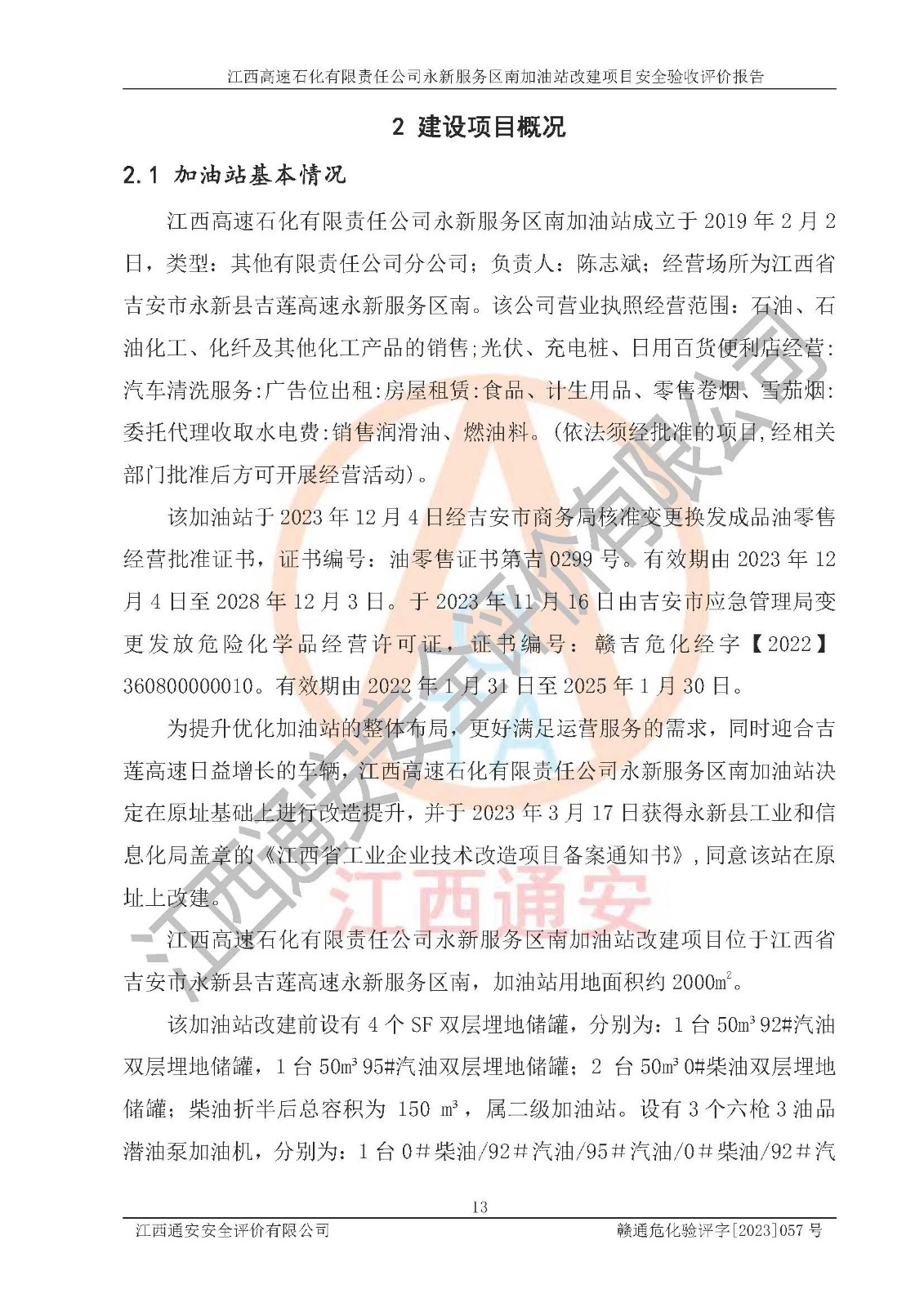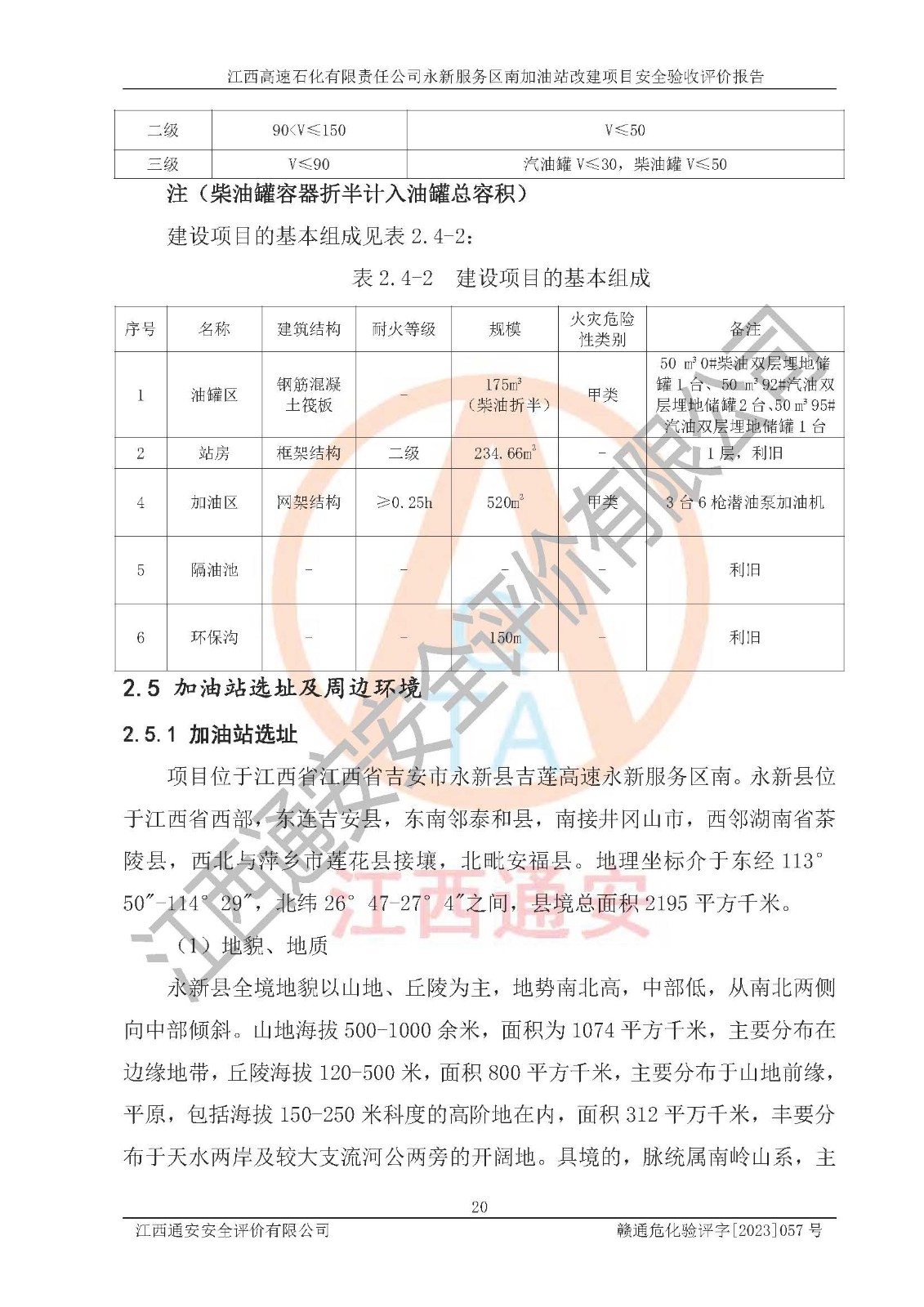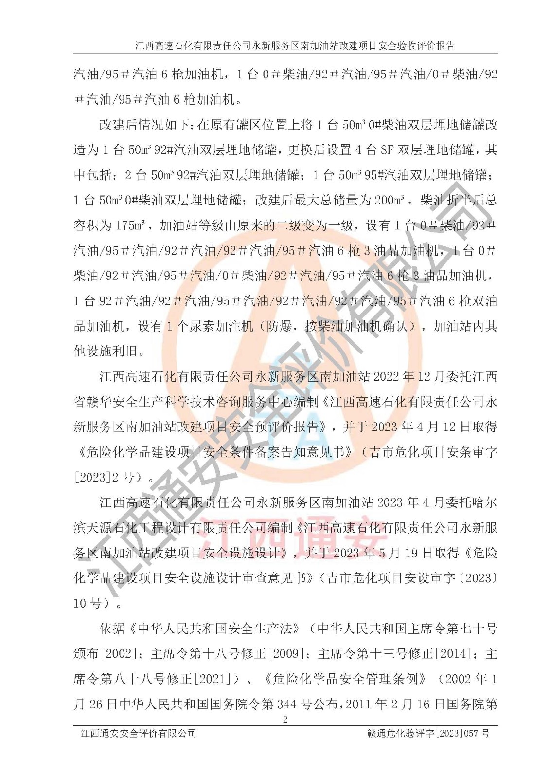 項(xiàng)目名稱 | 江西高速石化有限責(zé)任公司永新服務(wù)區(qū)南加油站改建項(xiàng)目安全驗(yàn)收評(píng)價(jià)報(bào)告 | ||||