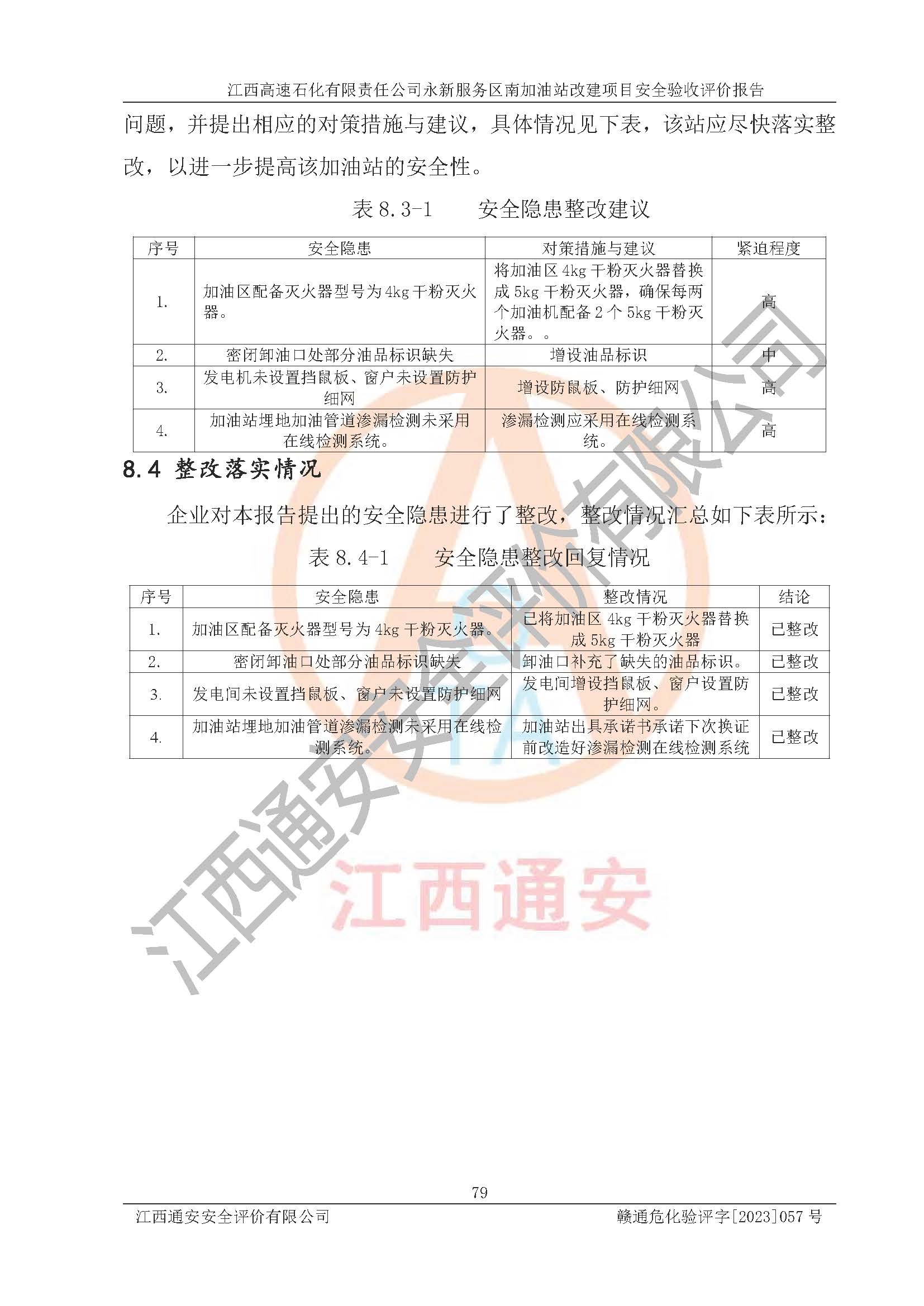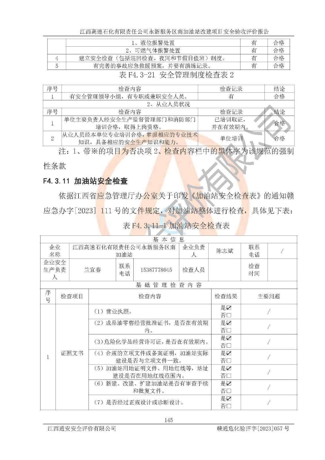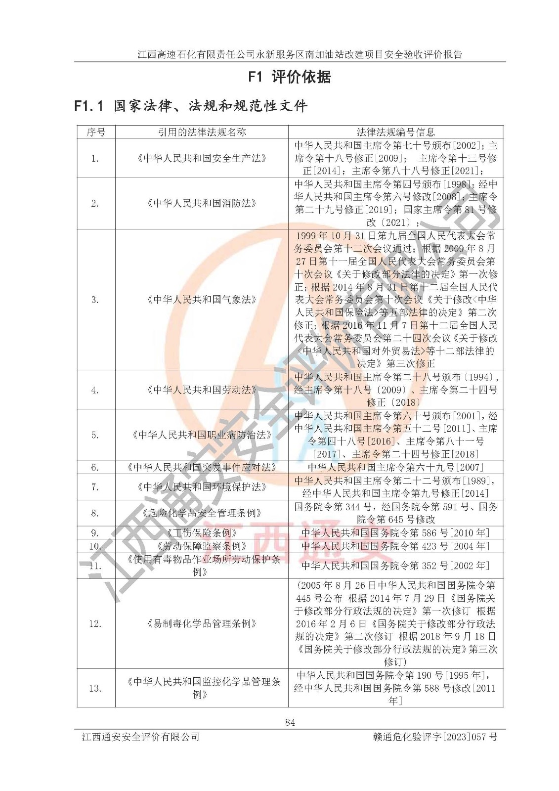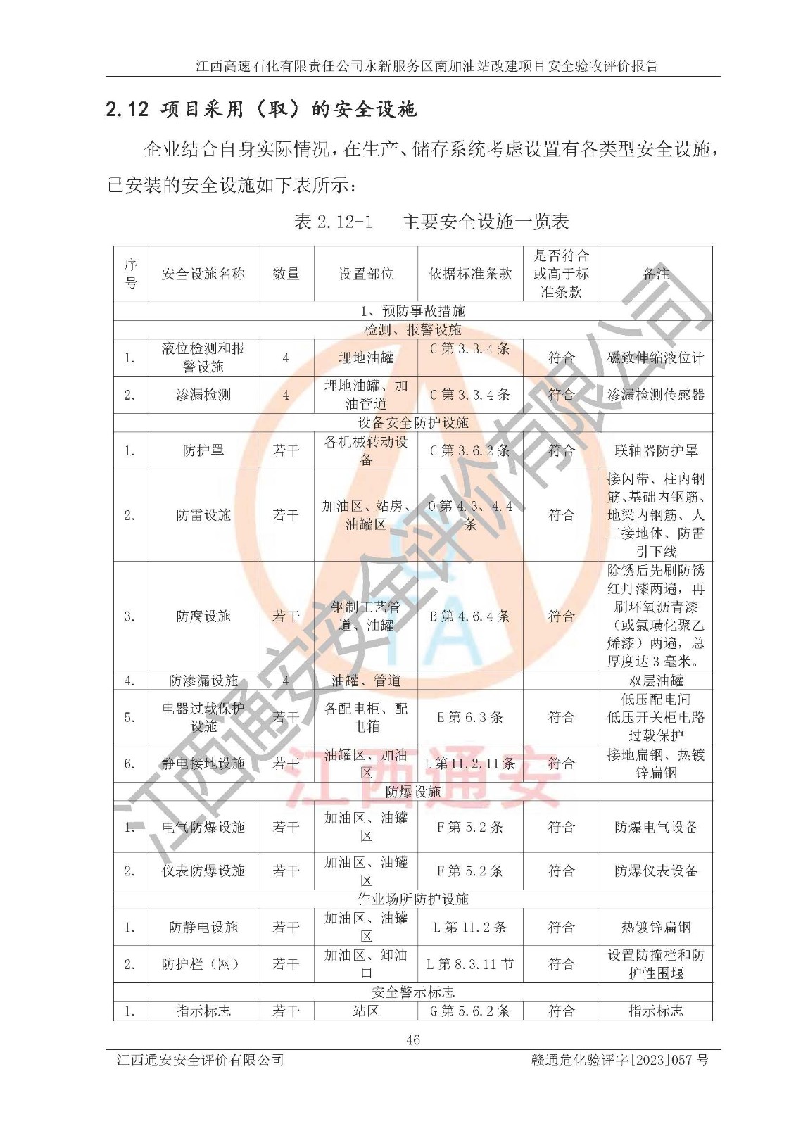 項(xiàng)目名稱 | 江西高速石化有限責(zé)任公司永新服務(wù)區(qū)南加油站改建項(xiàng)目安全驗(yàn)收評(píng)價(jià)報(bào)告 | ||||