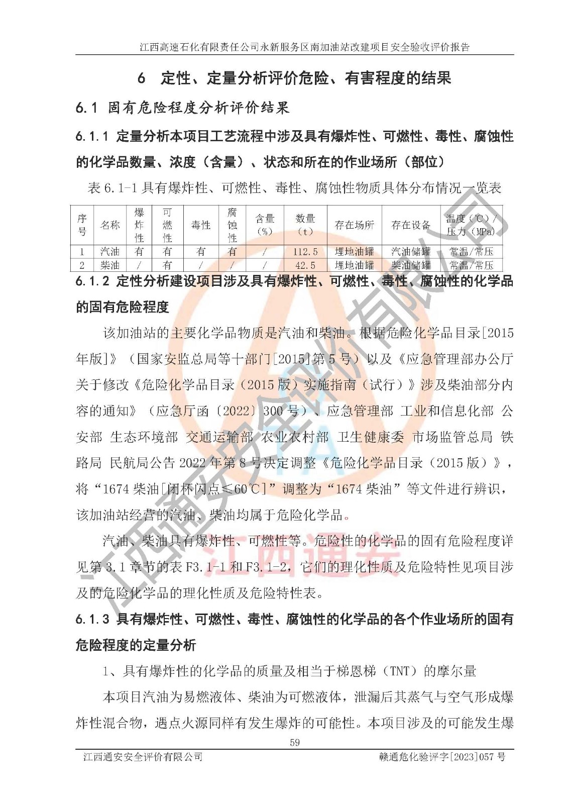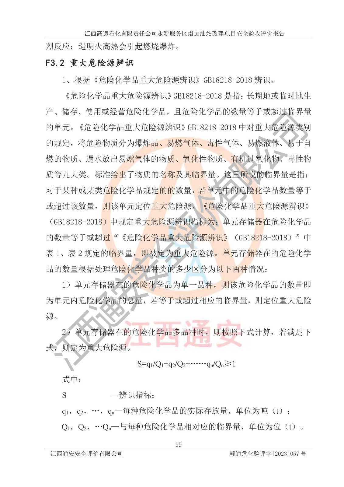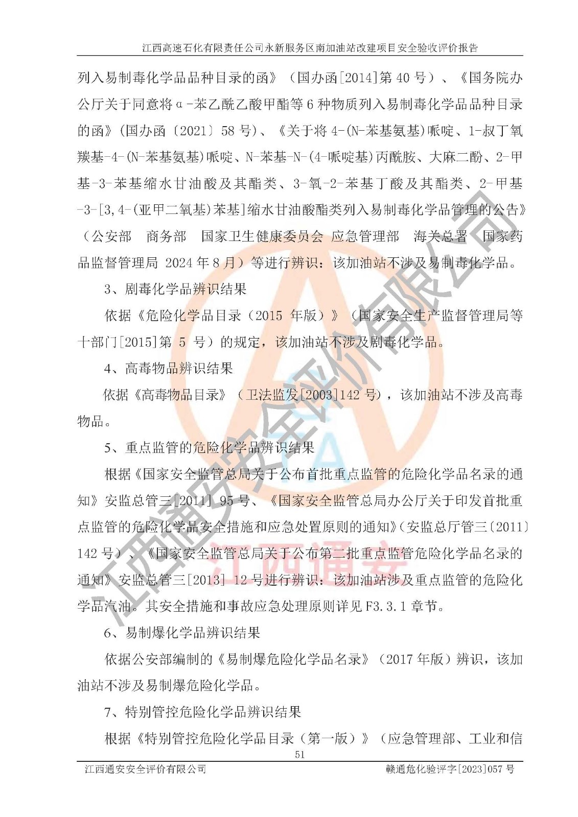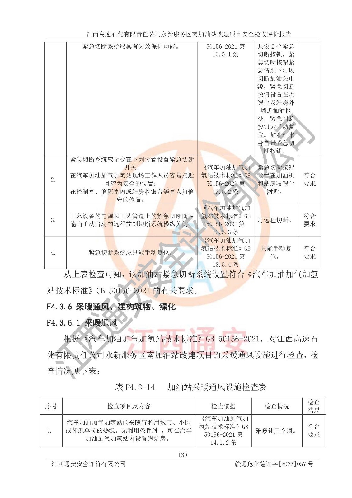 項(xiàng)目簡(jiǎn)介 | 江西高速石化有限責(zé)任公司永新服務(wù)區(qū)南加油站成立于2019年2月2日,類型:其他有限責(zé)任公司分公司;負(fù)責(zé)人:陳志斌;經(jīng)營(yíng)場(chǎng)所為江西省吉安市永新縣吉蓮高速永新服務(wù)區(qū)南。該公司營(yíng)業(yè)執(zhí)照經(jīng)營(yíng)范圍:石油、石油化工、化纖及其他化工產(chǎn)品的銷售;光伏、充電樁、日用百貨便利店經(jīng)營(yíng):汽車清洗服務(wù):廣告位出租:房屋租賃:食品、計(jì)生用品、零售卷煙、雪茄煙:委托代理收取水電費(fèi):銷售潤(rùn)滑油、燃油料。(依法須經(jīng)批準(zhǔn)的項(xiàng)目,經(jīng)相關(guān)部門(mén)批準(zhǔn)后方可開(kāi)展經(jīng)營(yíng)活動(dòng))。 該加油站于2023年12月4日經(jīng)吉安市商務(wù)局核準(zhǔn)變更換發(fā)成品油零售經(jīng)營(yíng)批準(zhǔn)證書(shū),證書(shū)編號(hào):油零售證書(shū)第吉0299號(hào)。**期由2023年12月4日至2028年12月3日。于2023年11月16日由吉安市應(yīng)急管理局變更發(fā)放危險(xiǎn)化學(xué)品經(jīng)營(yíng)許可證,證書(shū)編號(hào):贛吉?;?jīng)字【2022】360800000010。**期由2022年1月31日至2025年1月30日。 為提升優(yōu)化加油站的整體布局,更好滿足運(yùn)營(yíng)服務(wù)的需求,同時(shí)迎合吉蓮高速日益增長(zhǎng)的**,江西高速石化有限責(zé)任公司永新服務(wù)區(qū)南加油站決定在原址基礎(chǔ)上進(jìn)行改建,并于2023年3月17日獲得永新縣工業(yè)和信息化局蓋章的《江西省工業(yè)企業(yè)技術(shù)改造項(xiàng)目備案通知書(shū)》,同意該站在原址上改建。 江西高速石化有限責(zé)任公司永新服務(wù)區(qū)南加油站改建項(xiàng)目位于江西省吉安市永新縣吉蓮高速永新服務(wù)區(qū)南,加油站用地面積約2000m2。 該加油站改建前設(shè)有4個(gè)SF雙層埋地儲(chǔ)罐,分別為:1臺(tái)50m392#汽油雙層埋地儲(chǔ)罐,1臺(tái)50m395#汽油雙層埋地儲(chǔ)罐;2 臺(tái)50m30#柴油雙層埋地儲(chǔ)罐;柴油折半后總?cè)莘e為 150 m3,屬二級(jí)加油站。設(shè)有3個(gè)六槍3油品潛油泵加油機(jī),分別為:1臺(tái)0#柴油/92#汽油/95#汽油/0#柴油/92#汽油/95#汽油6槍加油機(jī),1臺(tái)0#柴油/92#汽油/95#汽油/0#柴油/92#汽油/95#汽油6槍加油機(jī),1臺(tái)0#柴油/92#汽油/95#汽油/0#柴油/92#汽油/95#汽油6槍加油機(jī)。 改建后情況如下:在原有罐區(qū)位置上將1臺(tái)50m30#柴油雙層埋地儲(chǔ)罐改造為1臺(tái)50m392#汽油雙層埋地儲(chǔ)罐,更換后設(shè)置4臺(tái)SF雙層埋地儲(chǔ)罐,其中包括:2臺(tái)50m392#汽油雙層埋地儲(chǔ)罐;1臺(tái)50m395#汽油雙層埋地儲(chǔ)罐;1臺(tái)50m30#柴油雙層埋地儲(chǔ)罐;改建后*大總儲(chǔ)量為200m3,柴油折半后總?cè)莘e為175m3,加油站等級(jí)由原來(lái)的二級(jí)變?yōu)?/span>一級(jí),設(shè)有1臺(tái)0#柴油/92#汽油/95#汽油/92#汽油/92#汽油/95#汽油6槍3油品加油機(jī),1臺(tái)0#柴油/92#汽油/95#汽油/0#柴油/92#汽油/95#汽油6槍3油品加油機(jī),1臺(tái)92#汽油/92#汽油/95#汽油/92#汽油/92#汽油/95#汽油6槍雙油品加油機(jī),設(shè)有1個(gè)尿素加注機(jī)(防爆,按柴油加油機(jī)確認(rèn)),加油站內(nèi)其他設(shè)施利舊。 江西高速石化有限責(zé)任公司永新服務(wù)區(qū)南加油站2022年12月委托江西省贛華安全生產(chǎn)科學(xué)技術(shù)咨詢服務(wù)中心編制《江西高速石化有限責(zé)任公司永新服務(wù)區(qū)南加油站改建項(xiàng)目安全預(yù)評(píng)價(jià)報(bào)告》,并于2023年4月12日取得《危險(xiǎn)化學(xué)品建設(shè)項(xiàng)目安全條件備案告知意見(jiàn)書(shū)》(吉市?;?xiàng)目安條審字[2023]2號(hào))。 江西高速石化有限責(zé)任公司永新服務(wù)區(qū)南加油站2023年4月委托哈爾濱天源石化工程設(shè)計(jì)有限責(zé)任公司編制《江西高速石化有限責(zé)任公司永新服務(wù)區(qū)南加油站改建項(xiàng)目安全設(shè)施設(shè)計(jì)》,并于2023年5月19日取得《危險(xiǎn)化學(xué)品建設(shè)項(xiàng)目安全設(shè)施設(shè)計(jì)審查意見(jiàn)書(shū)》(吉市危化項(xiàng)目安設(shè)審字〔2023〕10號(hào))。