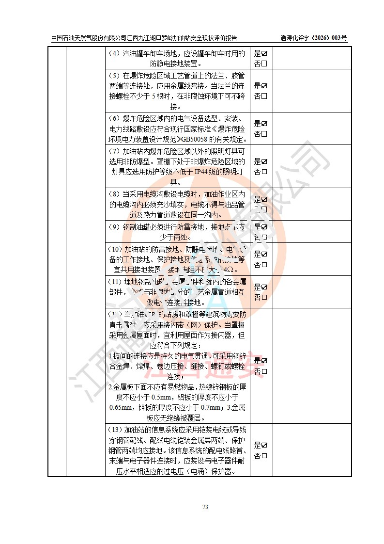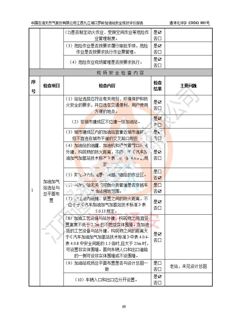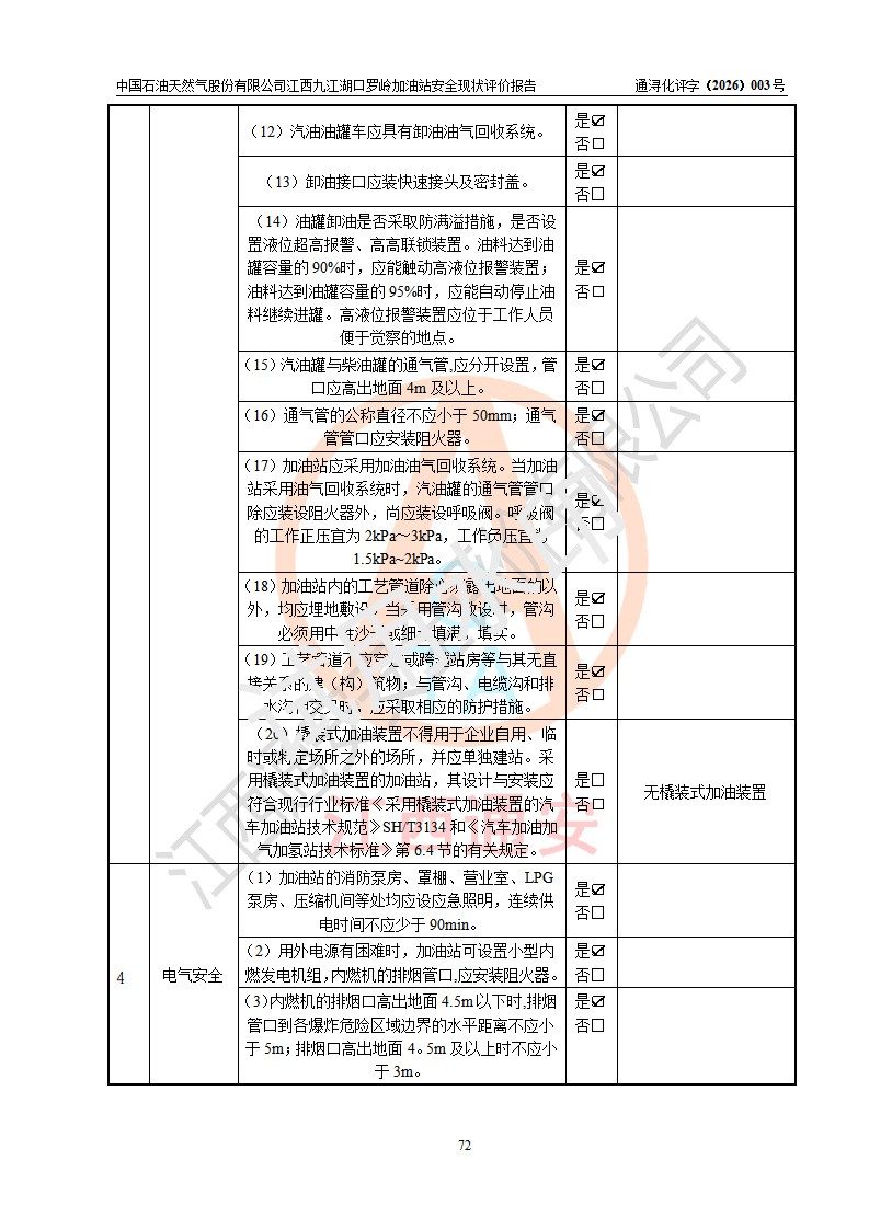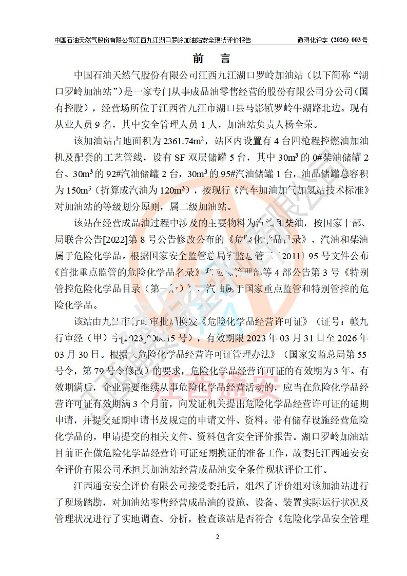 評(píng)價(jià)報(bào)告名稱 | 中國(guó)石油天然氣股份有限公司江西九江湖口羅嶺加油站安全現(xiàn)狀評(píng)價(jià)報(bào)告 | |||