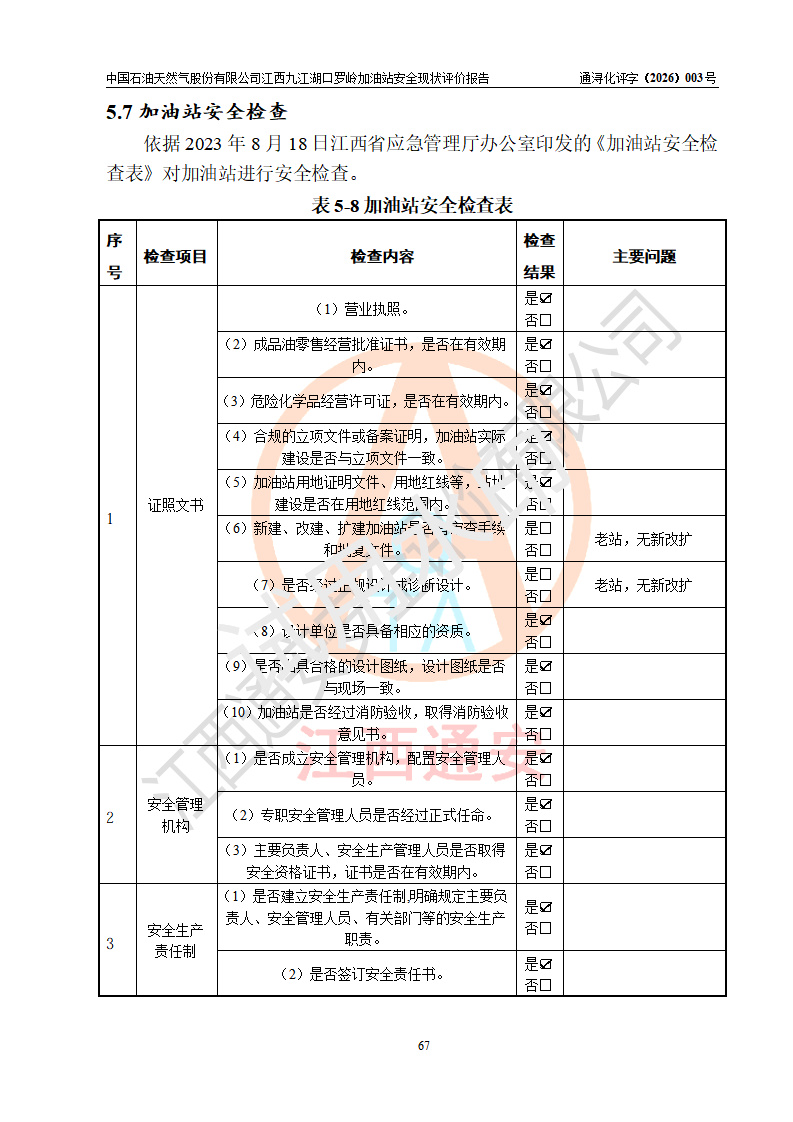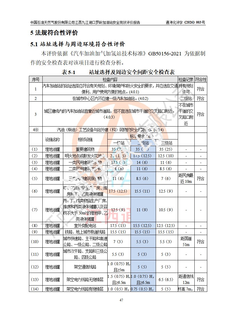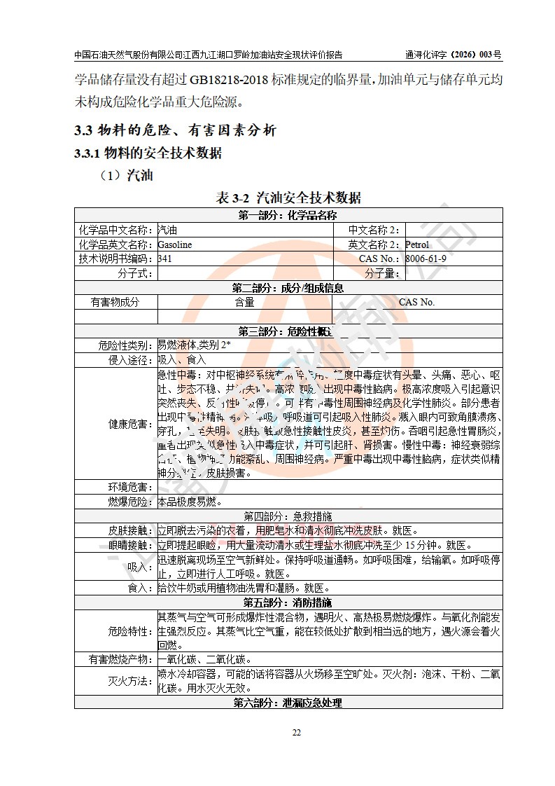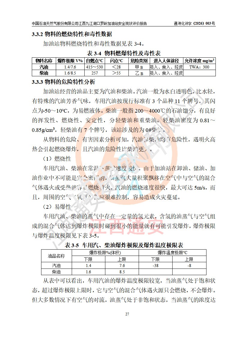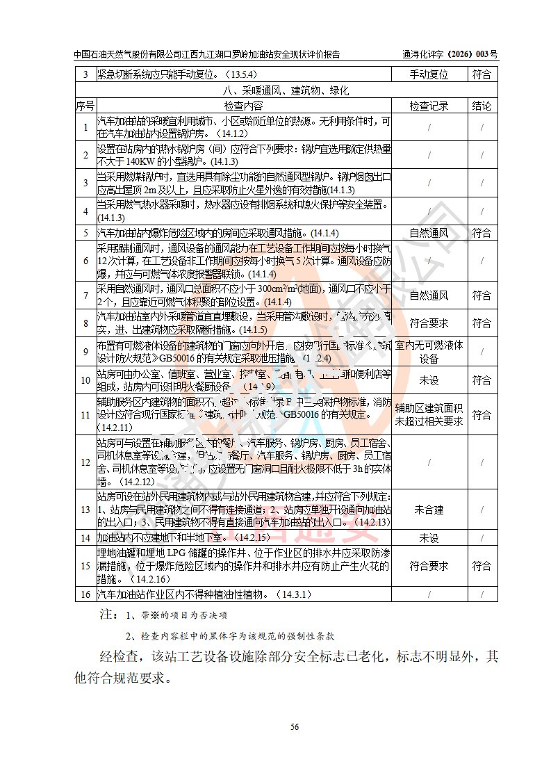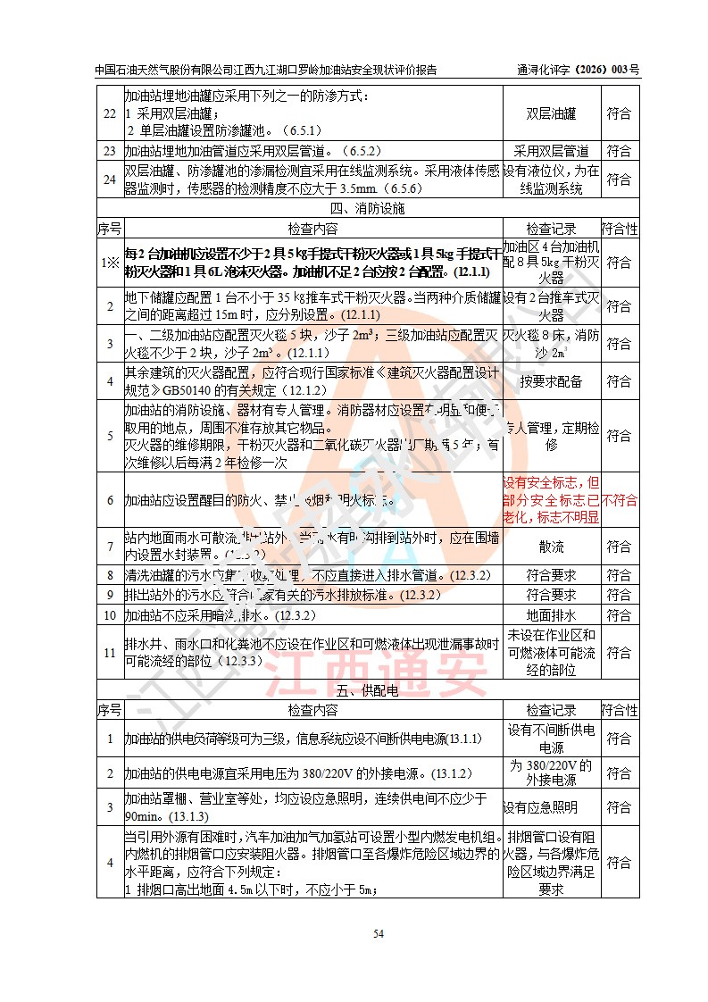 評(píng)價(jià)結(jié)論 | 中國(guó)石油天然氣股份有限公司江西九江湖口羅嶺加油站涉及的安全條件、安全經(jīng)營(yíng)條件、安全生產(chǎn)管理符合《危險(xiǎn)化學(xué)品經(jīng)營(yíng)許可證管理辦法》、《汽車加油加氣加氫站技術(shù)標(biāo)準(zhǔn)》等**有關(guān)法規(guī)、標(biāo)準(zhǔn)、規(guī)范要求,能滿足危險(xiǎn)化學(xué)品經(jīng)營(yíng)安全條件。 | |||