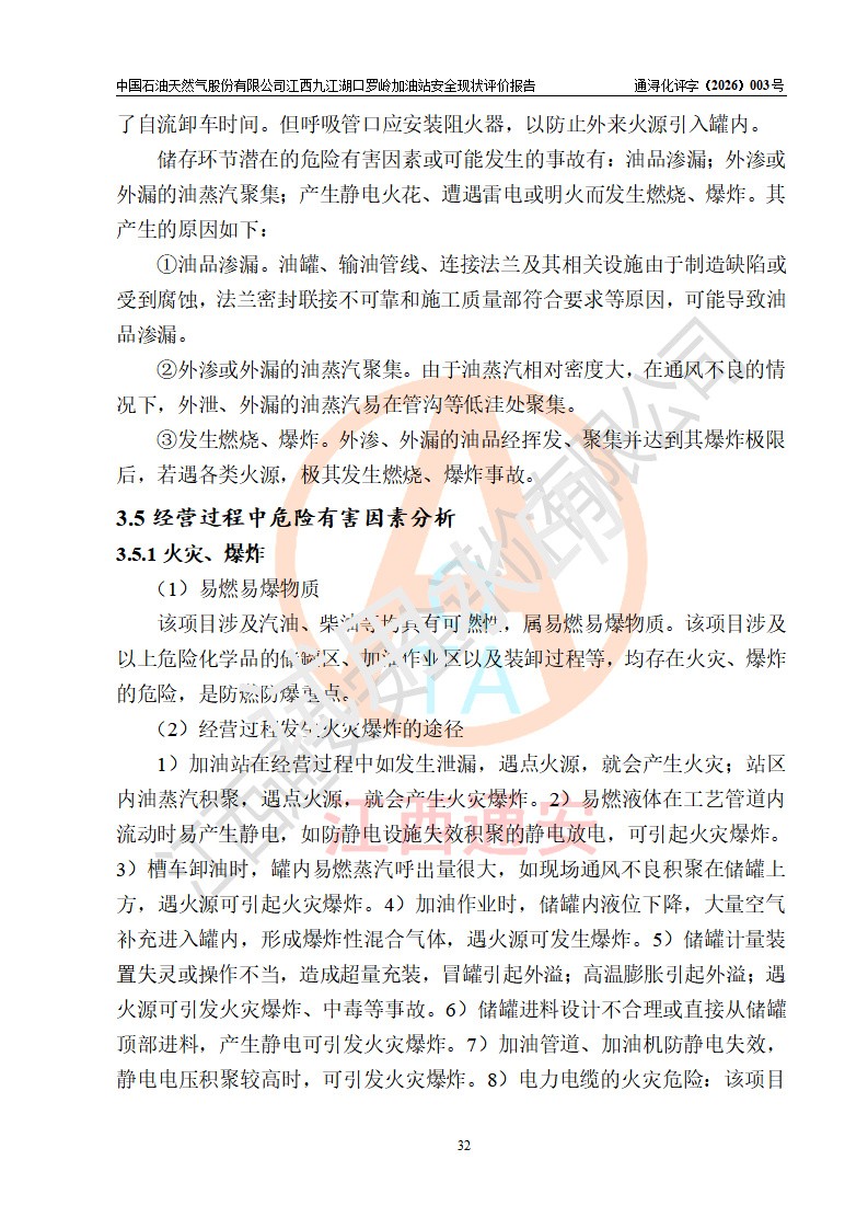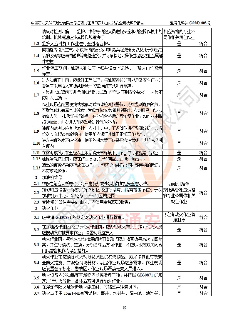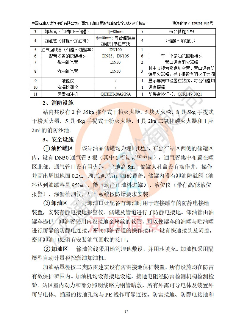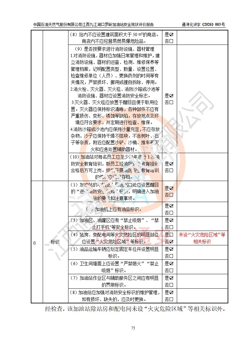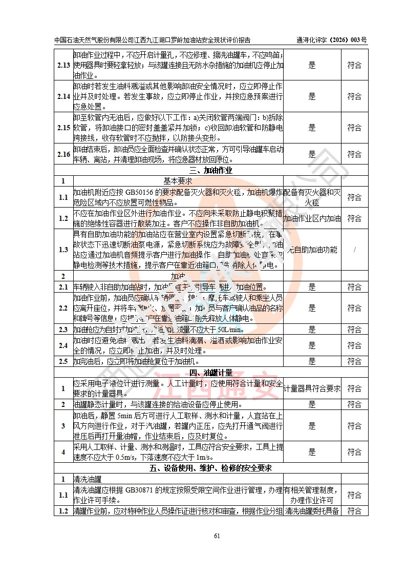 評(píng)價(jià)結(jié)論 | 中國(guó)石油天然氣股份有限公司江西九江湖口羅嶺加油站涉及的安全條件、安全經(jīng)營(yíng)條件、安全生產(chǎn)管理符合《危險(xiǎn)化學(xué)品經(jīng)營(yíng)許可證管理辦法》、《汽車加油加氣加氫站技術(shù)標(biāo)準(zhǔn)》等**有關(guān)法規(guī)、標(biāo)準(zhǔn)、規(guī)范要求,能滿足危險(xiǎn)化學(xué)品經(jīng)營(yíng)安全條件。 | |||
