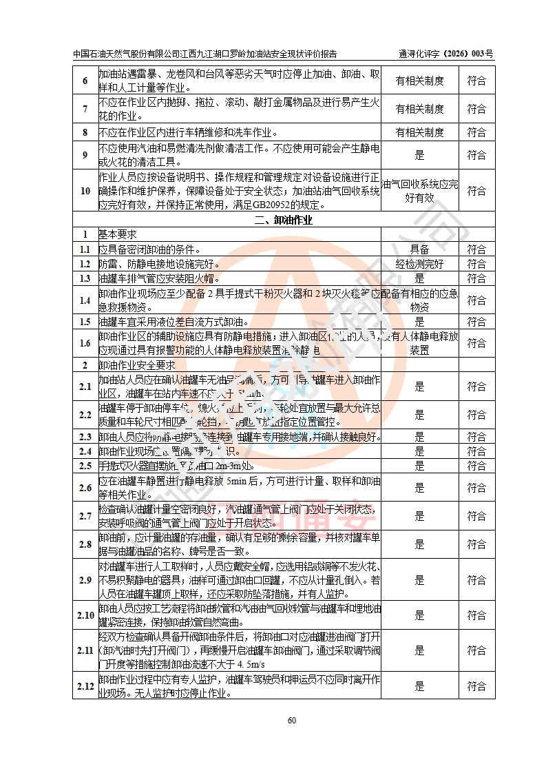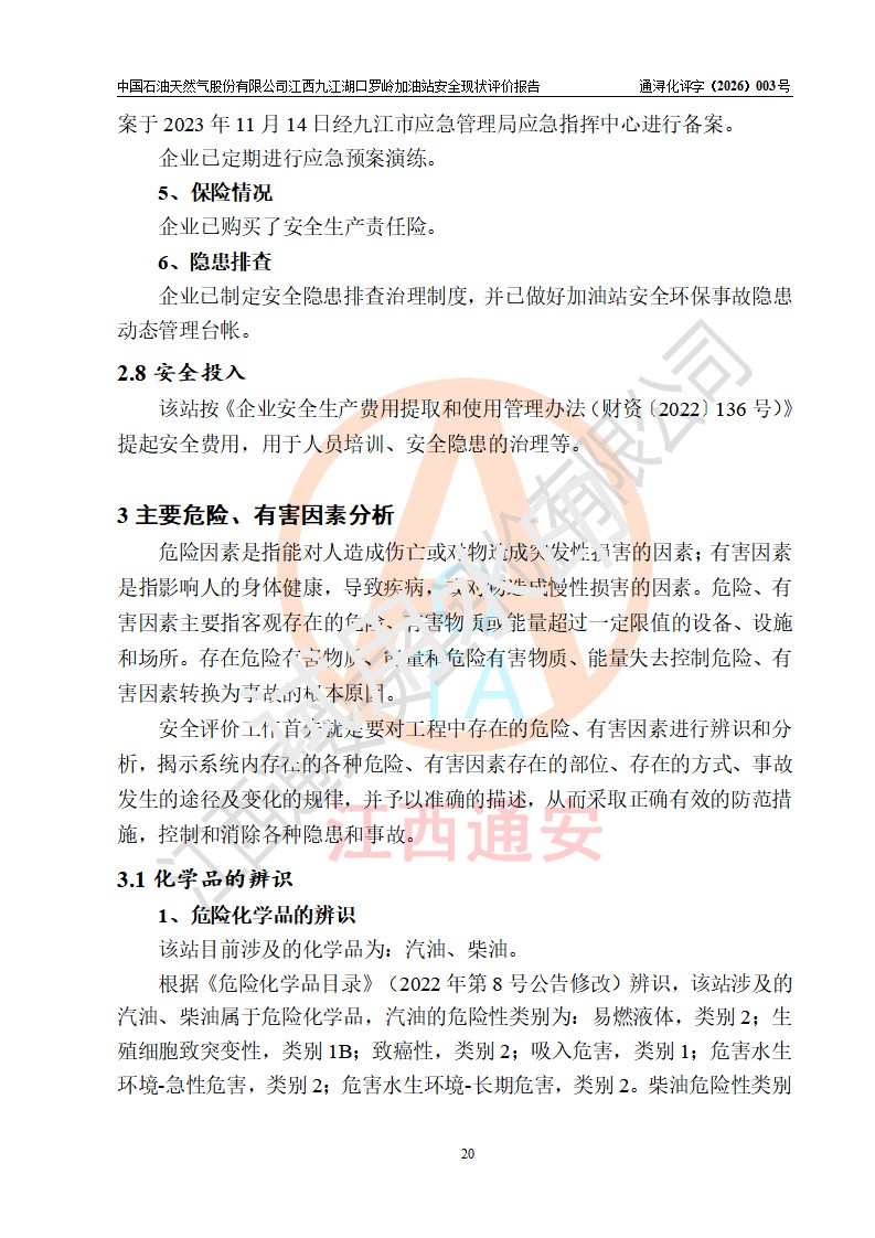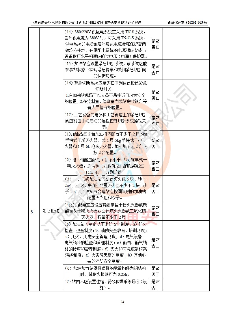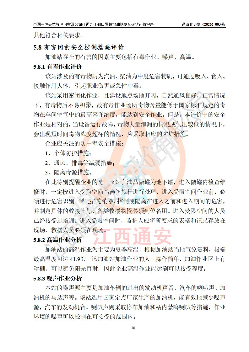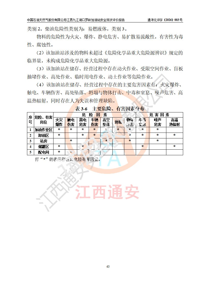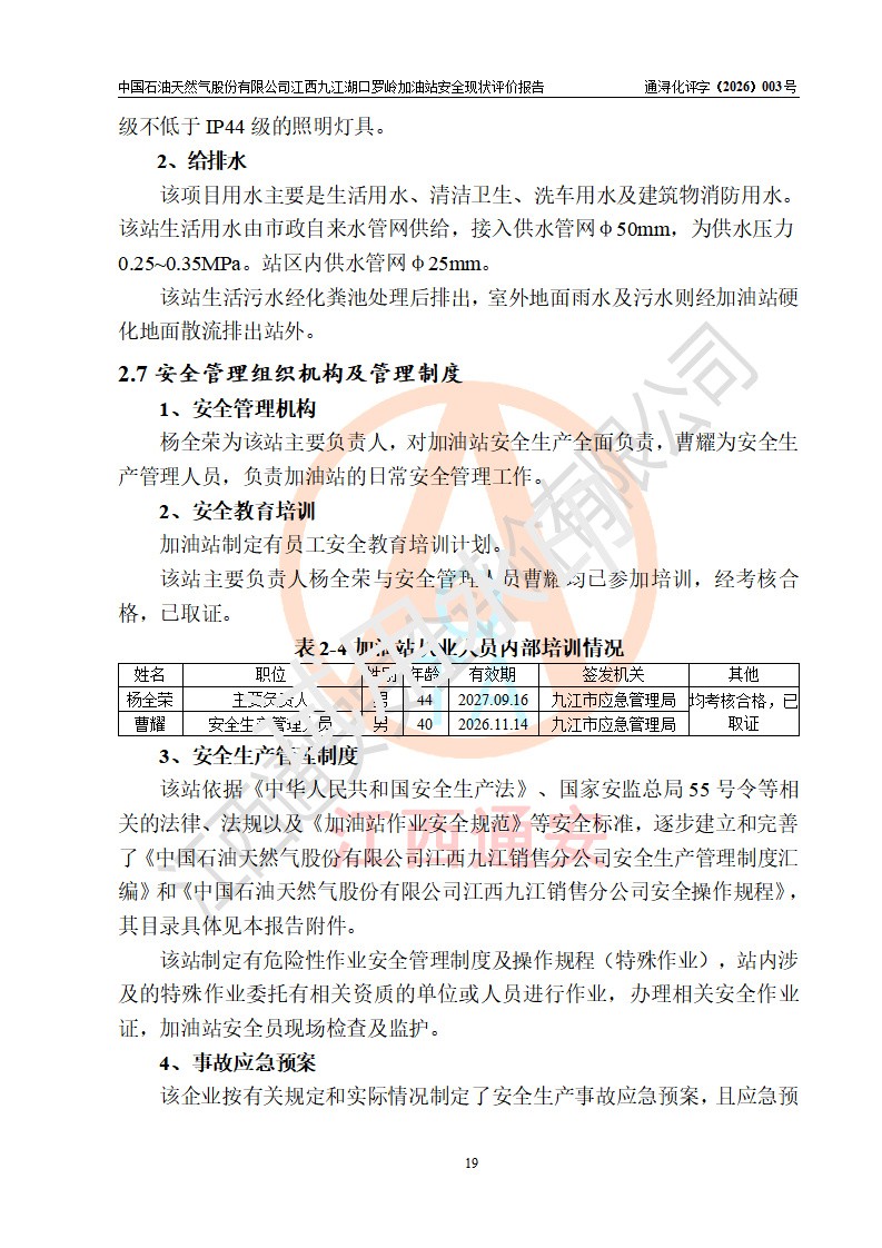 評(píng)價(jià)結(jié)論 | 中國(guó)石油天然氣股份有限公司江西九江湖口羅嶺加油站涉及的安全條件、安全經(jīng)營(yíng)條件、安全生產(chǎn)管理符合《危險(xiǎn)化學(xué)品經(jīng)營(yíng)許可證管理辦法》、《汽車加油加氣加氫站技術(shù)標(biāo)準(zhǔn)》等**有關(guān)法規(guī)、標(biāo)準(zhǔn)、規(guī)范要求,能滿足危險(xiǎn)化學(xué)品經(jīng)營(yíng)安全條件。 | |||