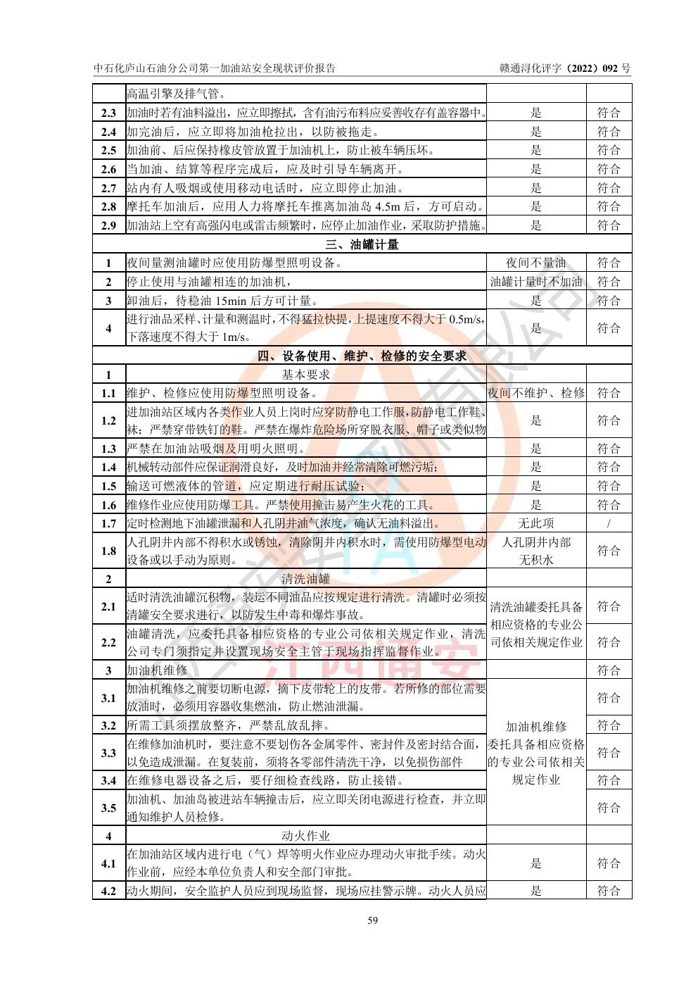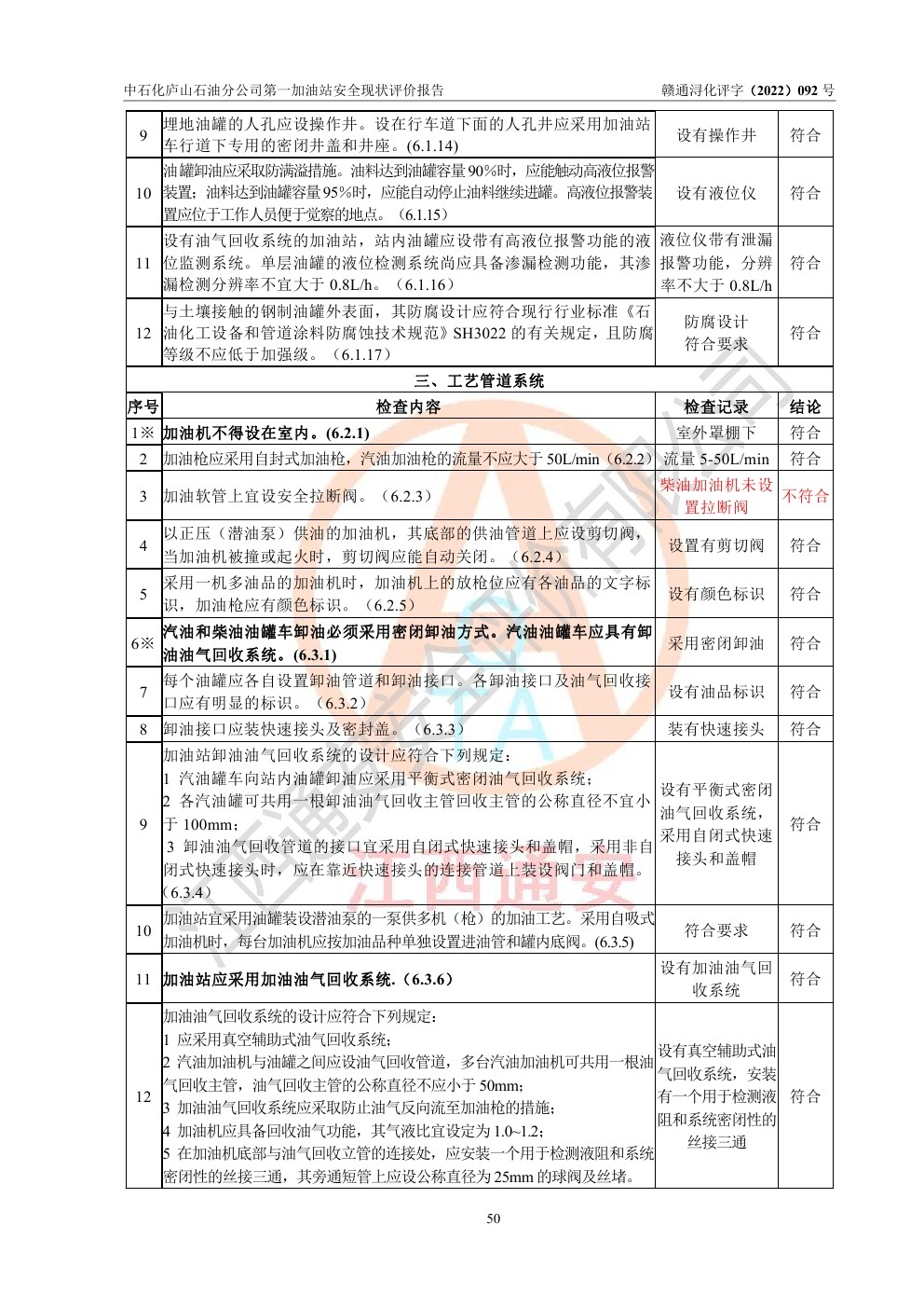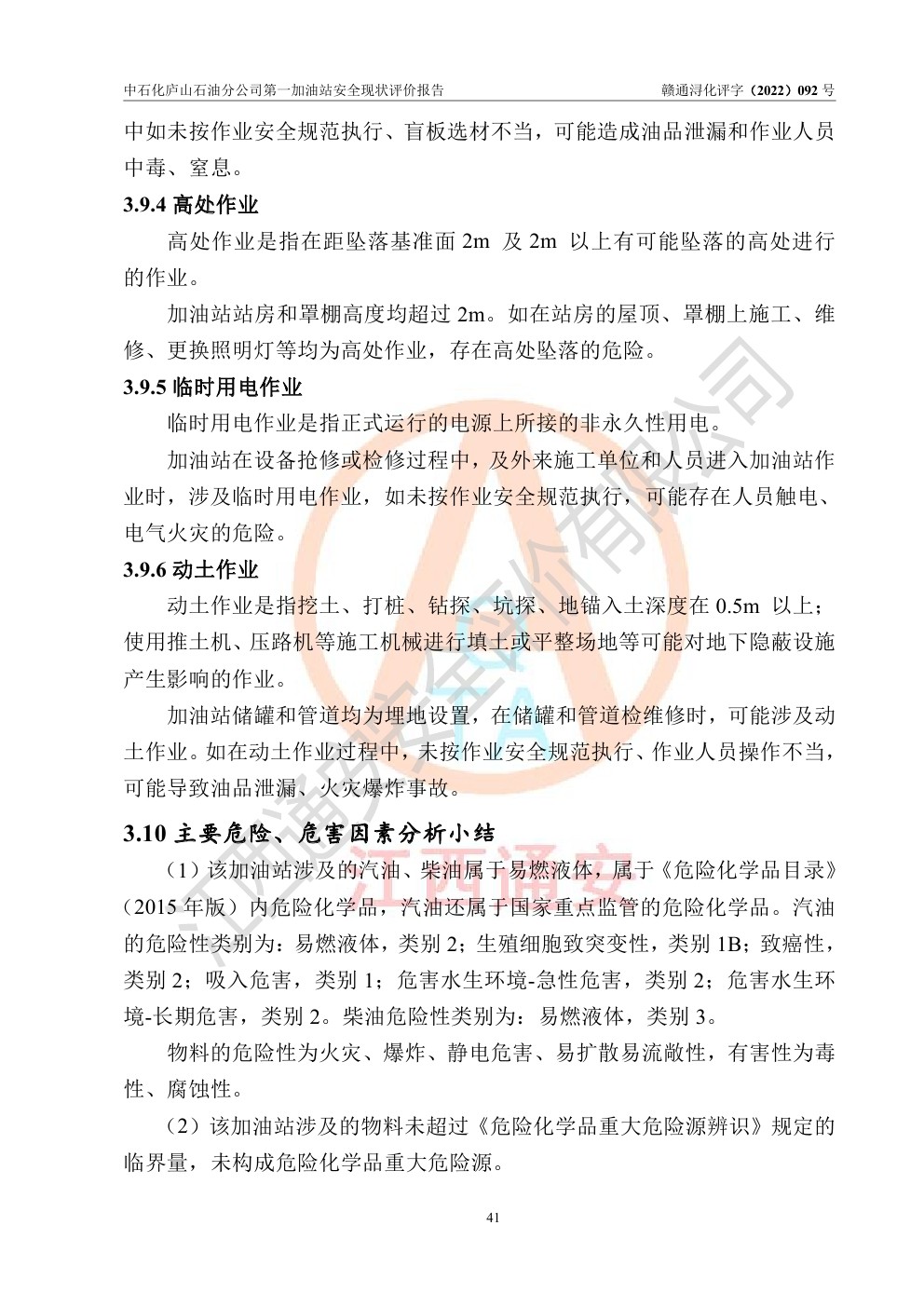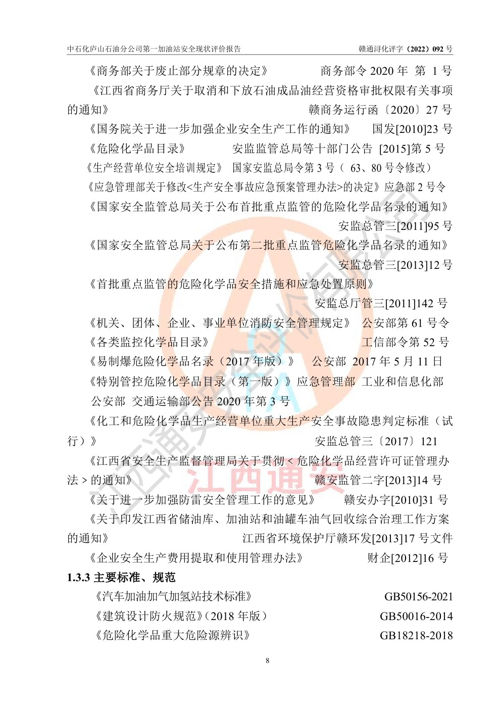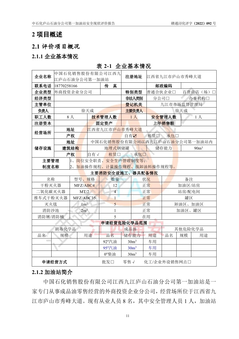 該企業(yè)屬三級加油站,主要從事成品油零售經(jīng)營,經(jīng)營的油品有0#柴油、92#汽油、95#汽油。 該項(xiàng)目為一功能集中的加油站,且設(shè)備設(shè)施集中在站區(qū)內(nèi),根據(jù)空間相對獨(dú)立、事故范圍相對固定、具有明顯特征界限的原則,評價(jià)小組確定將其劃分為一個評價(jià)單元。選擇安全檢查表法和危險(xiǎn)指數(shù)方法進(jìn)行評價(jià)。 1、加油站涉及的汽油、柴油屬于易燃液體,汽油屬于重點(diǎn)監(jiān)管的危險(xiǎn)化學(xué)品;不構(gòu)成《危險(xiǎn)化學(xué)品重大危險(xiǎn)源辨識》規(guī)定危險(xiǎn)化學(xué)品重大危險(xiǎn)源。 2、經(jīng)營過程中存在的主要危險(xiǎn)有:火災(zāi)、爆炸等。 3、中國石化銷售股份有限公司江西九江廬山石油分公司**加油站涉及的安全條件、安全經(jīng)營條件、安全生產(chǎn)管理符合《危險(xiǎn)化學(xué)品經(jīng)營許可證管理辦法》、《汽車加油加氣加氫站技術(shù)標(biāo)準(zhǔn)》等**有關(guān)法規(guī)、標(biāo)準(zhǔn)、規(guī)范要求,能滿足危險(xiǎn)化學(xué)品經(jīng)營安全條件。 |