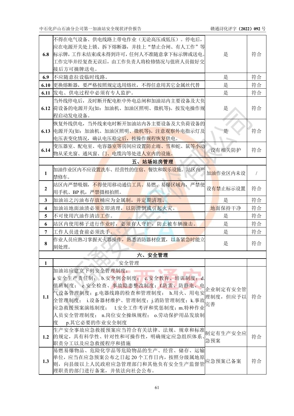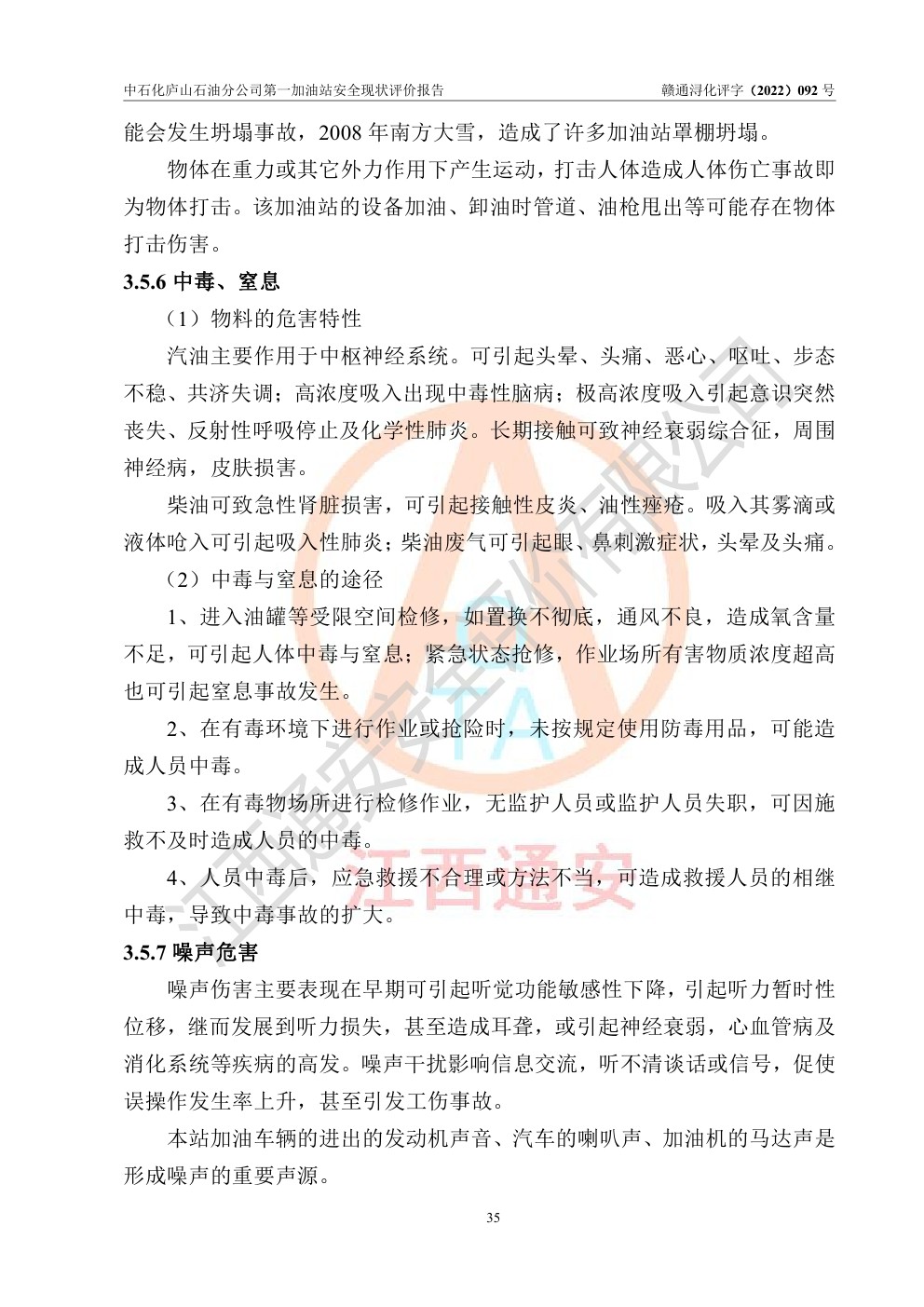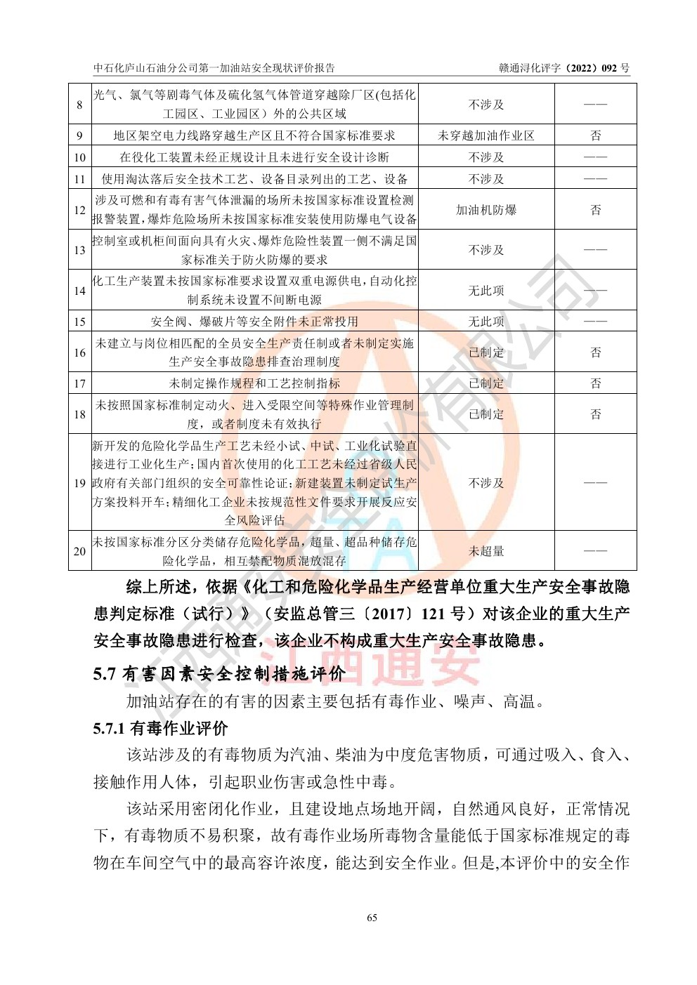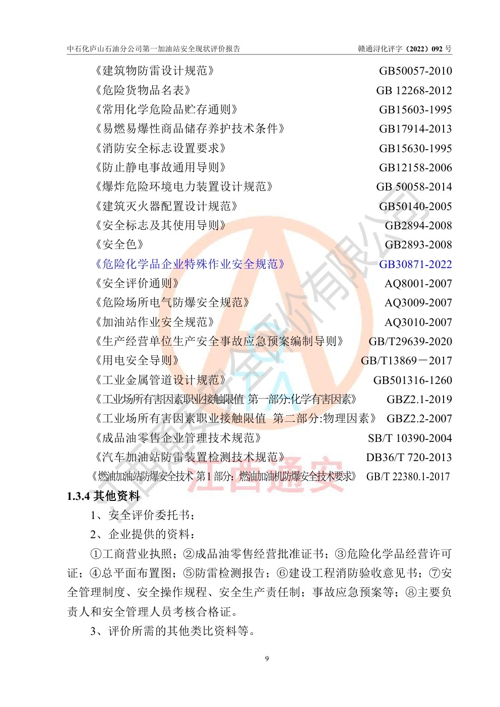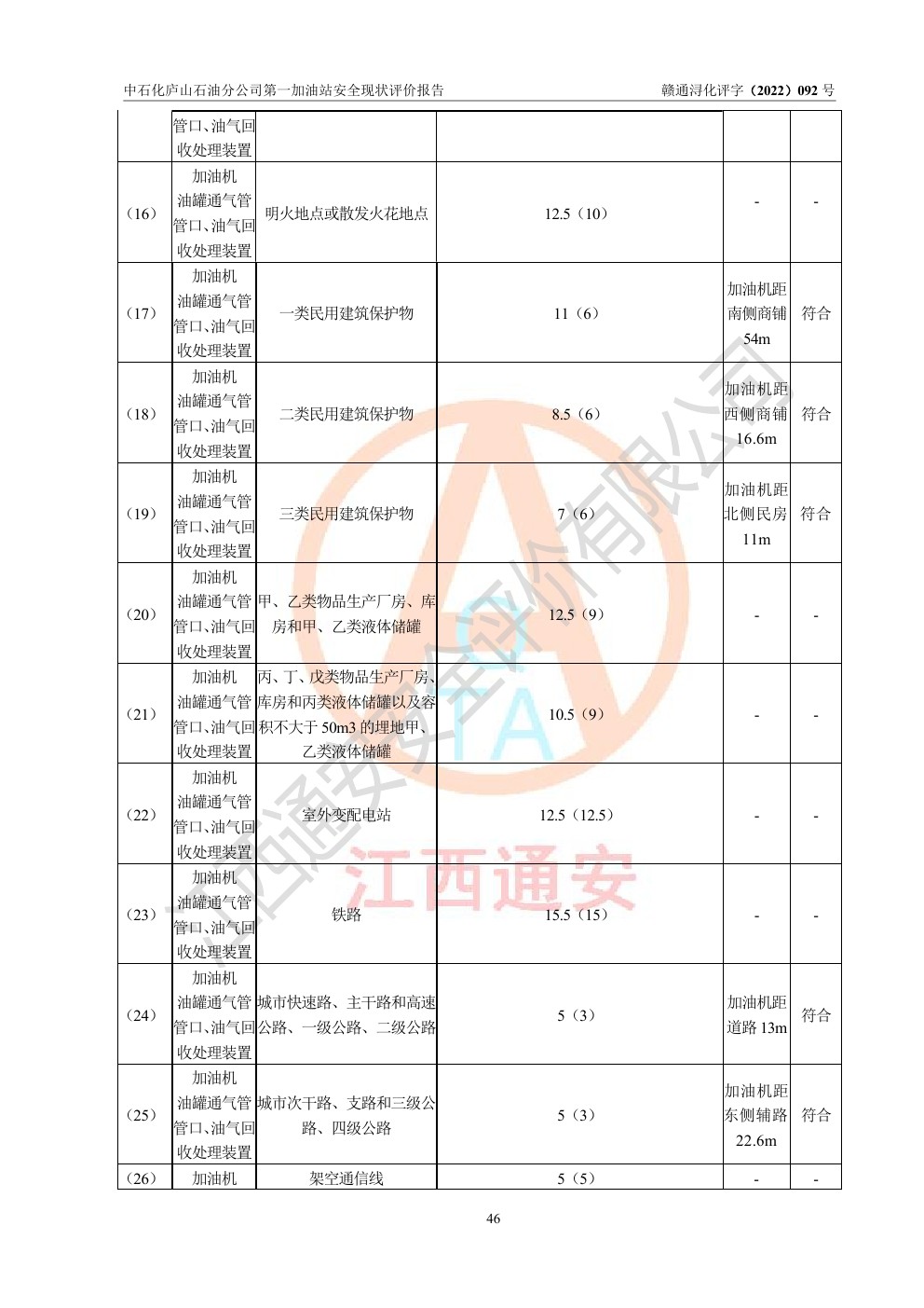該企業(yè)屬三級加油站,主要從事成品油零售經(jīng)營,經(jīng)營的油品有0#柴油、92#汽油、95#汽油。 該項(xiàng)目為一功能集中的加油站,且設(shè)備設(shè)施集中在站區(qū)內(nèi),根據(jù)空間相對獨(dú)立、事故范圍相對固定、具有明顯特征界限的原則,評價(jià)小組確定將其劃分為一個評價(jià)單元。選擇安全檢查表法和危險(xiǎn)指數(shù)方法進(jìn)行評價(jià)。 1、加油站涉及的汽油、柴油屬于易燃液體,汽油屬于重點(diǎn)監(jiān)管的危險(xiǎn)化學(xué)品;不構(gòu)成《危險(xiǎn)化學(xué)品重大危險(xiǎn)源辨識》規(guī)定危險(xiǎn)化學(xué)品重大危險(xiǎn)源。 2、經(jīng)營過程中存在的主要危險(xiǎn)有:火災(zāi)、爆炸等。 3、中國石化銷售股份有限公司江西九江廬山石油分公司**加油站涉及的安全條件、安全經(jīng)營條件、安全生產(chǎn)管理符合《危險(xiǎn)化學(xué)品經(jīng)營許可證管理辦法》、《汽車加油加氣加氫站技術(shù)標(biāo)準(zhǔn)》等**有關(guān)法規(guī)、標(biāo)準(zhǔn)、規(guī)范要求,能滿足危險(xiǎn)化學(xué)品經(jīng)營安全條件。 |