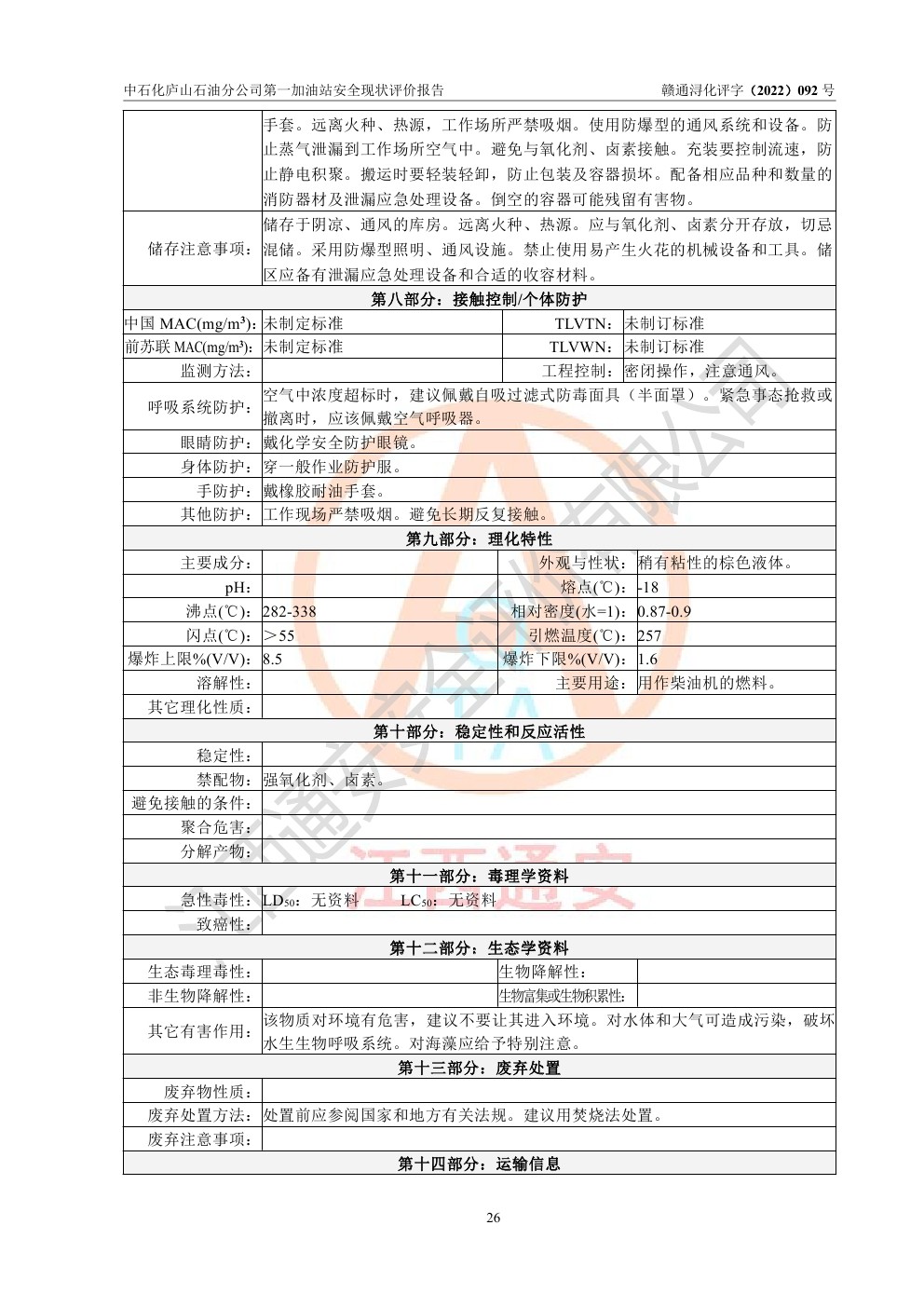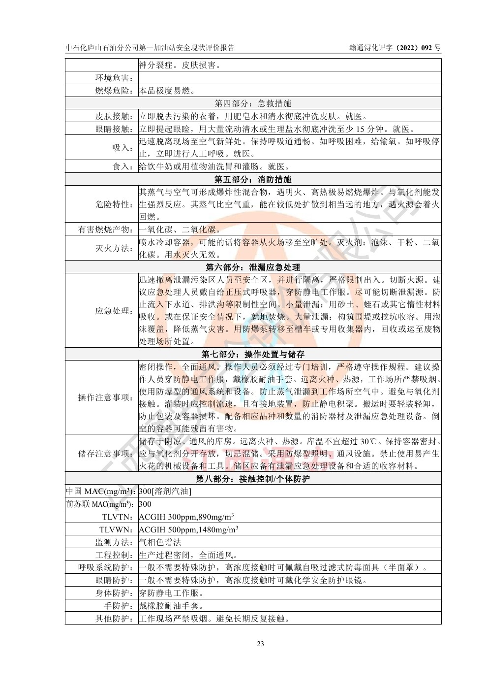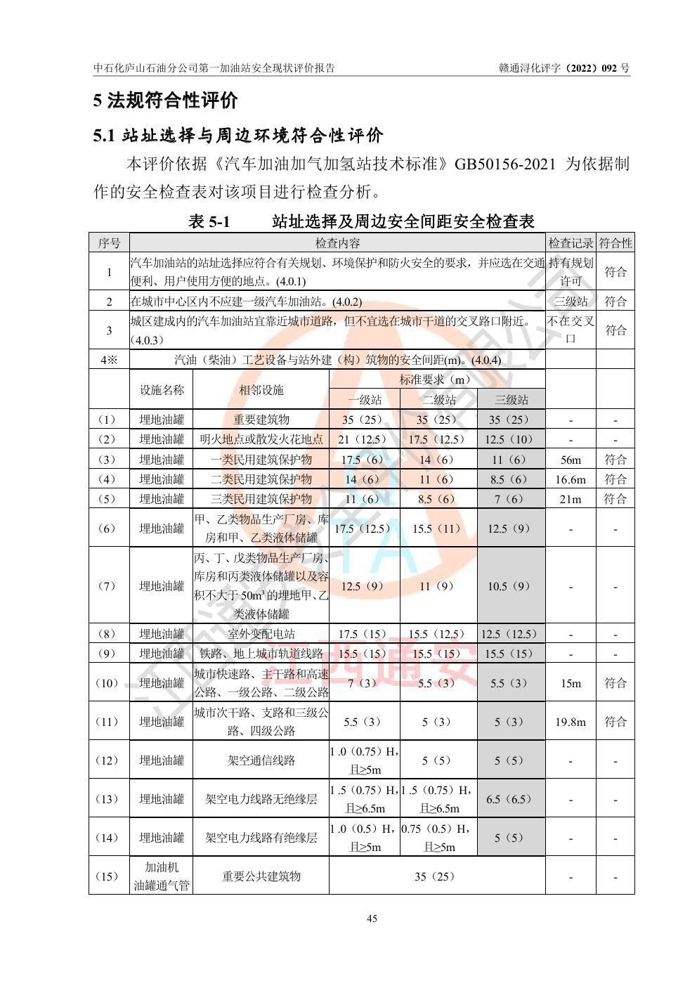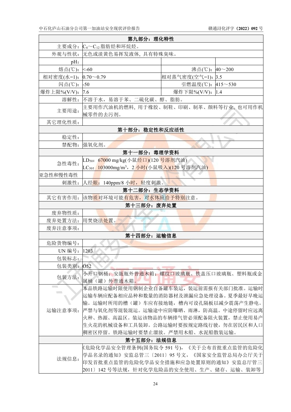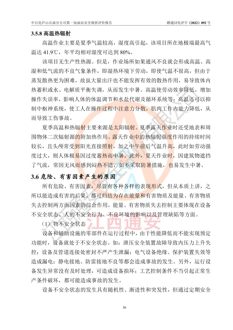 該企業(yè)屬三級加油站,主要從事成品油零售經(jīng)營,經(jīng)營的油品有0#柴油、92#汽油、95#汽油。 該項(xiàng)目為一功能集中的加油站,且設(shè)備設(shè)施集中在站區(qū)內(nèi),根據(jù)空間相對獨(dú)立、事故范圍相對固定、具有明顯特征界限的原則,評價(jià)小組確定將其劃分為一個評價(jià)單元。選擇安全檢查表法和危險(xiǎn)指數(shù)方法進(jìn)行評價(jià)。 1、加油站涉及的汽油、柴油屬于易燃液體,汽油屬于重點(diǎn)監(jiān)管的危險(xiǎn)化學(xué)品;不構(gòu)成《危險(xiǎn)化學(xué)品重大危險(xiǎn)源辨識》規(guī)定危險(xiǎn)化學(xué)品重大危險(xiǎn)源。 2、經(jīng)營過程中存在的主要危險(xiǎn)有:火災(zāi)、爆炸等。 3、中國石化銷售股份有限公司江西九江廬山石油分公司**加油站涉及的安全條件、安全經(jīng)營條件、安全生產(chǎn)管理符合《危險(xiǎn)化學(xué)品經(jīng)營許可證管理辦法》、《汽車加油加氣加氫站技術(shù)標(biāo)準(zhǔn)》等**有關(guān)法規(guī)、標(biāo)準(zhǔn)、規(guī)范要求,能滿足危險(xiǎn)化學(xué)品經(jīng)營安全條件。 |