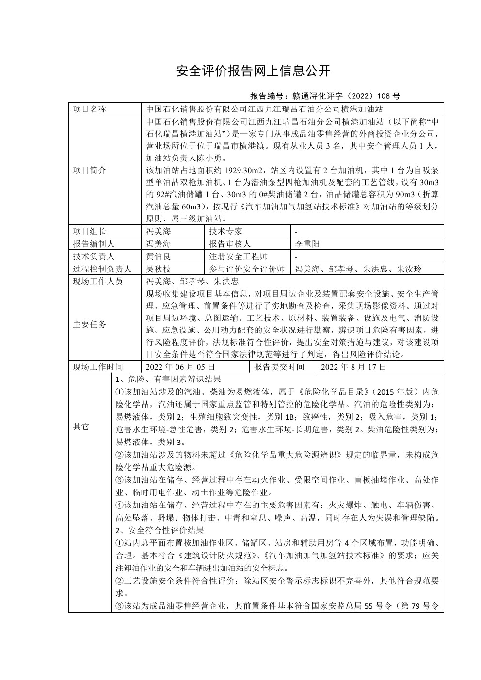 中石化瑞昌橫港加油站網(wǎng)上信息公開(kāi)內(nèi)容