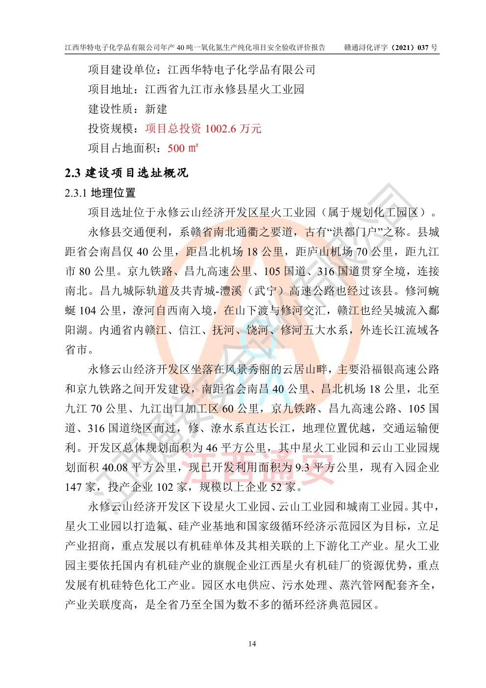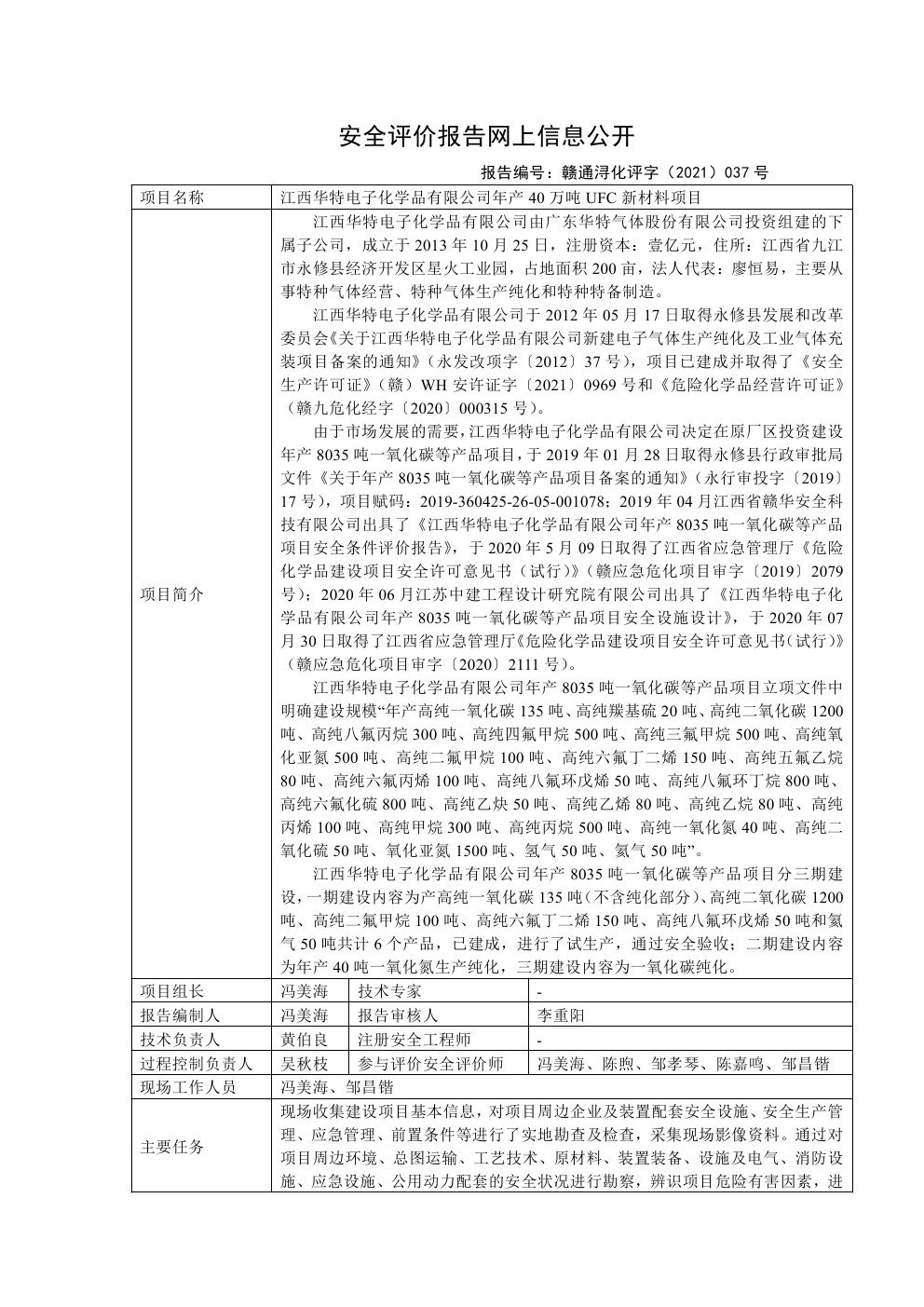 江西華特電子化學(xué)品有限公司年產(chǎn)40萬(wàn)噸UFC新材料項(xiàng)目