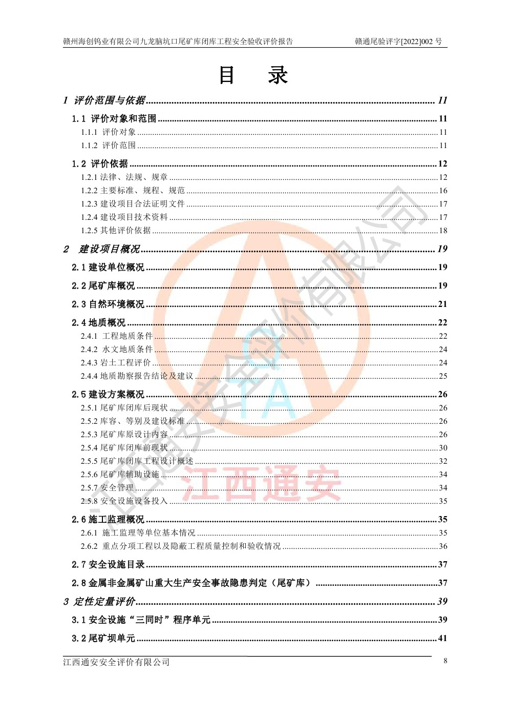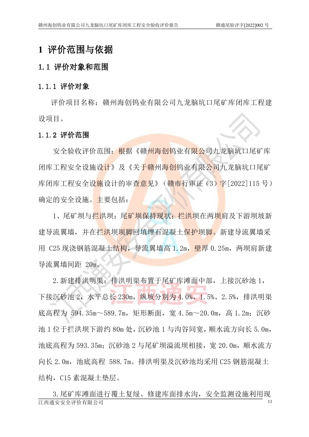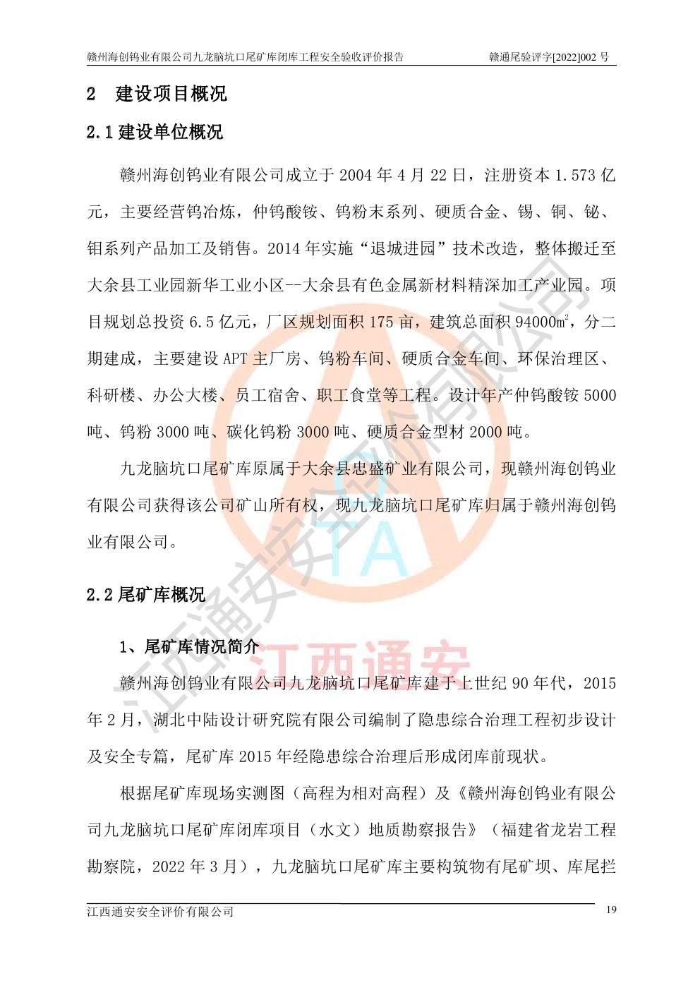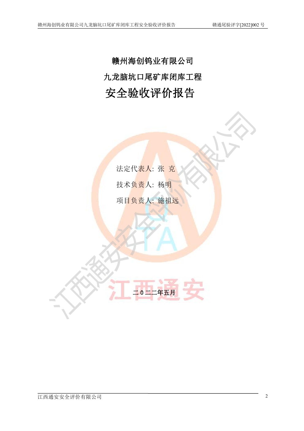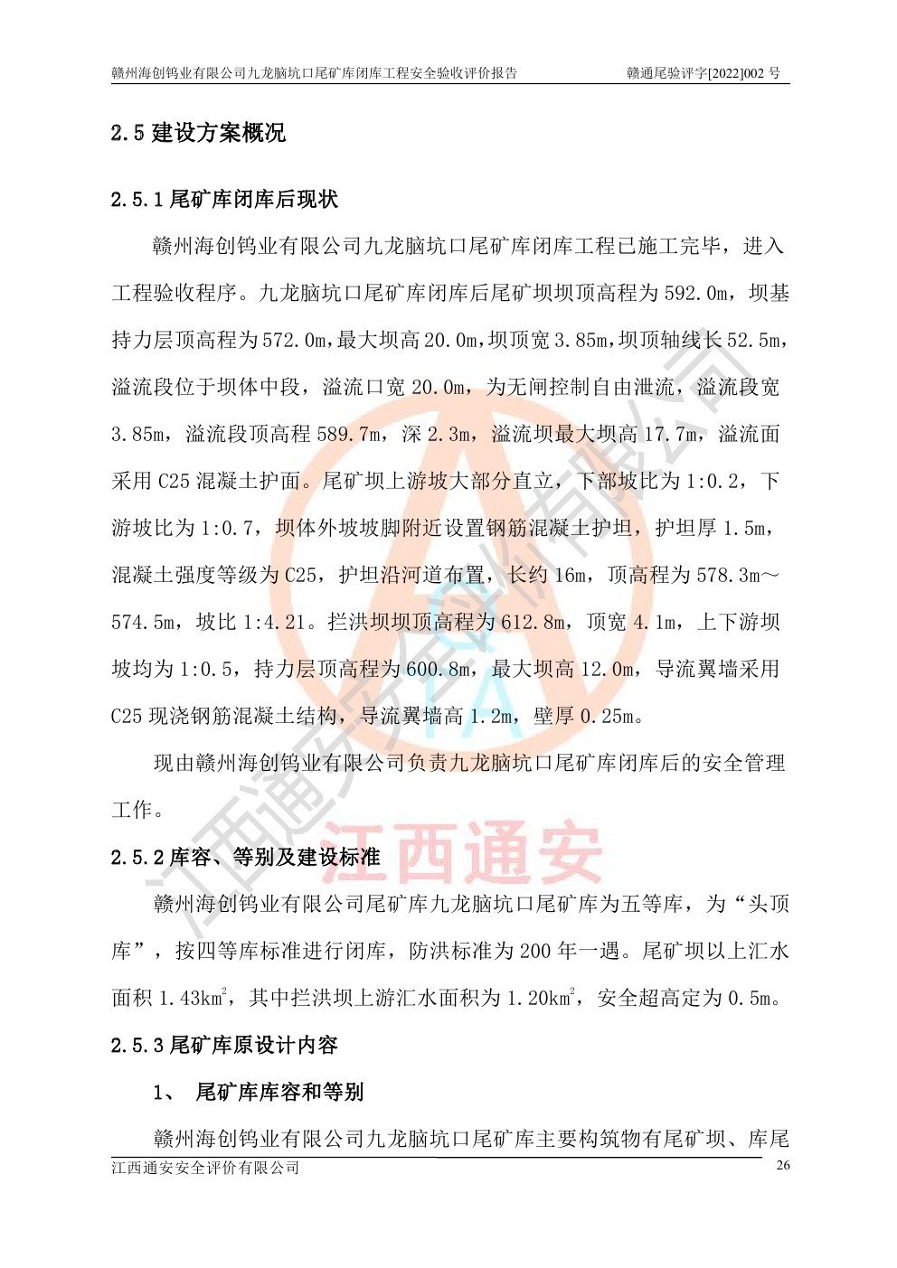 贛州海創(chuàng)鎢業(yè)有限公司九龍腦坑口尾礦庫閉庫工程安全驗(yàn)收評(píng)價(jià)報(bào)告