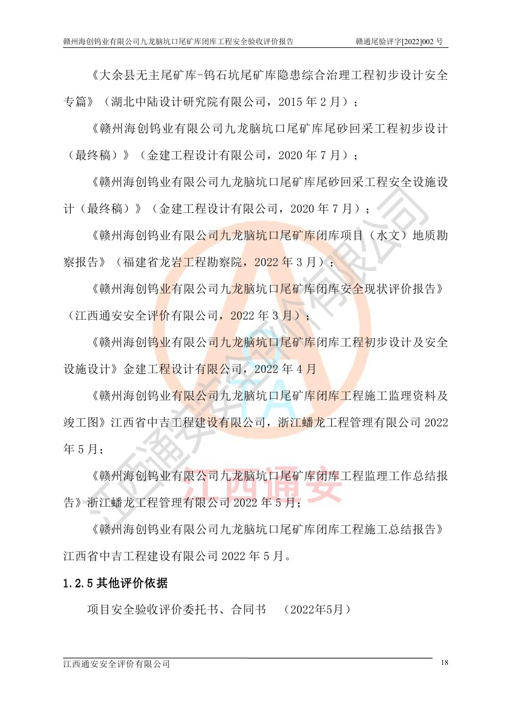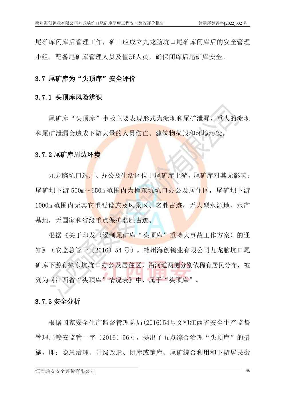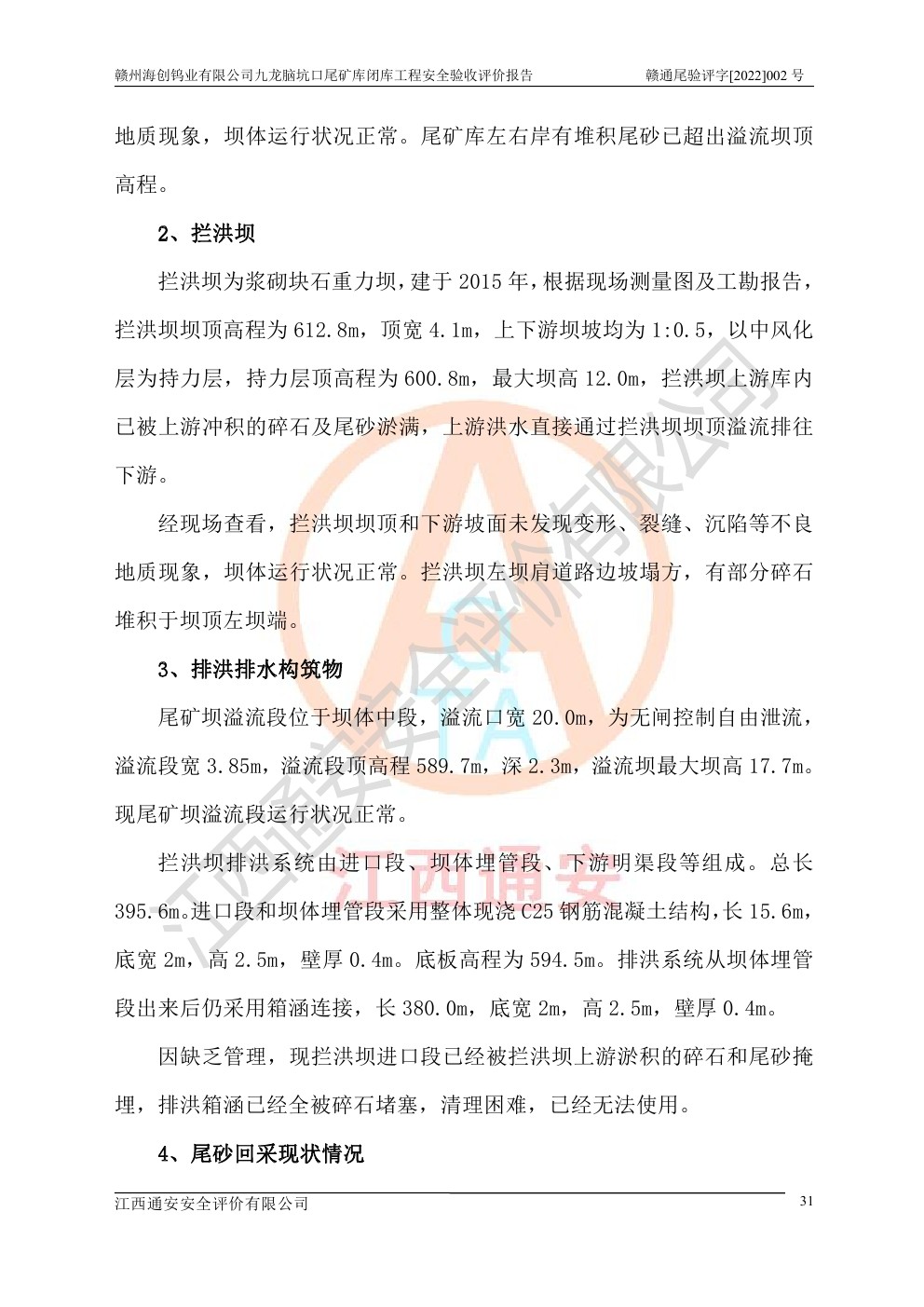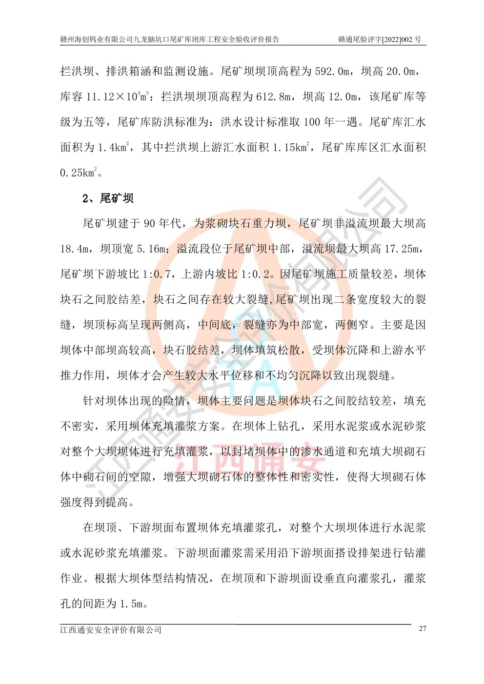 贛州海創(chuàng)鎢業(yè)有限公司九龍腦坑口尾礦庫閉庫工程安全驗(yàn)收評(píng)價(jià)報(bào)告