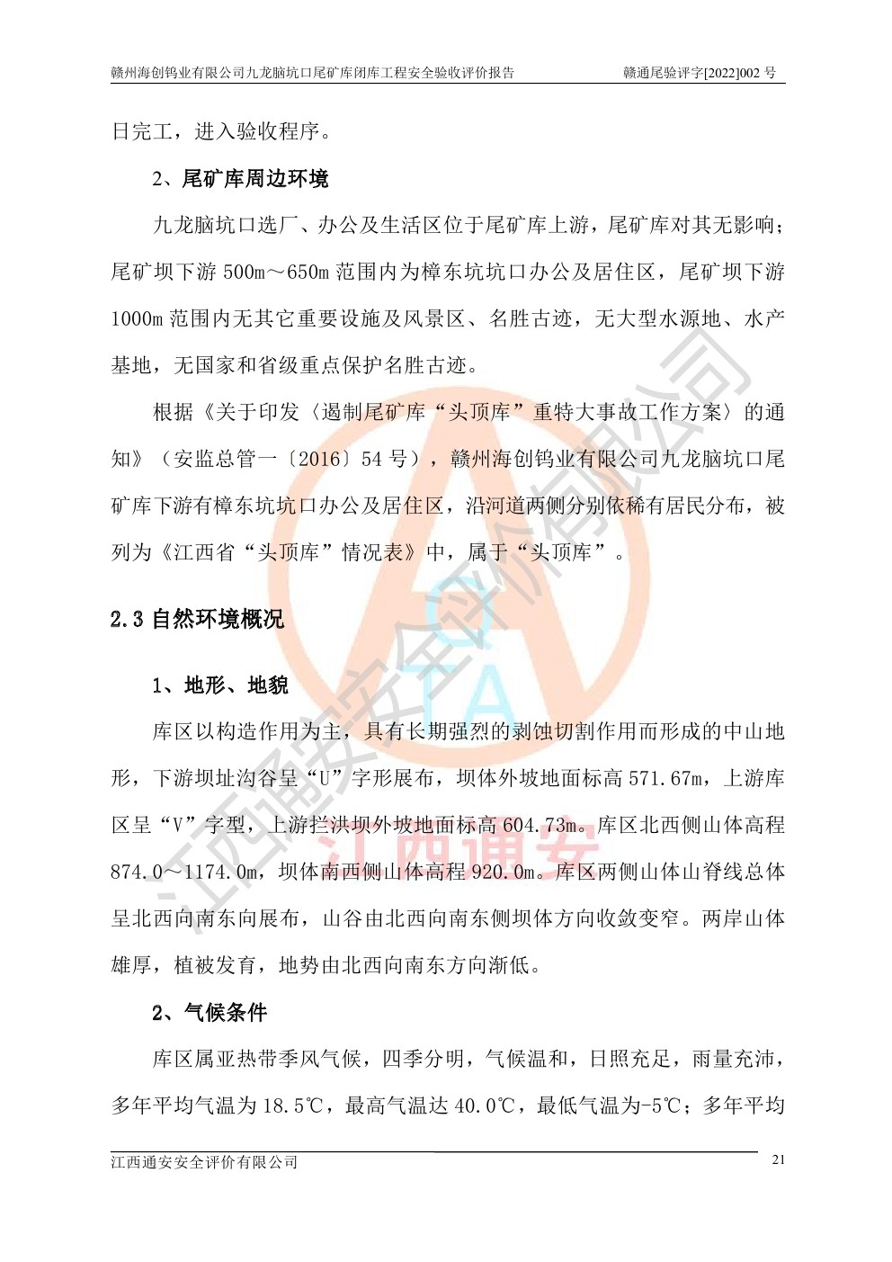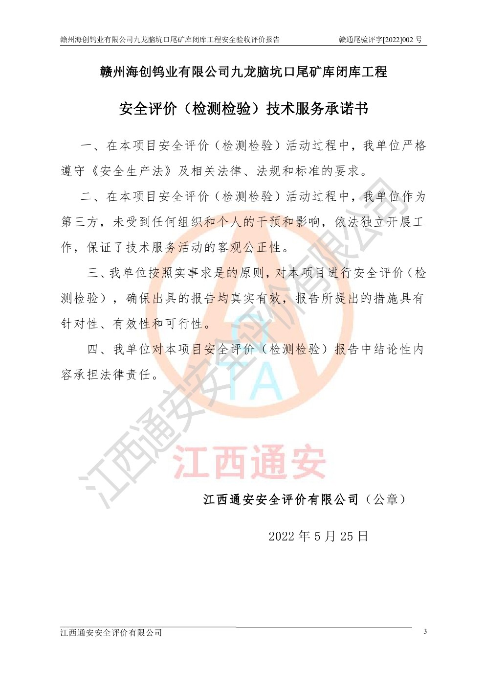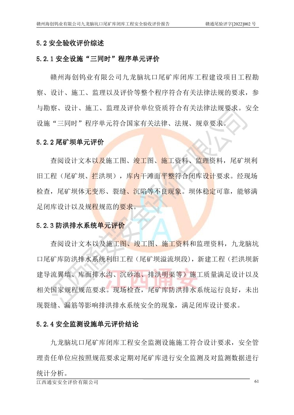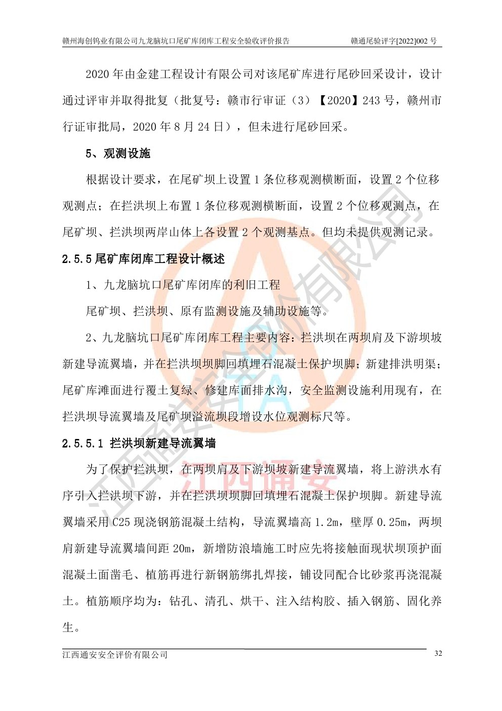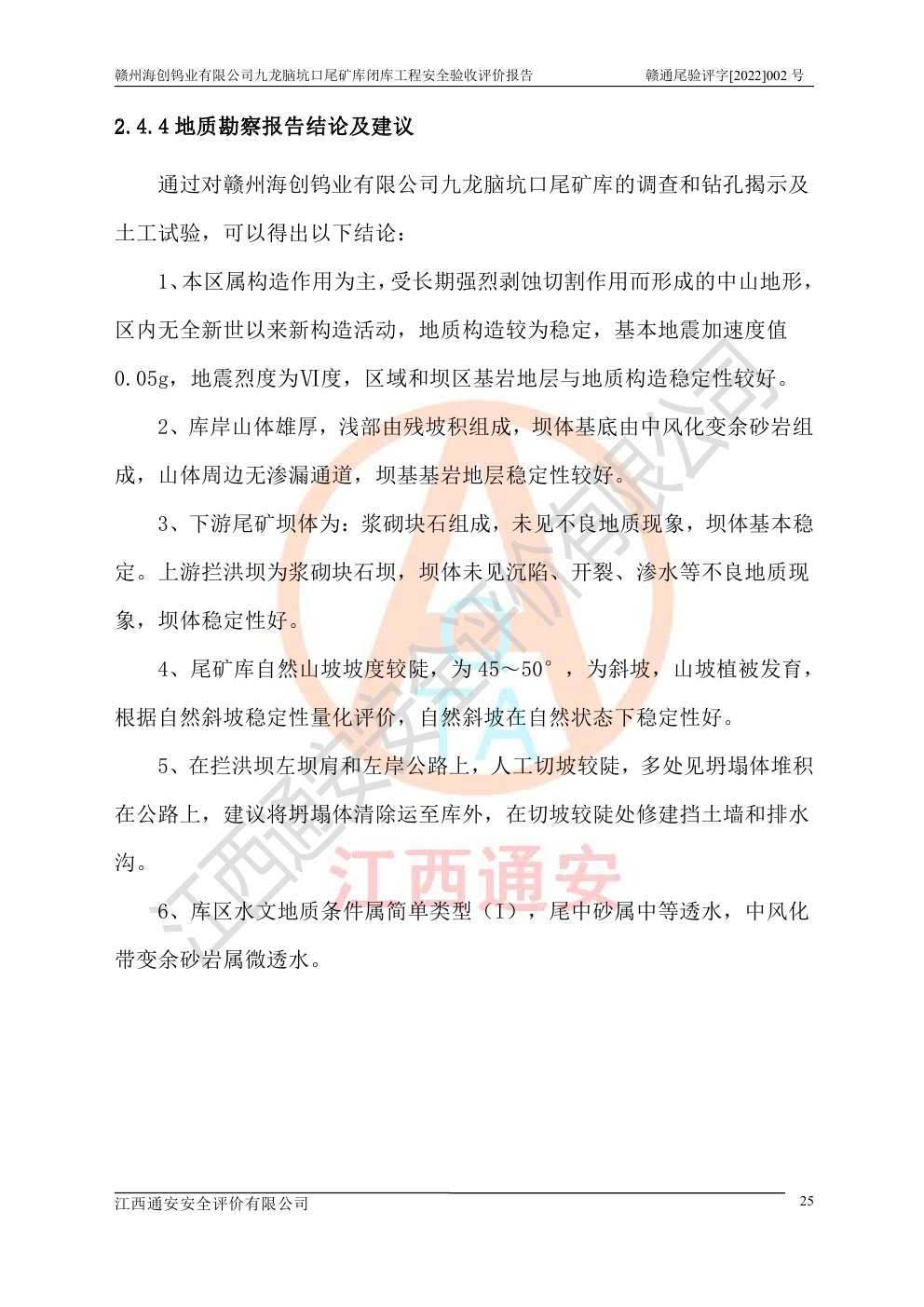 贛州海創(chuàng)鎢業(yè)有限公司九龍腦坑口尾礦庫閉庫工程安全驗(yàn)收評(píng)價(jià)報(bào)告