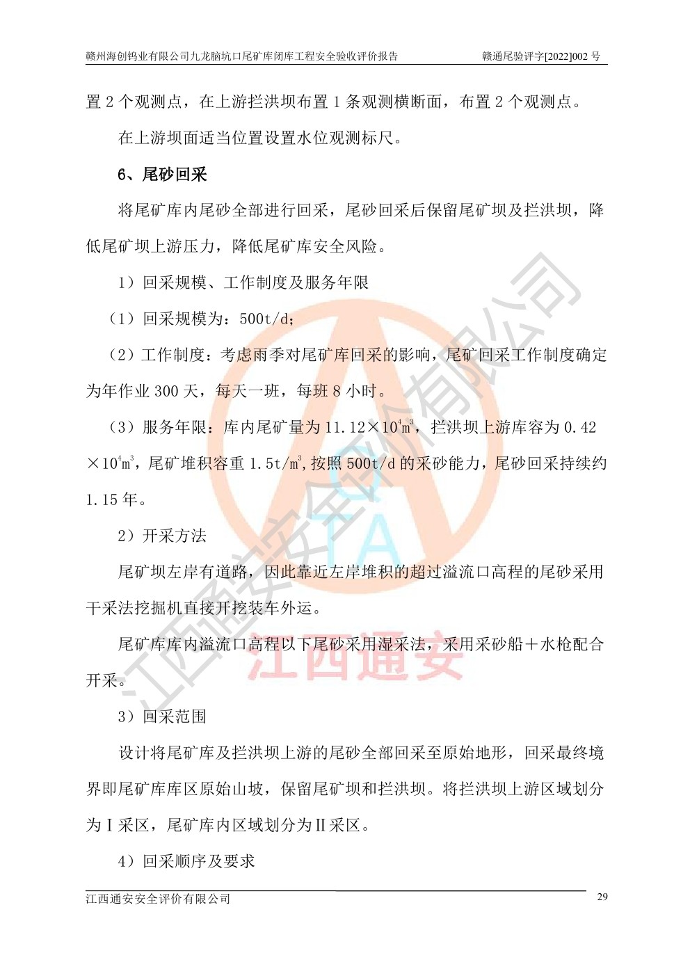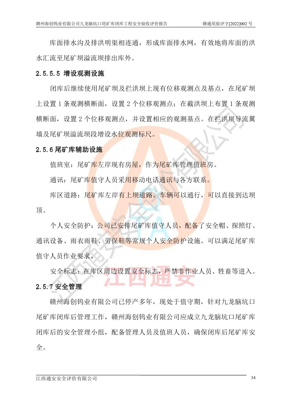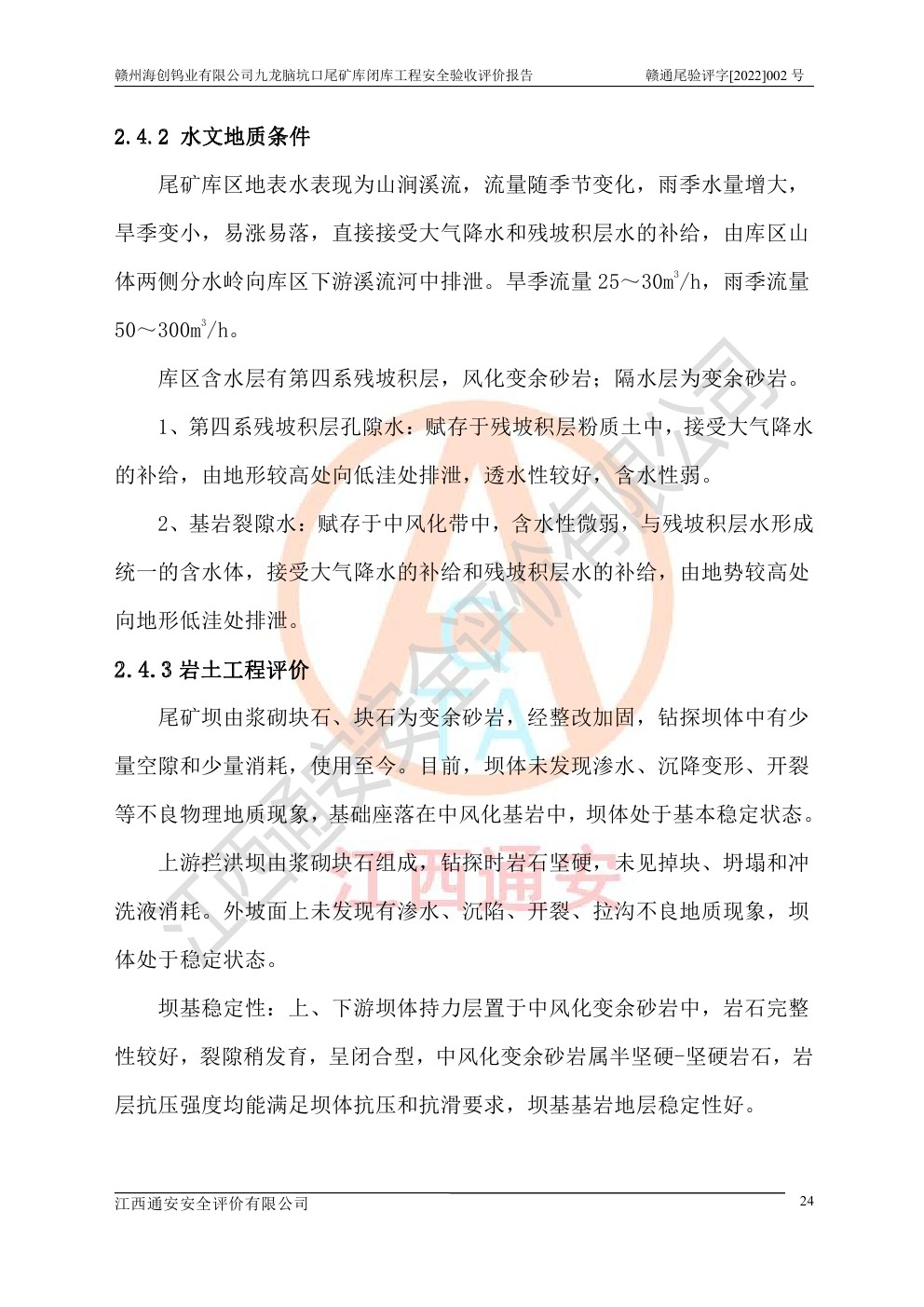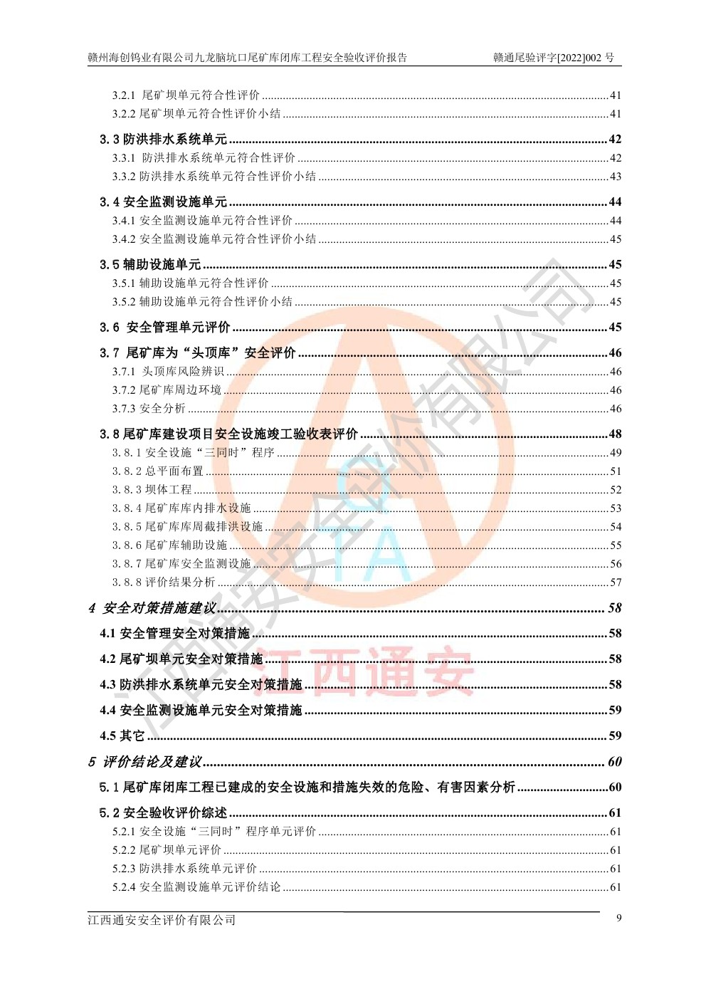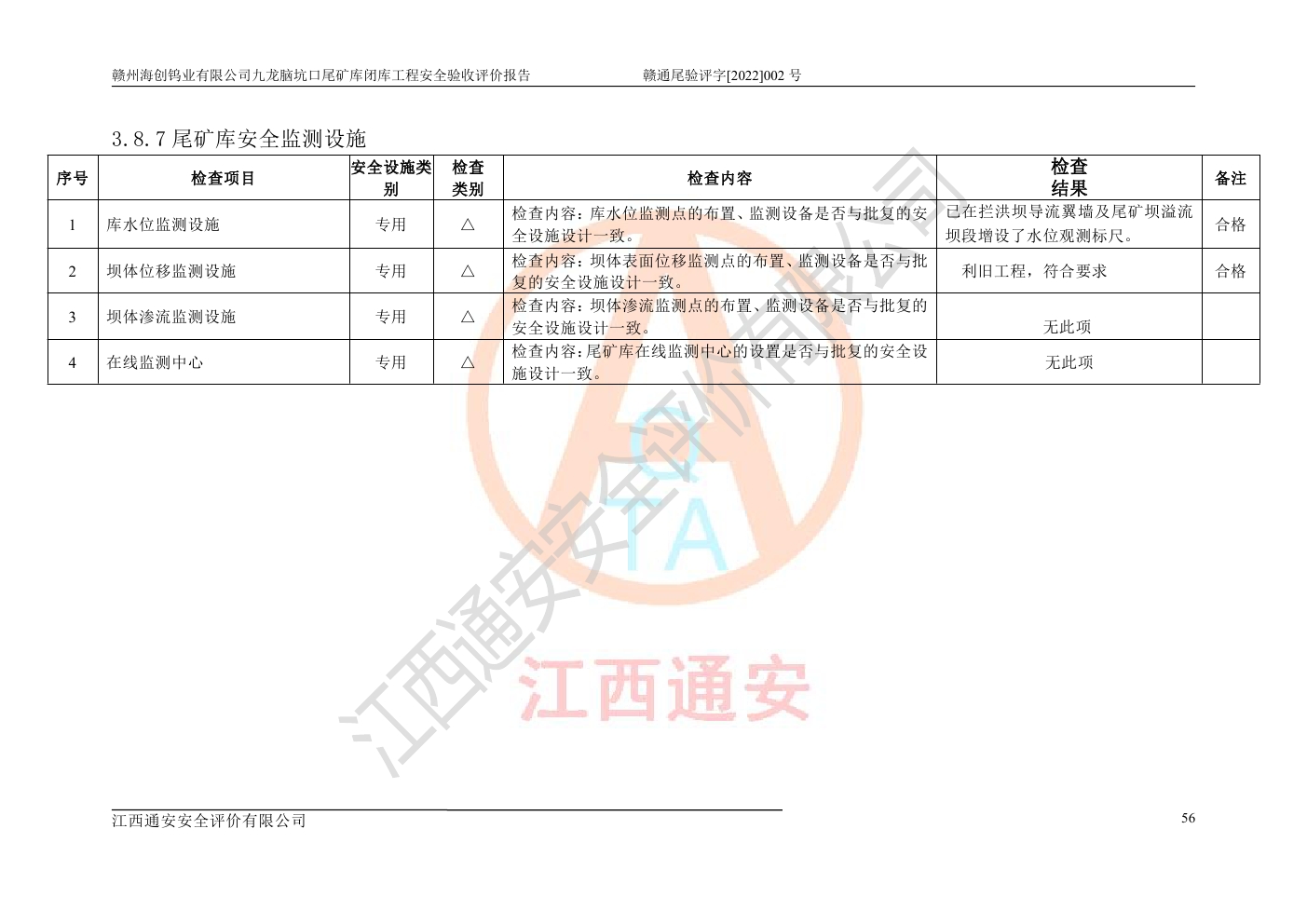 贛州海創(chuàng)鎢業(yè)有限公司九龍腦坑口尾礦庫閉庫工程安全驗(yàn)收評(píng)價(jià)報(bào)告