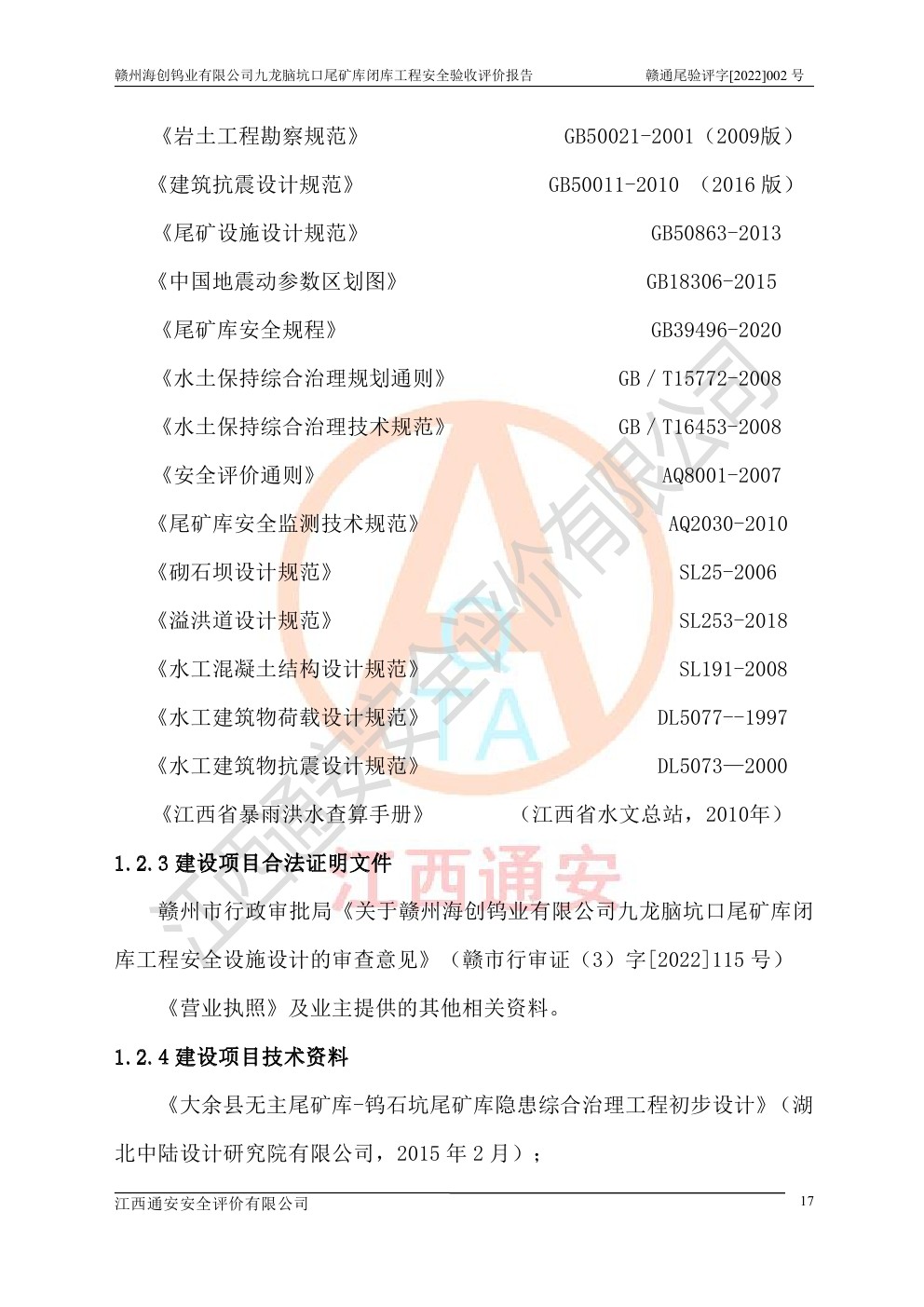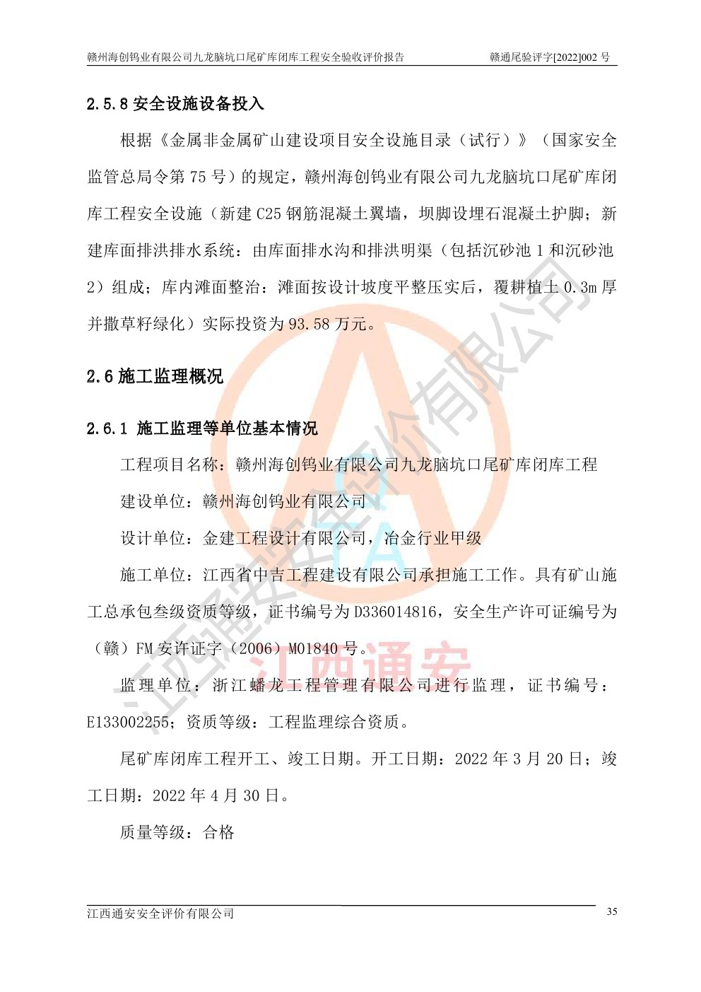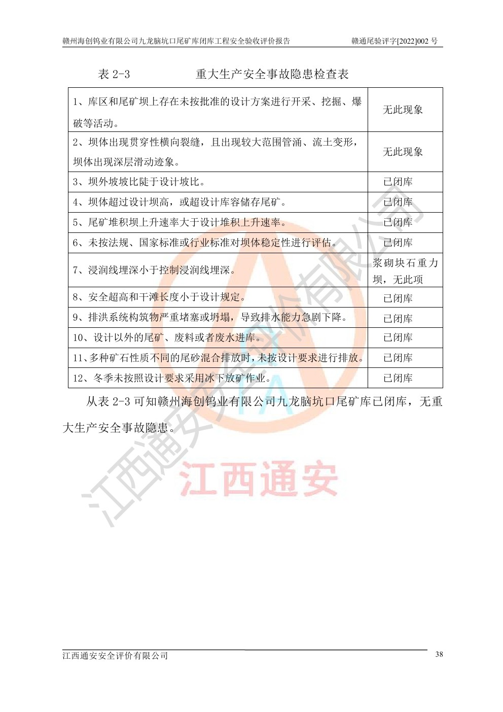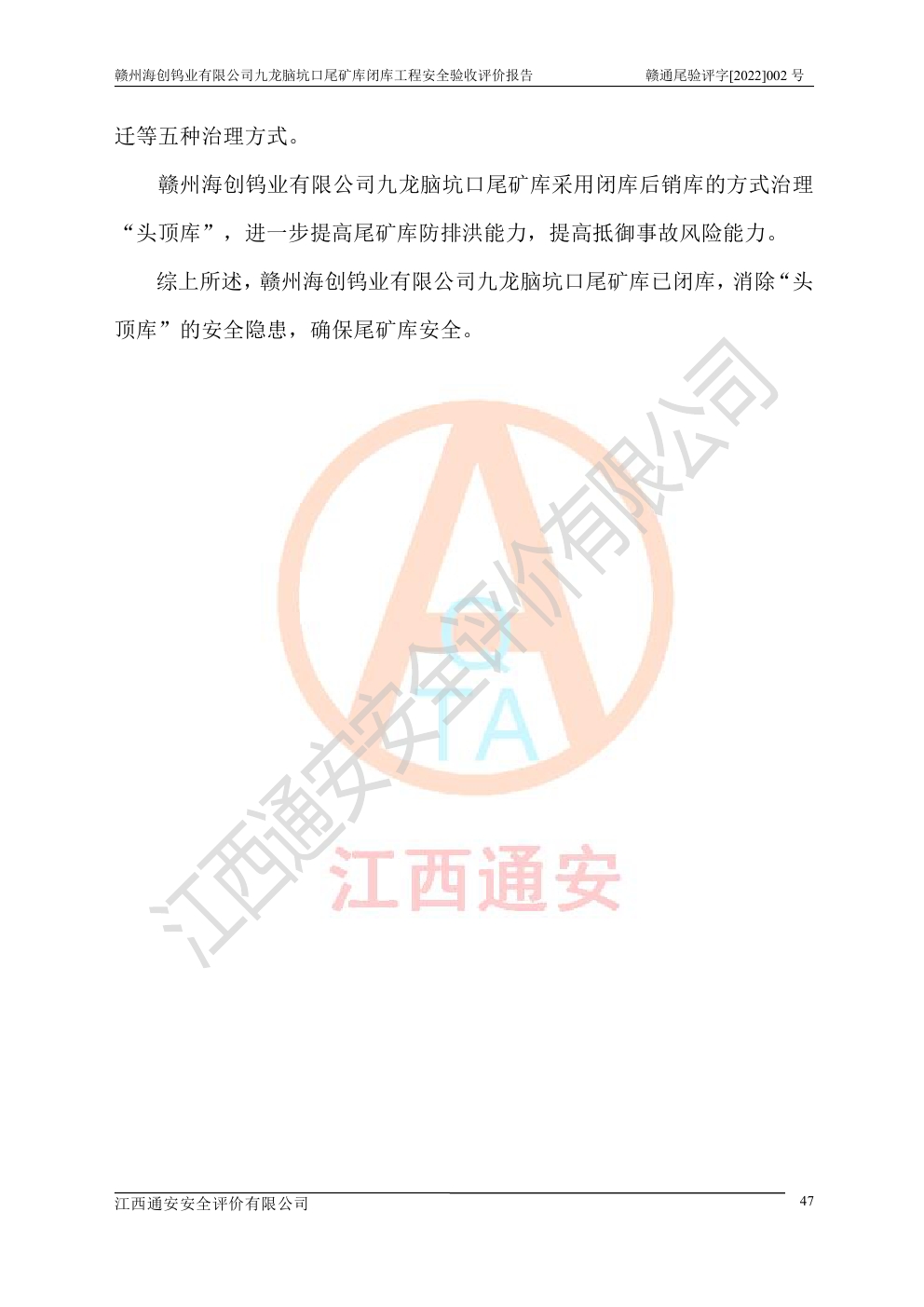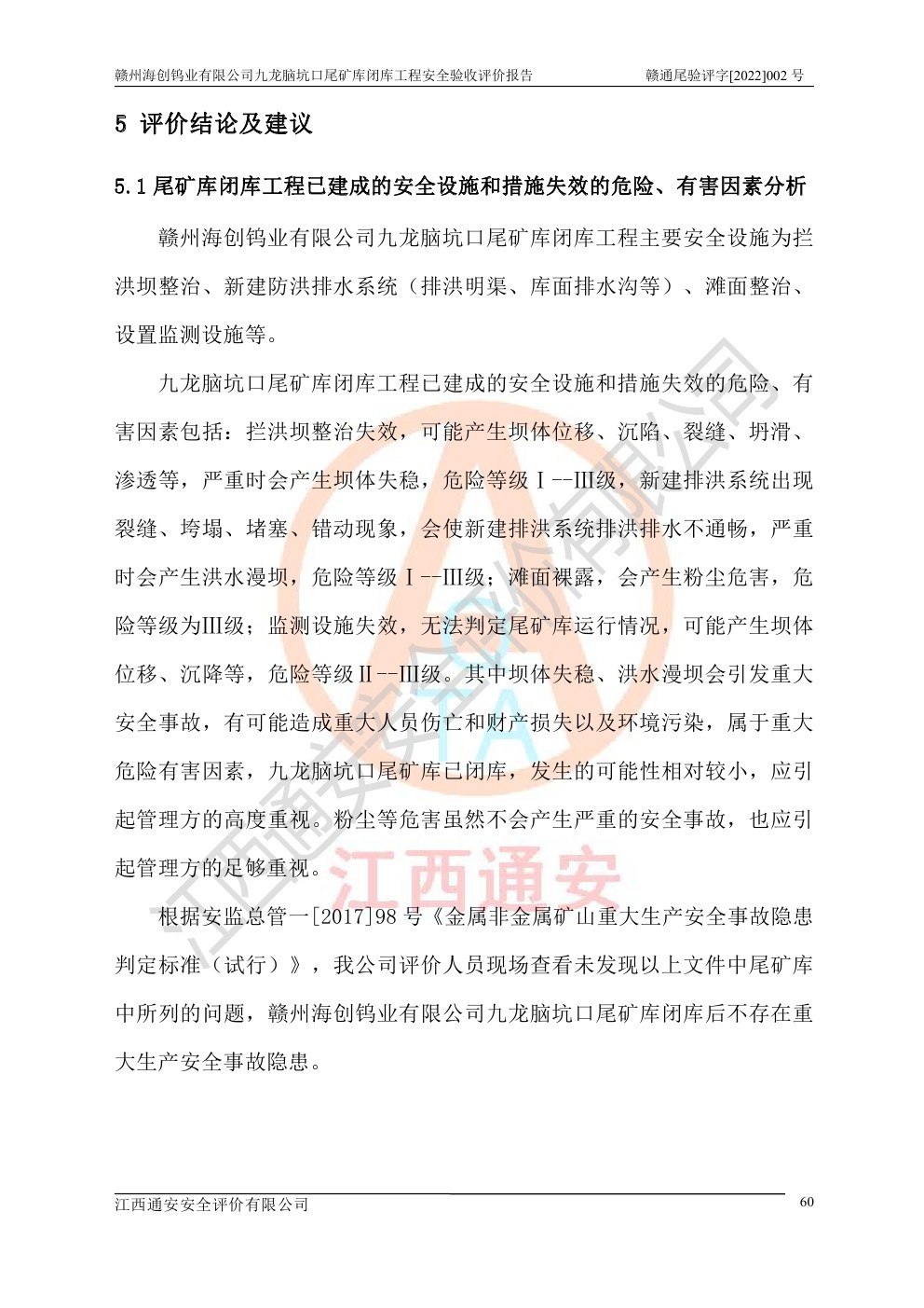 贛州海創(chuàng)鎢業(yè)有限公司九龍腦坑口尾礦庫閉庫工程安全驗(yàn)收評(píng)價(jià)報(bào)告