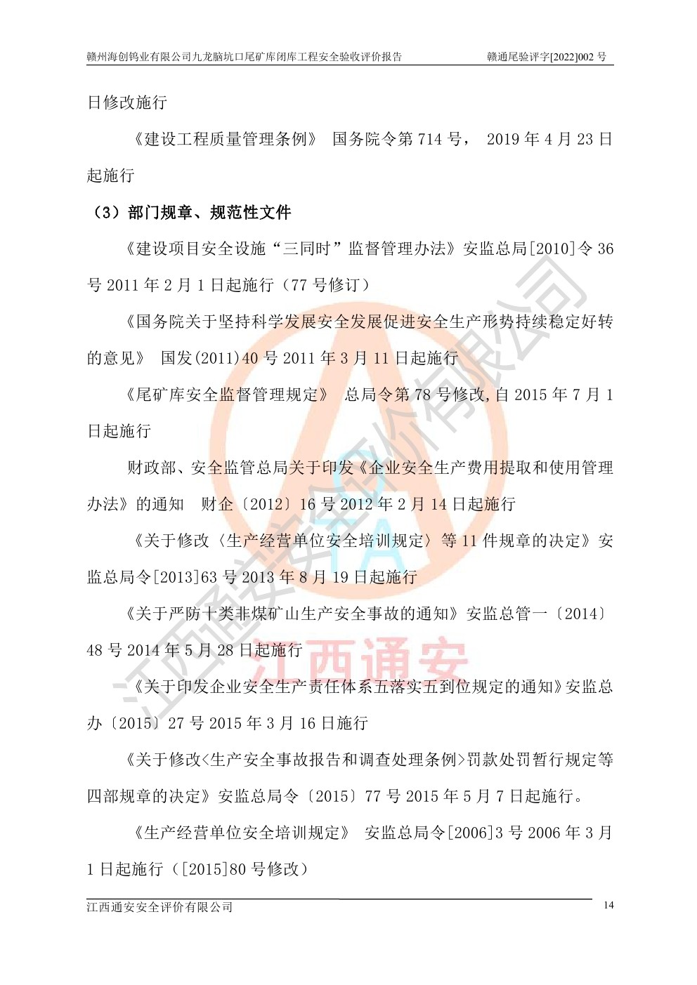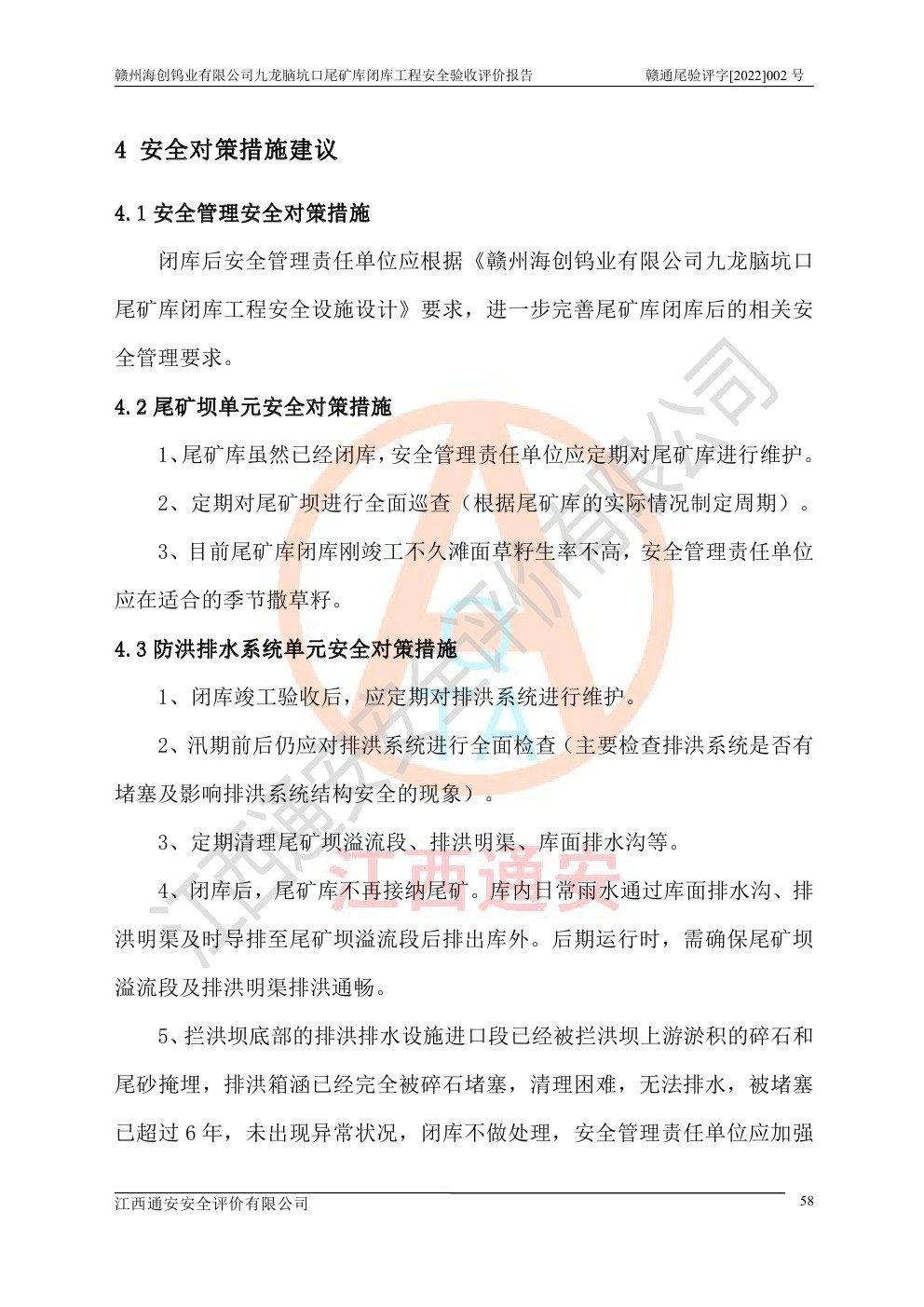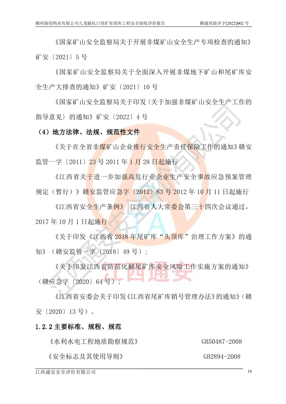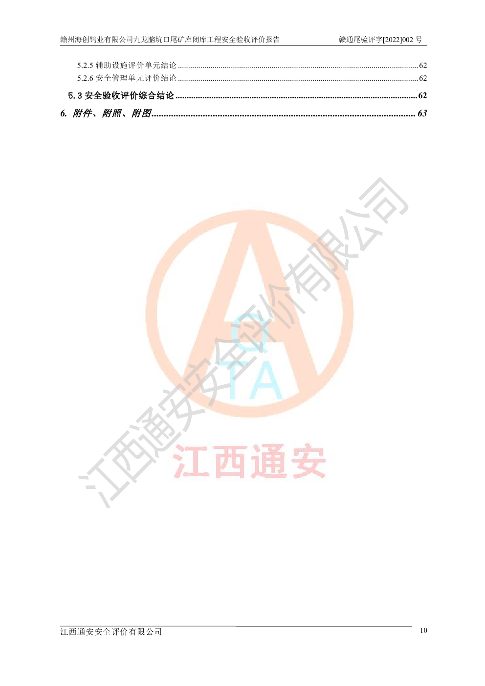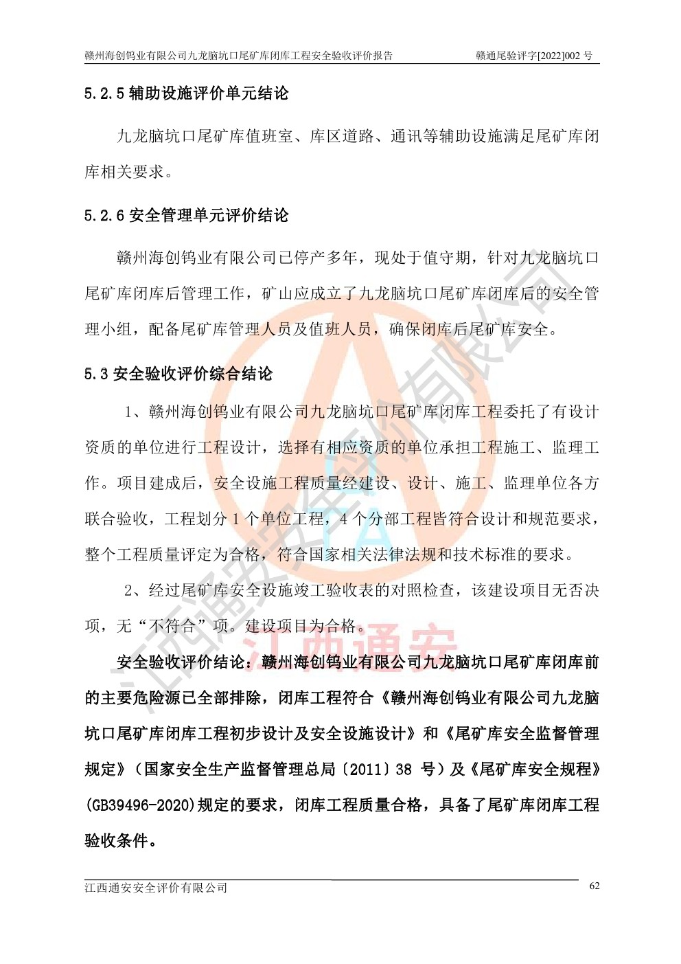 贛州海創(chuàng)鎢業(yè)有限公司九龍腦坑口尾礦庫閉庫工程安全驗(yàn)收評(píng)價(jià)報(bào)告
