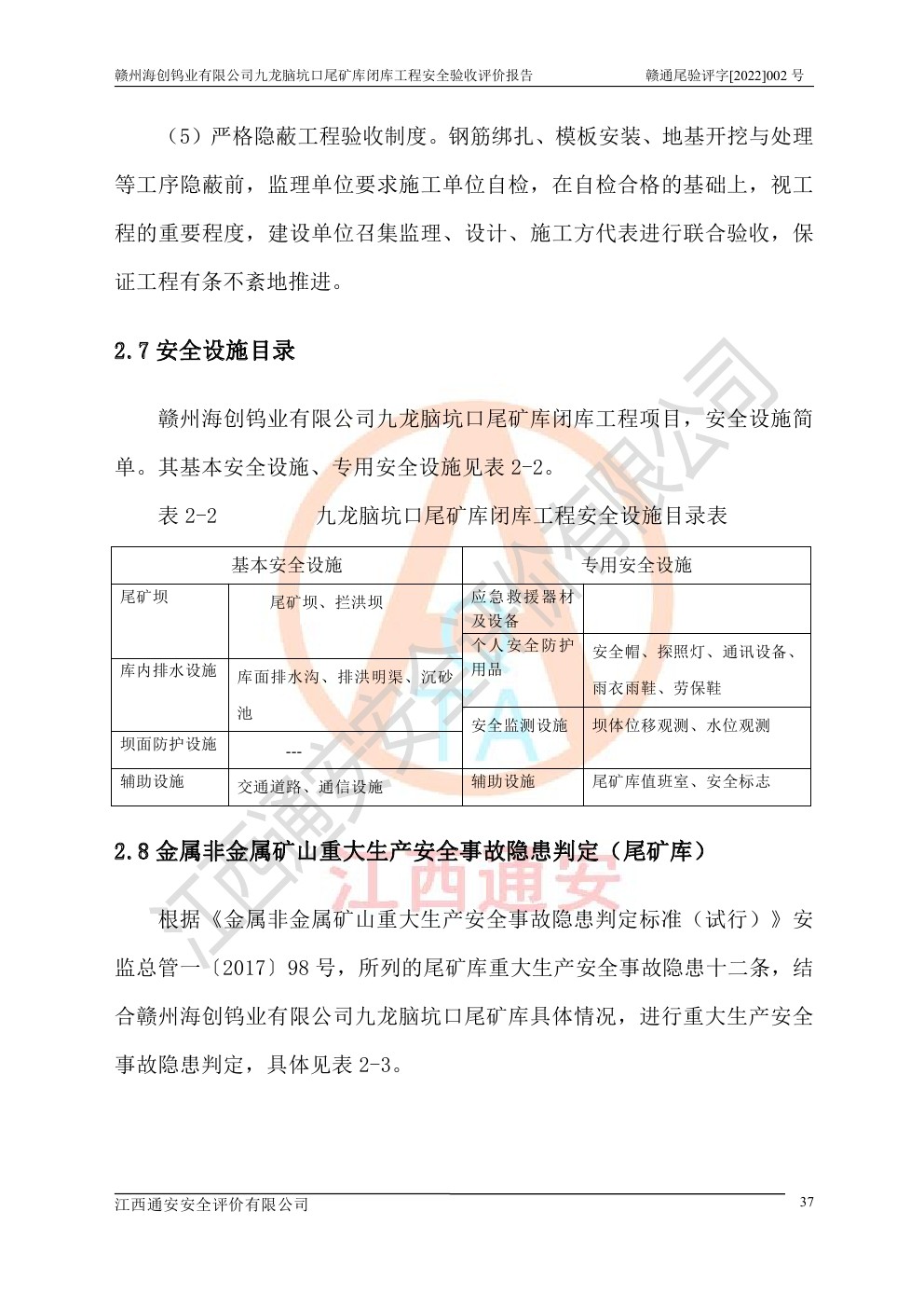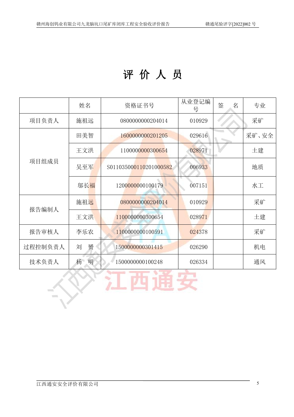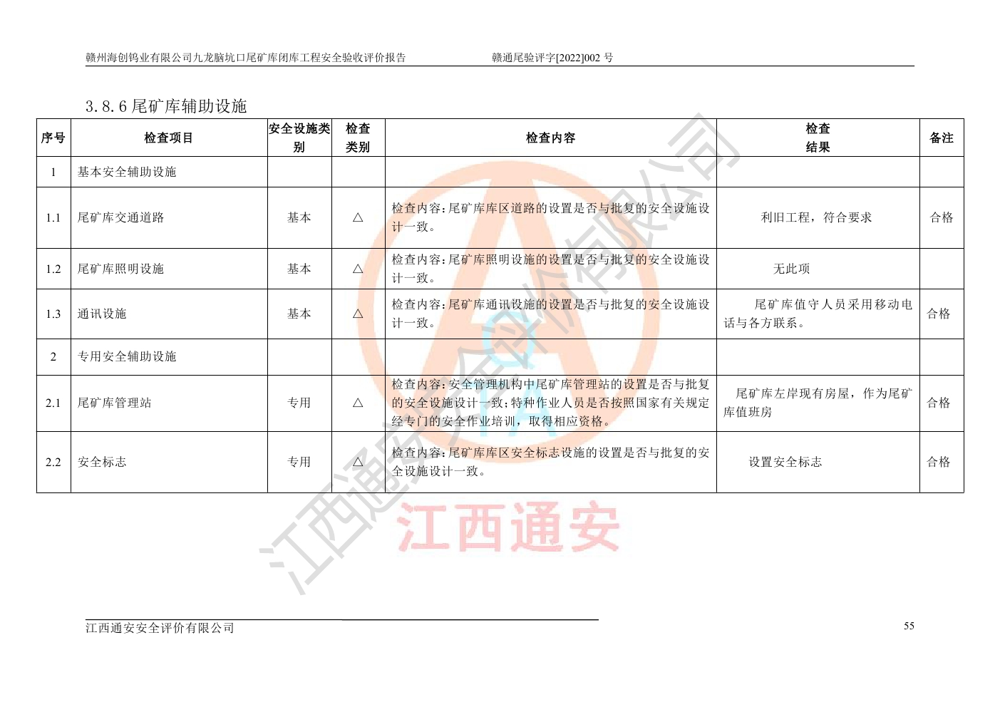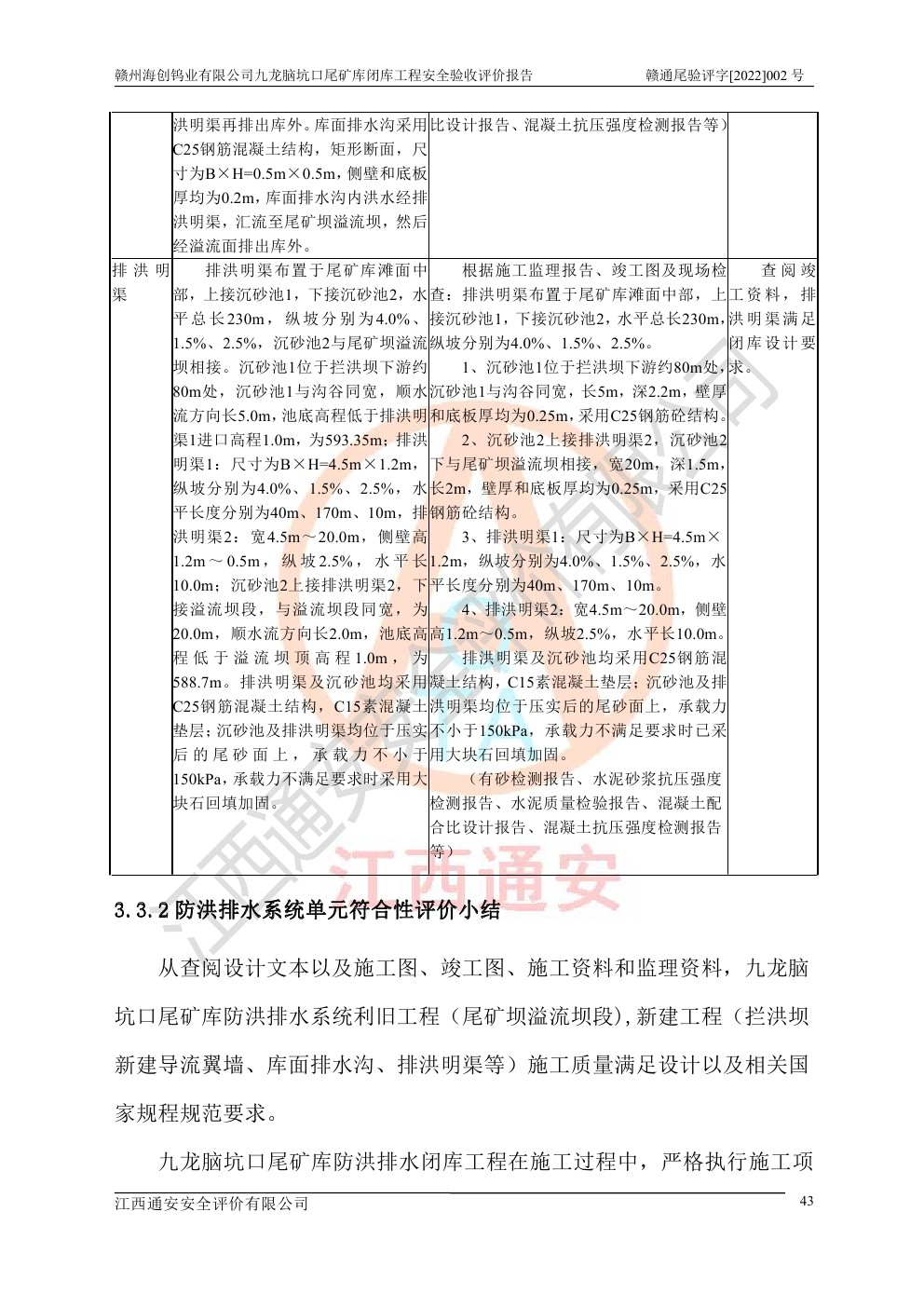 贛州海創(chuàng)鎢業(yè)有限公司九龍腦坑口尾礦庫閉庫工程安全驗(yàn)收評(píng)價(jià)報(bào)告
