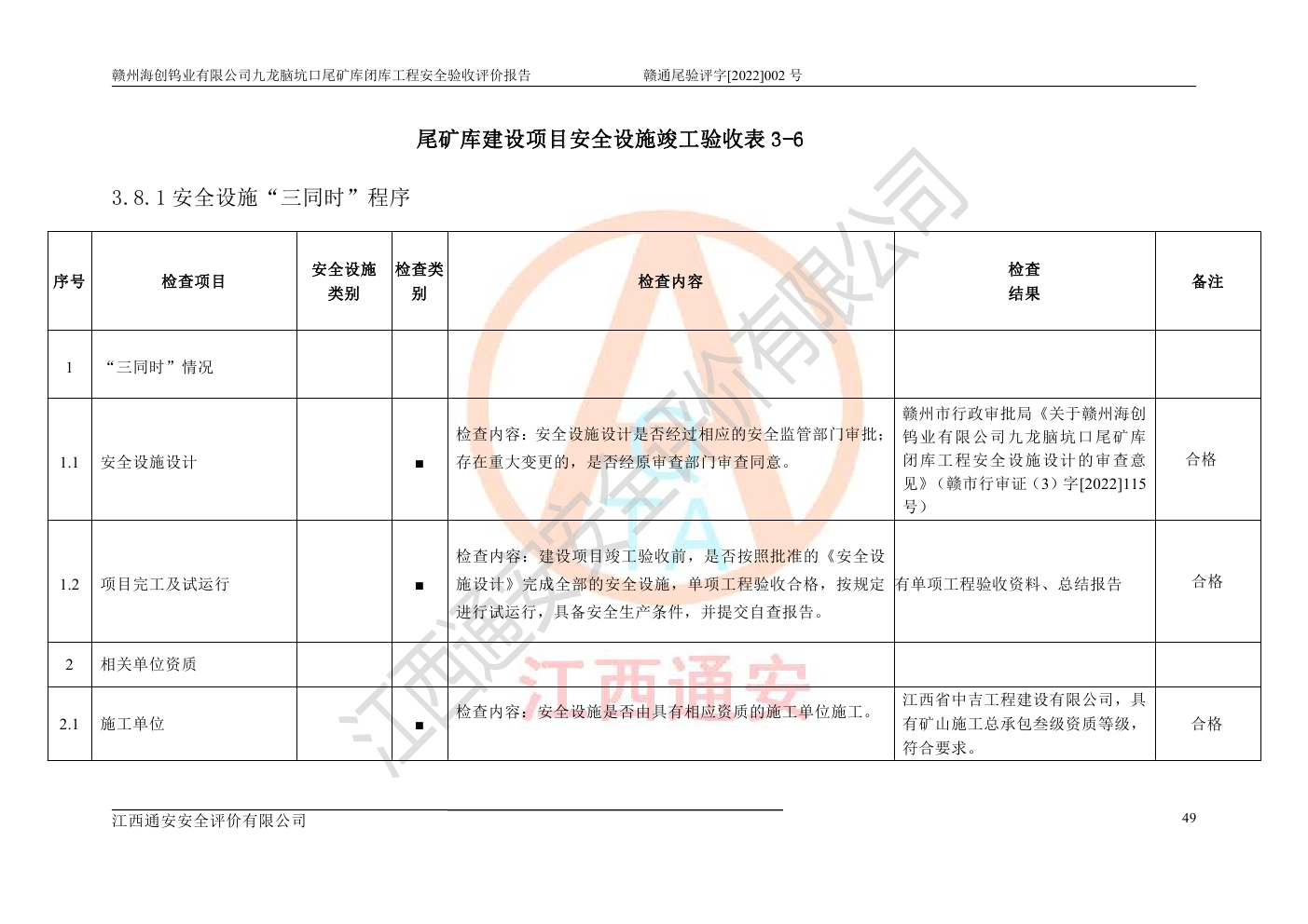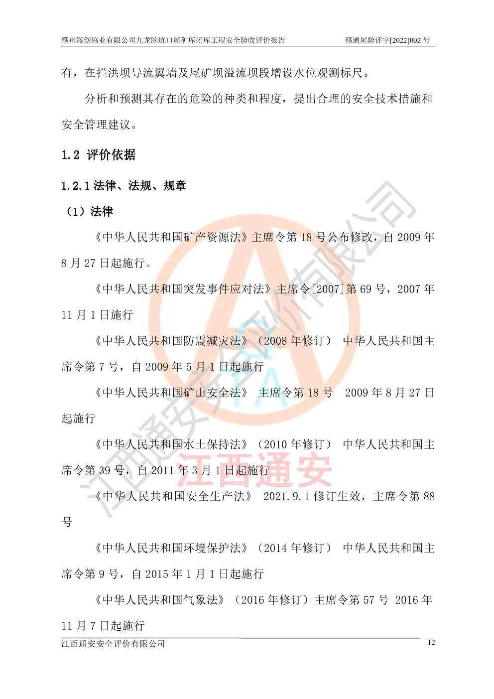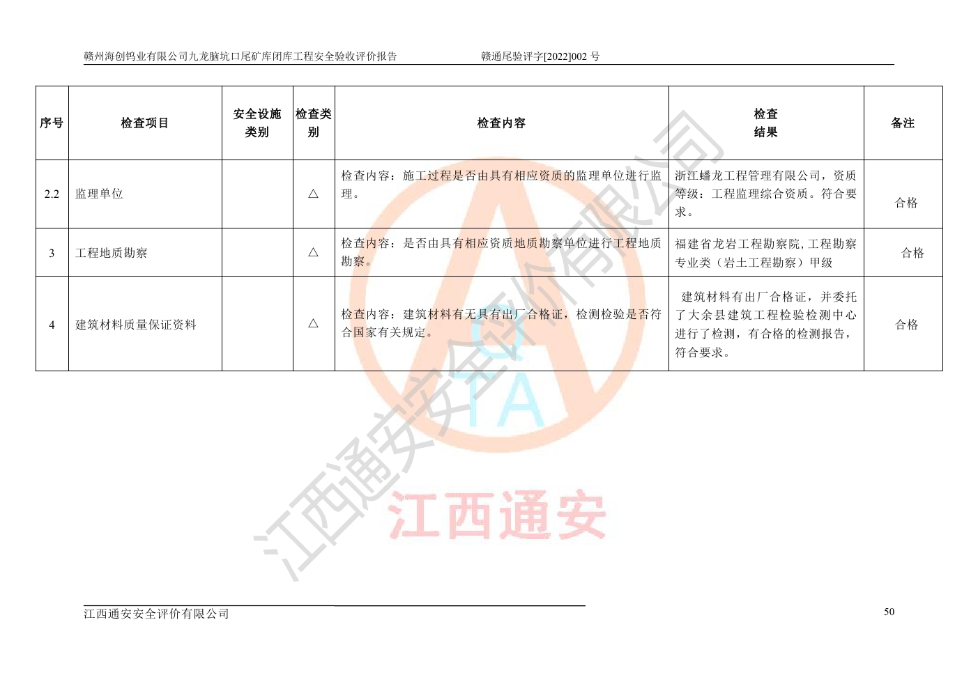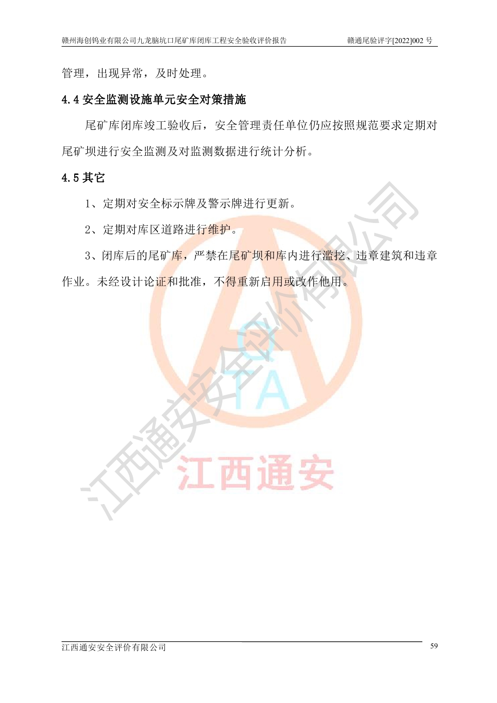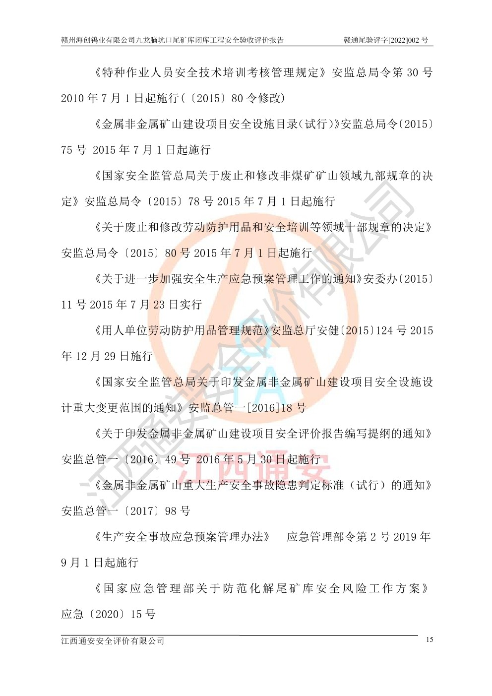 贛州海創(chuàng)鎢業(yè)有限公司九龍腦坑口尾礦庫閉庫工程安全驗(yàn)收評(píng)價(jià)報(bào)告