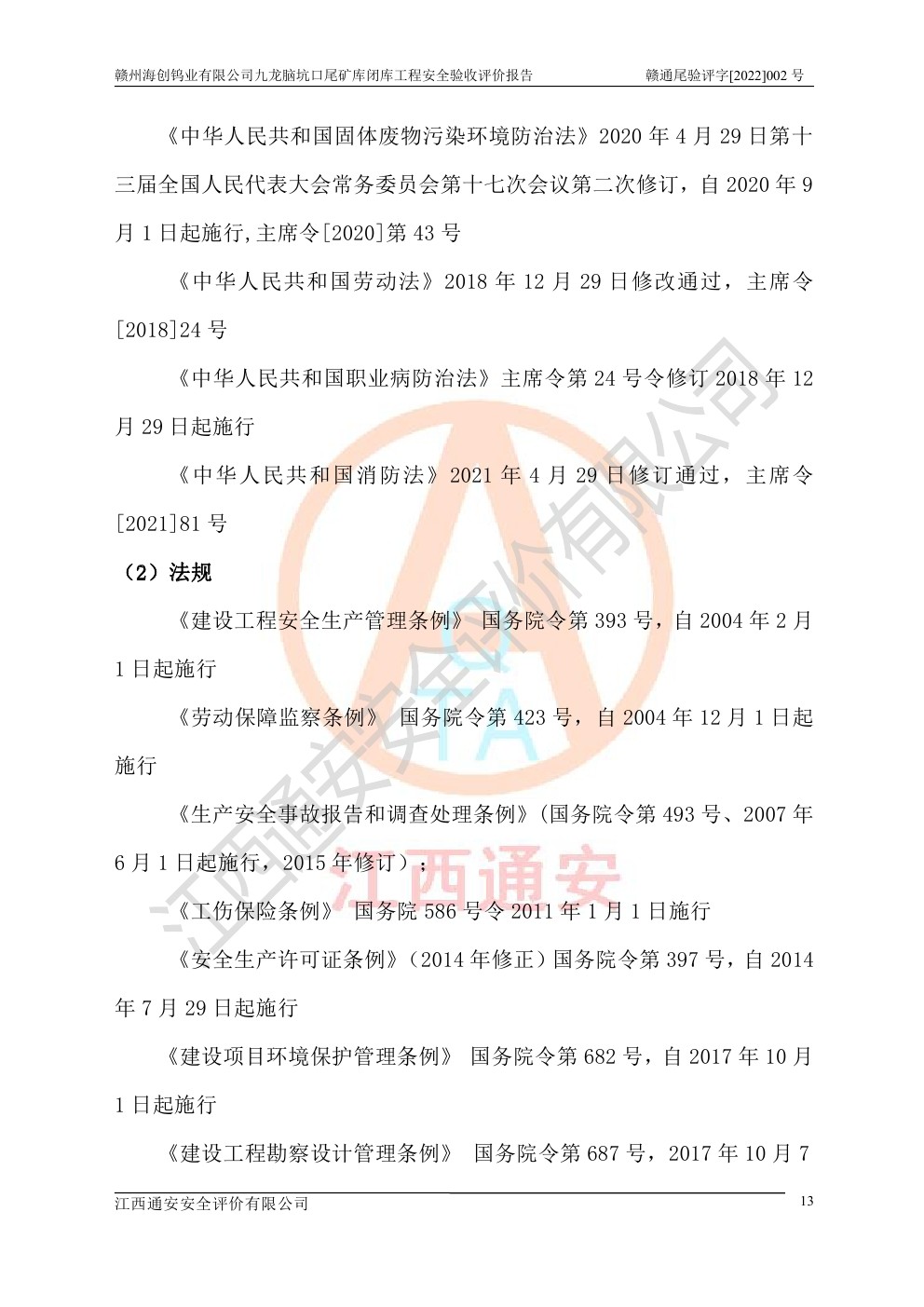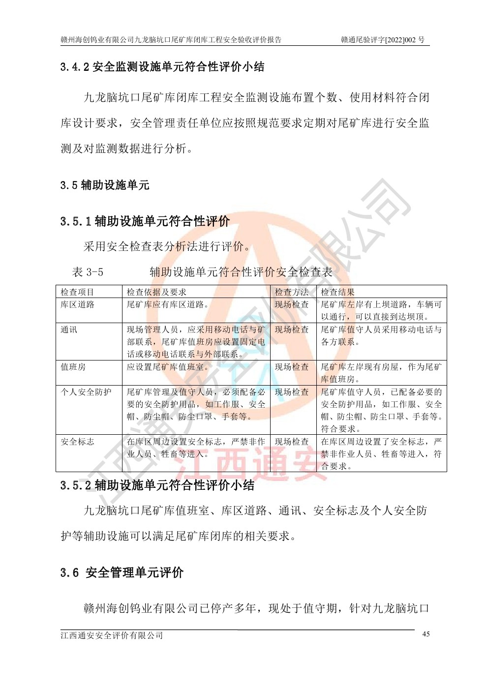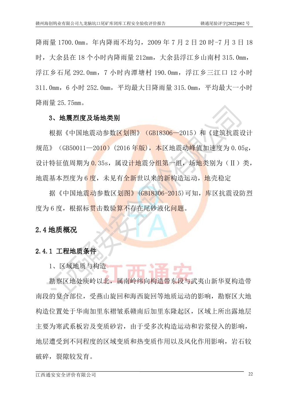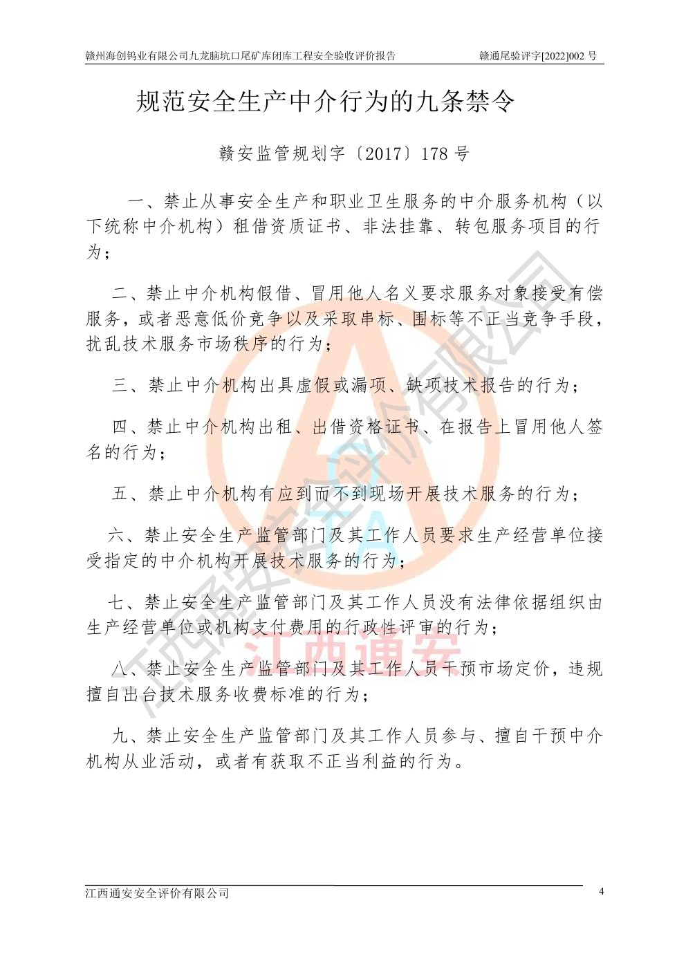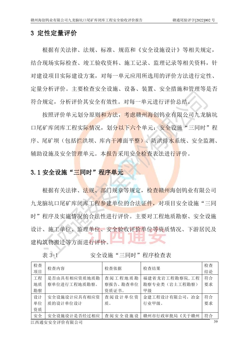 贛州海創(chuàng)鎢業(yè)有限公司九龍腦坑口尾礦庫閉庫工程安全驗(yàn)收評(píng)價(jià)報(bào)告