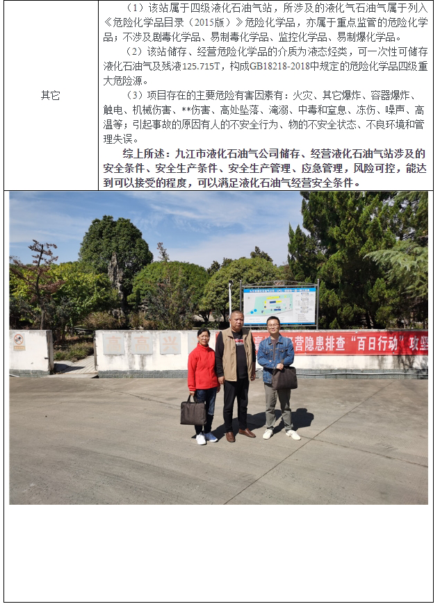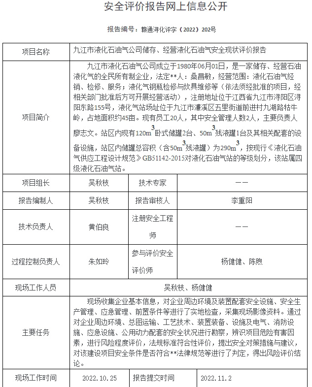 九江市液化石油氣公司儲存、經(jīng)營液化石油氣安全現(xiàn)狀評價報告