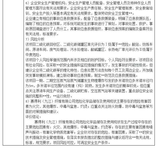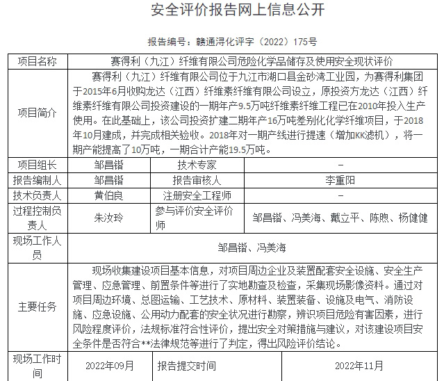 賽得利(九江)纖維有限公司危險(xiǎn)化學(xué)品儲(chǔ)存及使用安全現(xiàn)狀評(píng)價(jià)