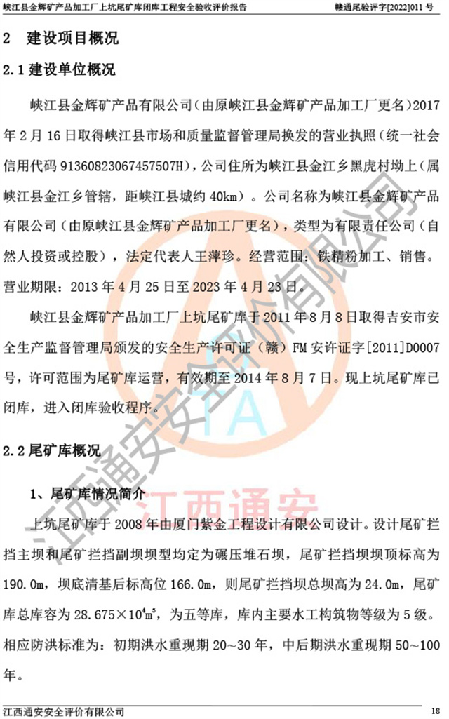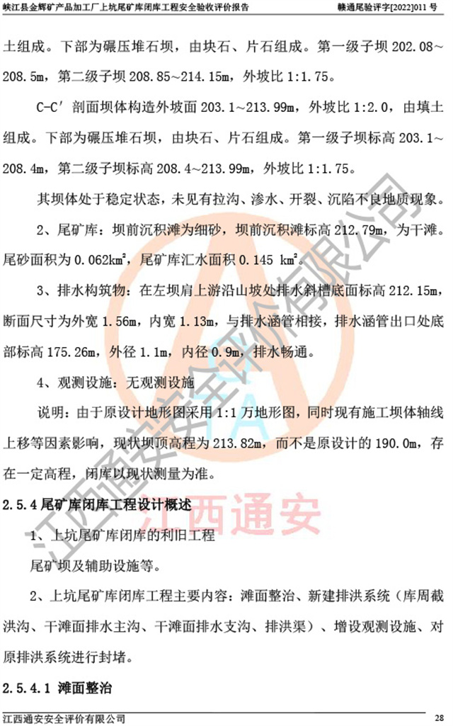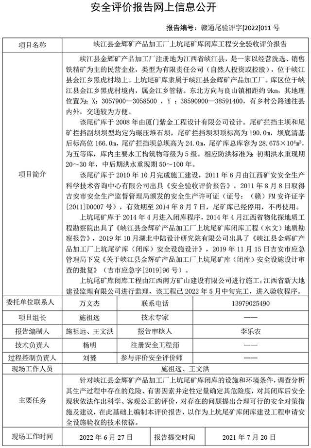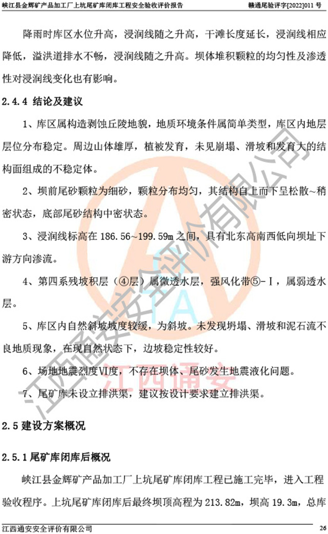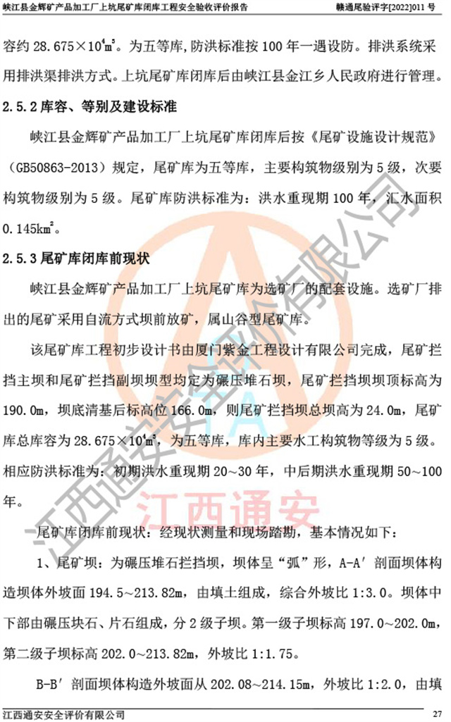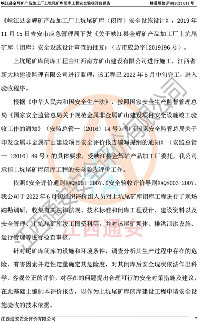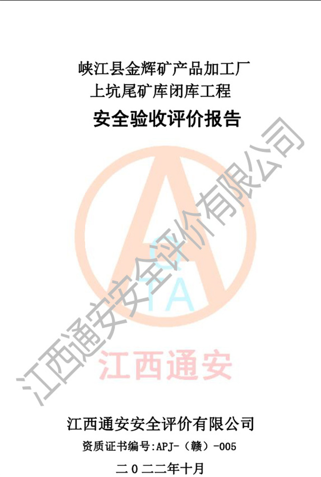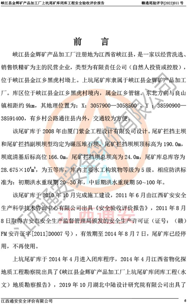 峽江縣金輝礦產(chǎn)品加工廠上坑尾礦庫(kù)閉庫(kù)工程安全驗(yàn)收評(píng)價(jià)報(bào)告