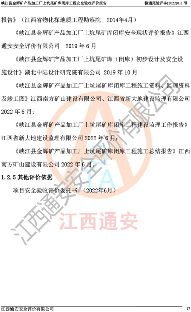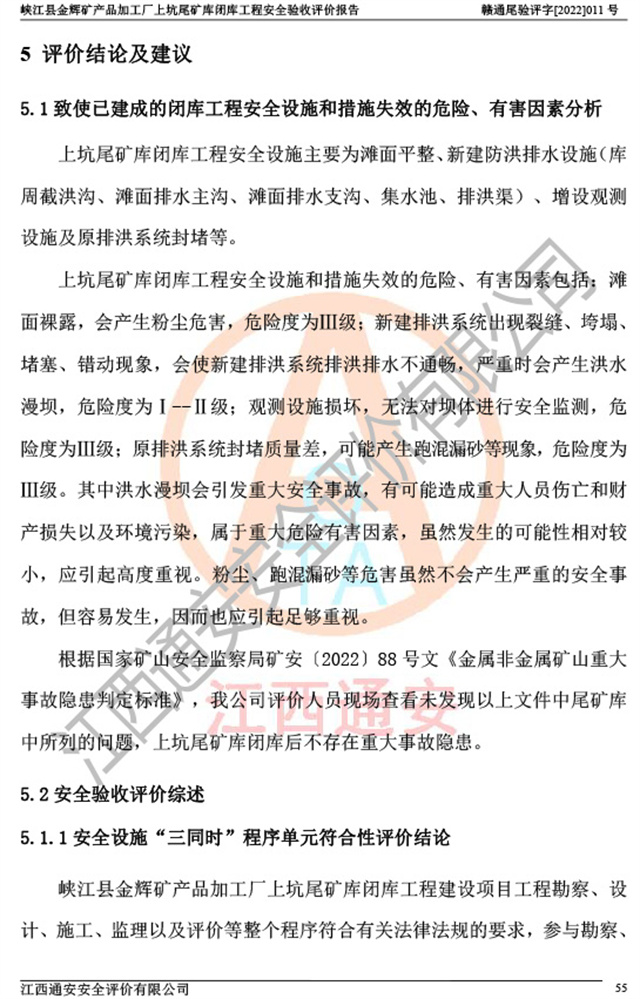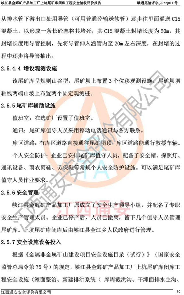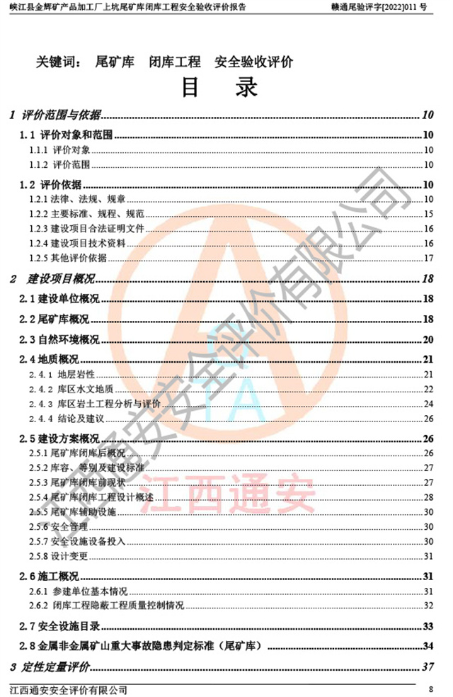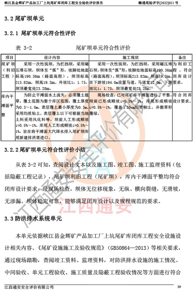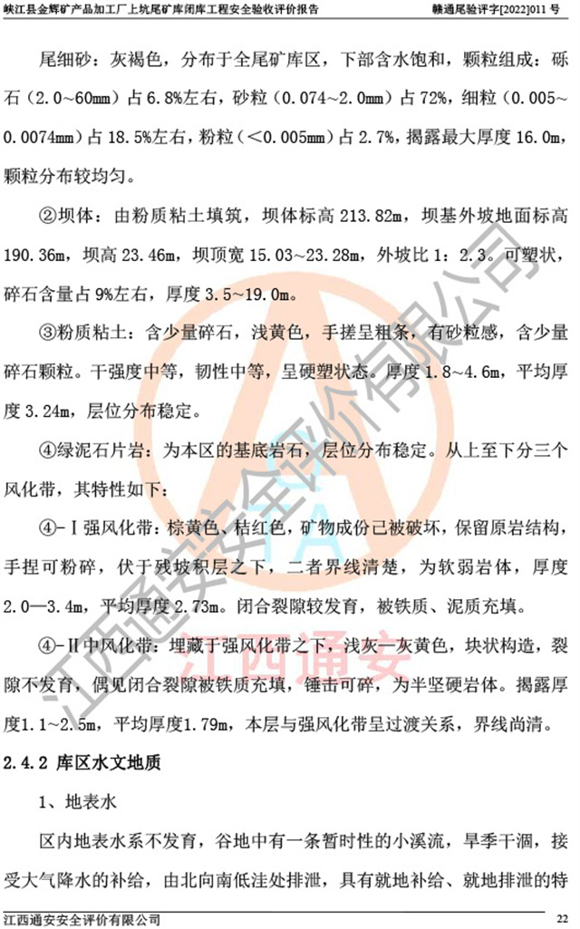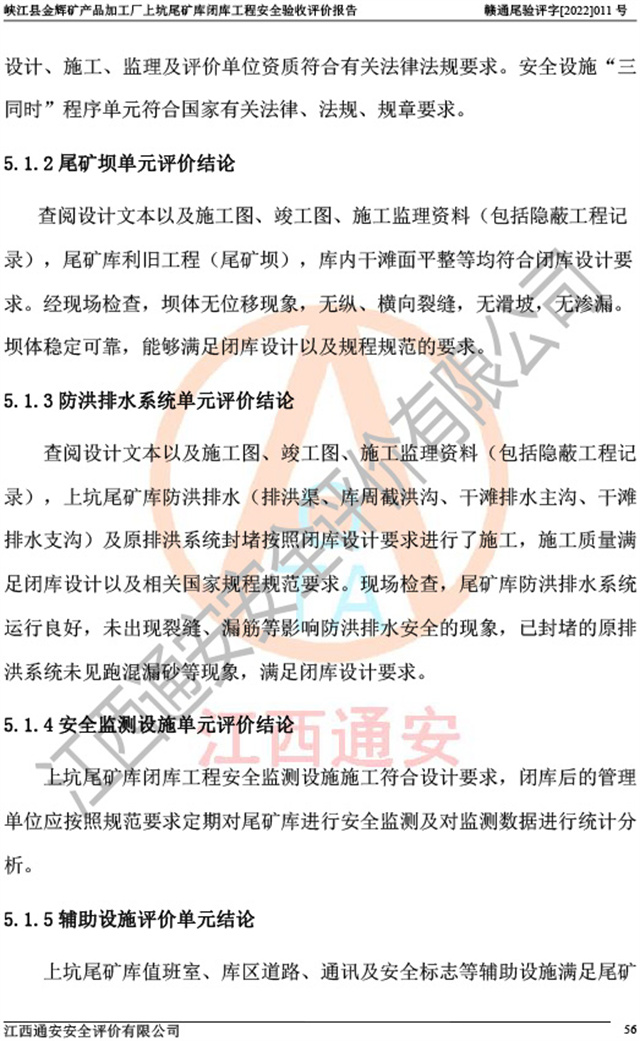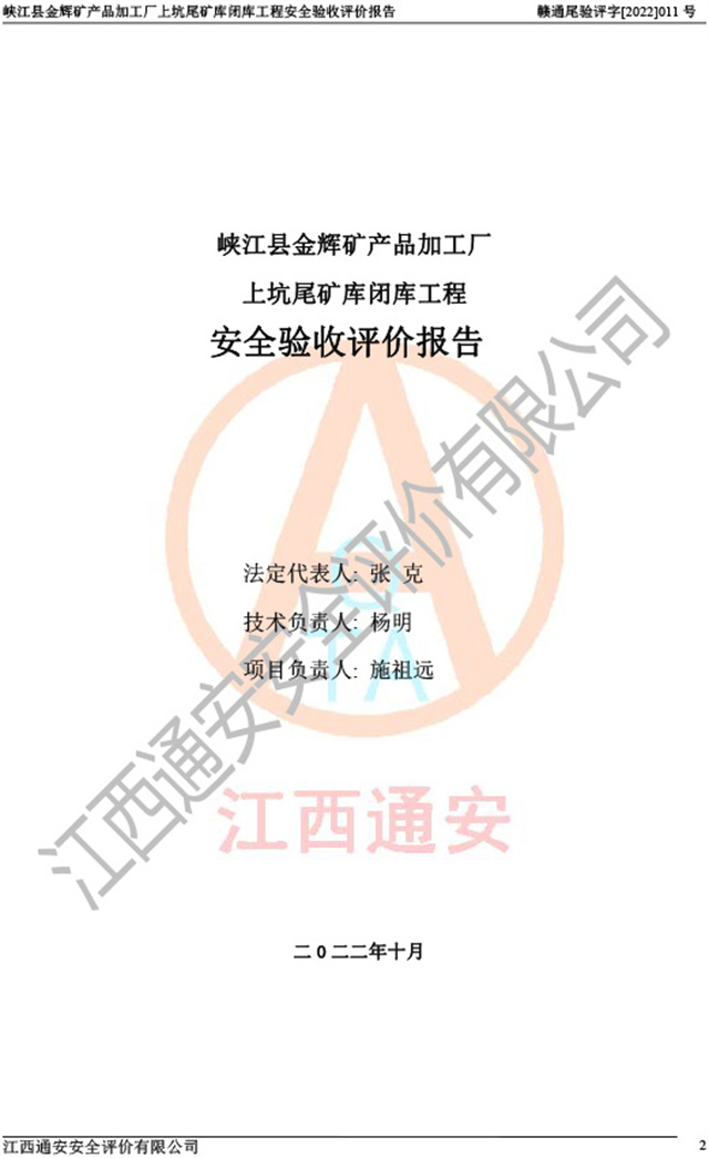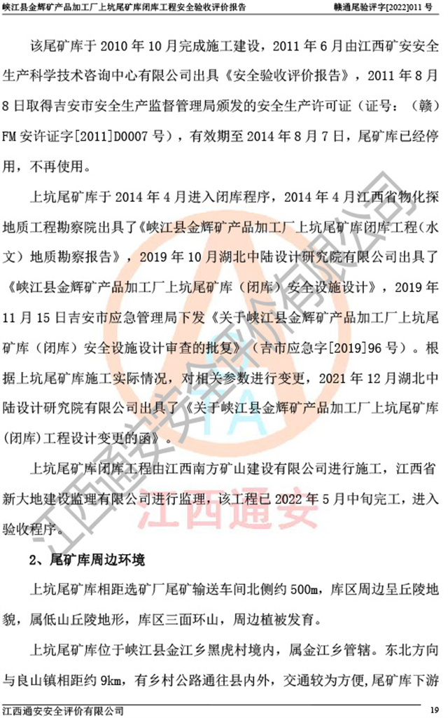 峽江縣金輝礦產(chǎn)品加工廠上坑尾礦庫(kù)閉庫(kù)工程安全驗(yàn)收評(píng)價(jià)報(bào)告