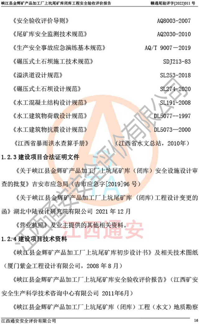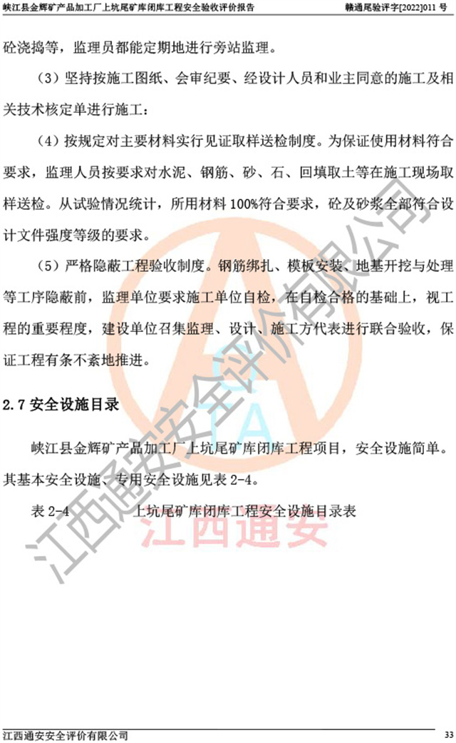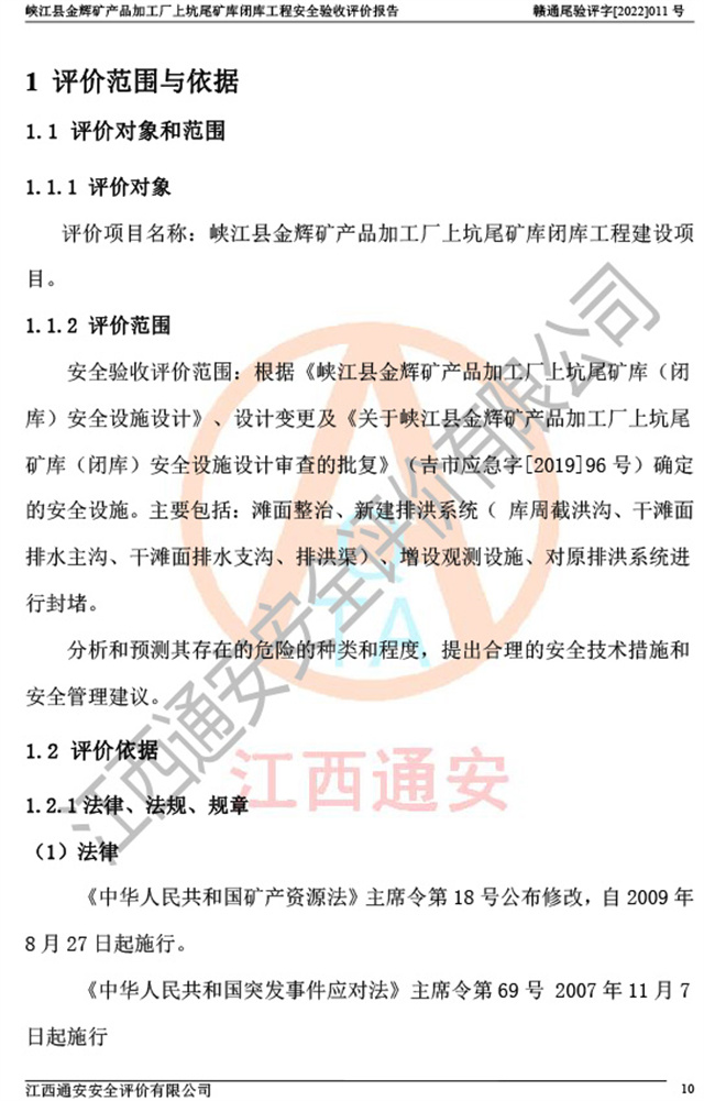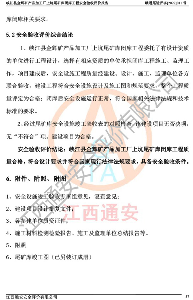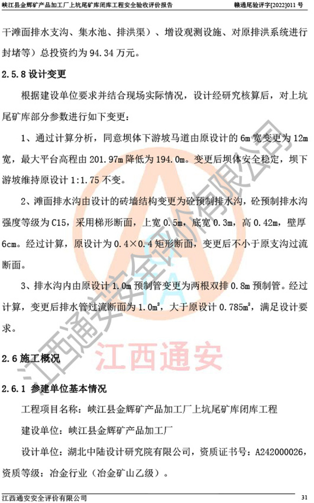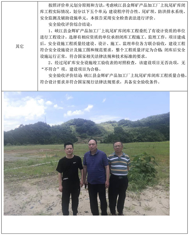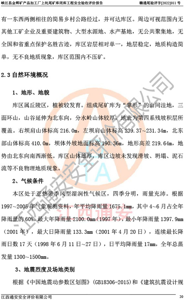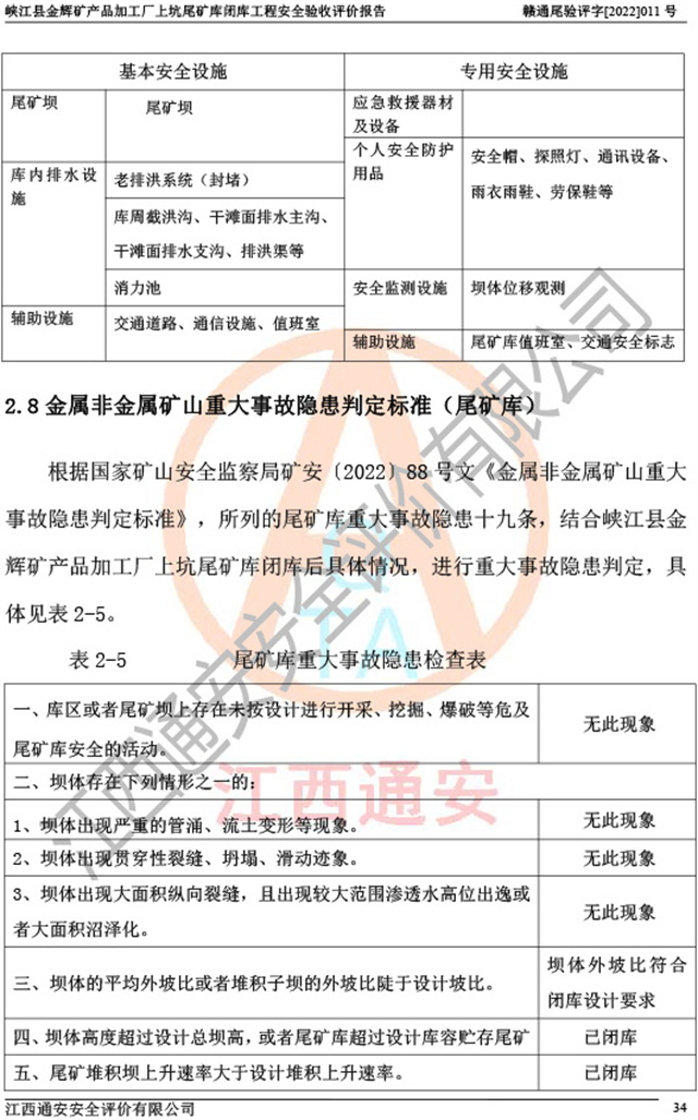 峽江縣金輝礦產(chǎn)品加工廠上坑尾礦庫(kù)閉庫(kù)工程安全驗(yàn)收評(píng)價(jià)報(bào)告