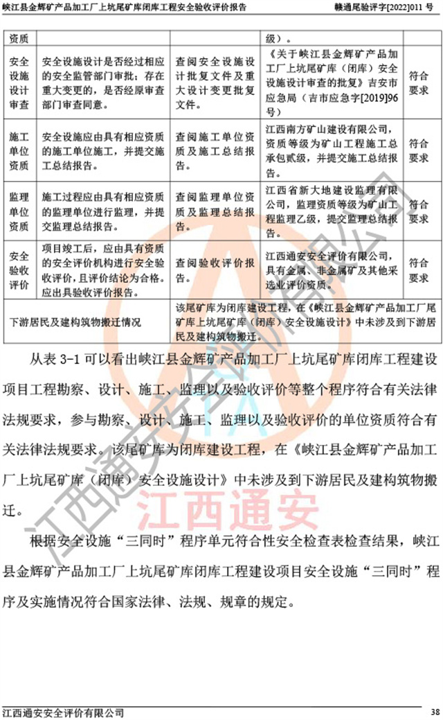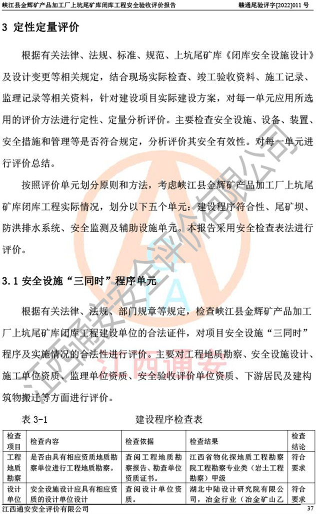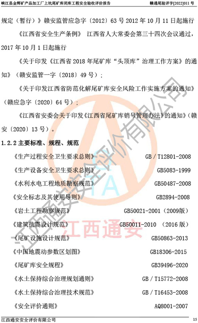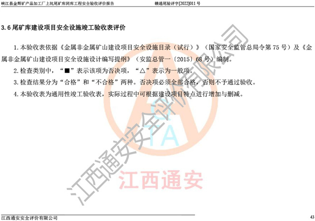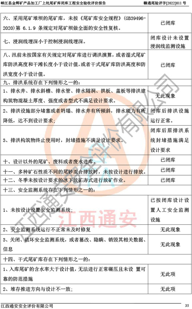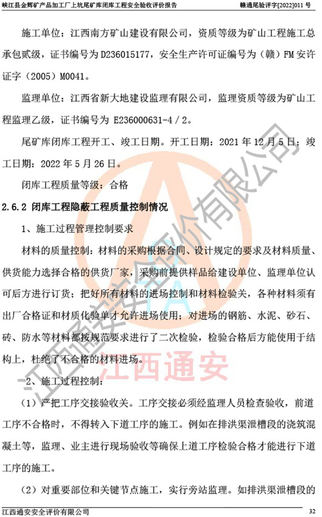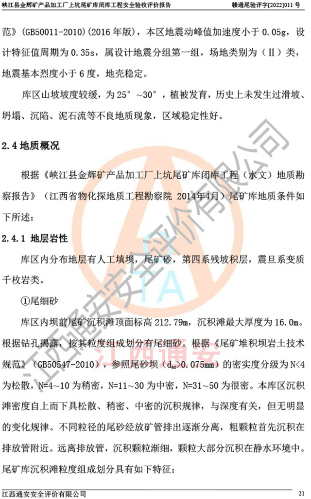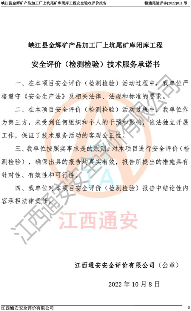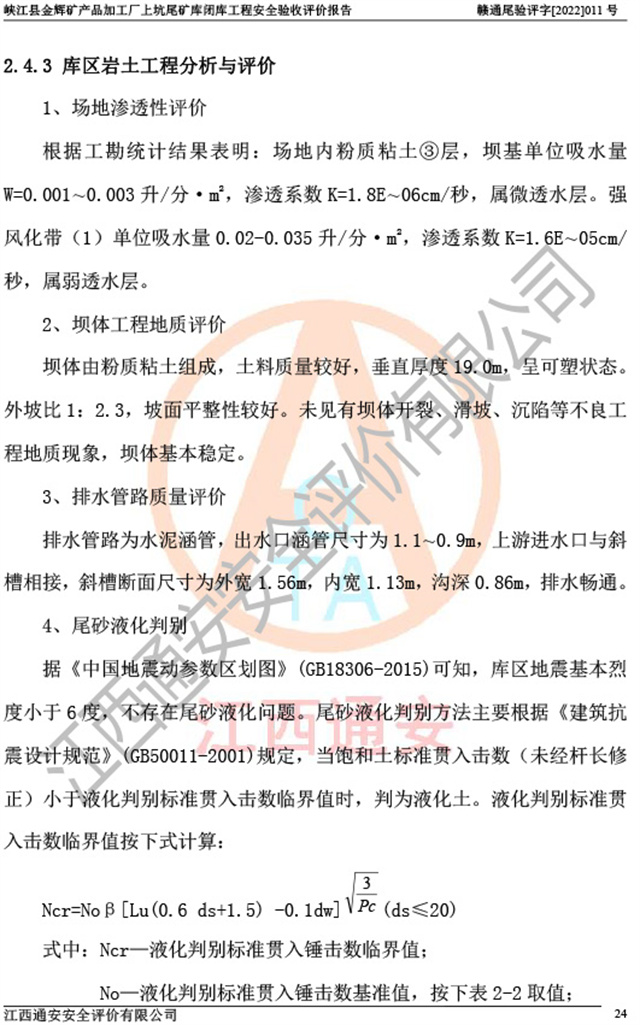 峽江縣金輝礦產(chǎn)品加工廠上坑尾礦庫(kù)閉庫(kù)工程安全驗(yàn)收評(píng)價(jià)報(bào)告