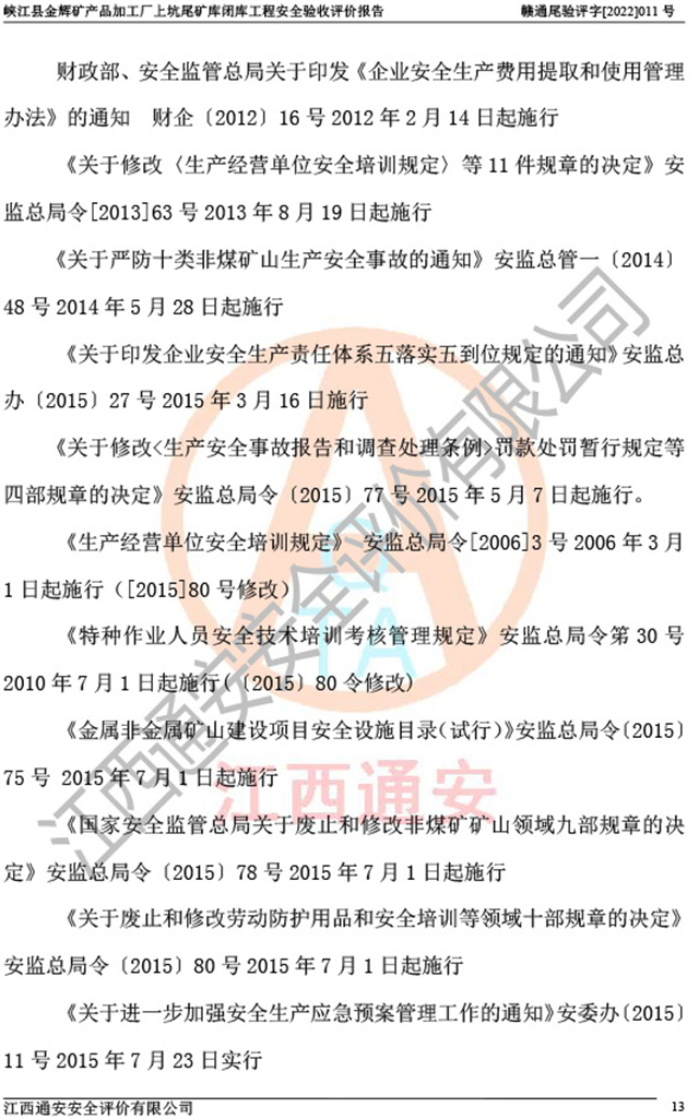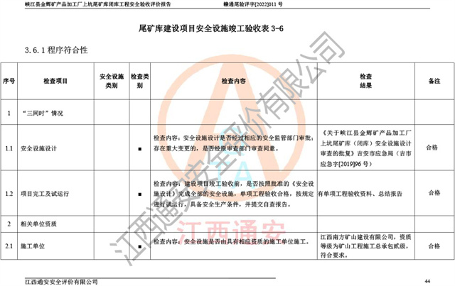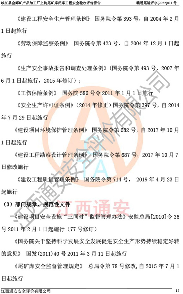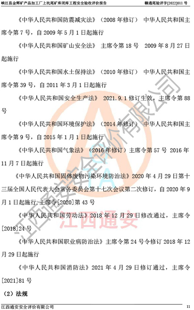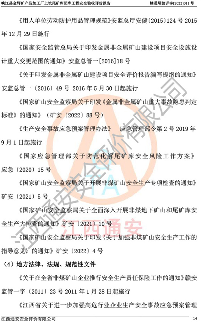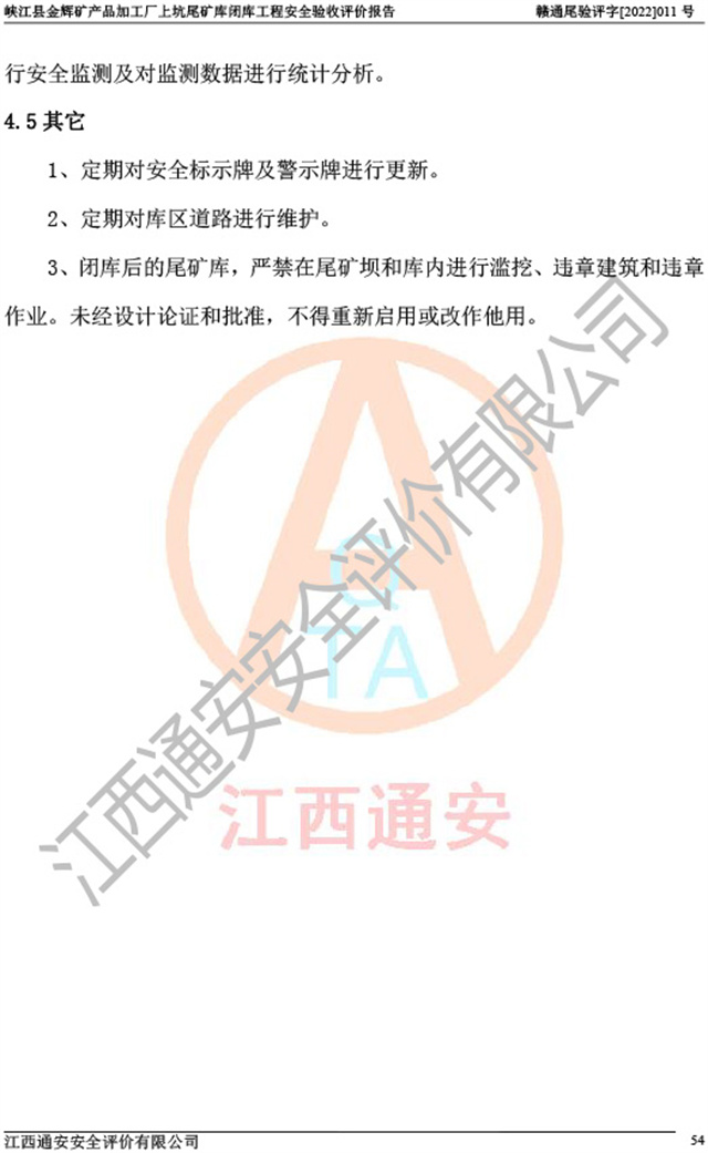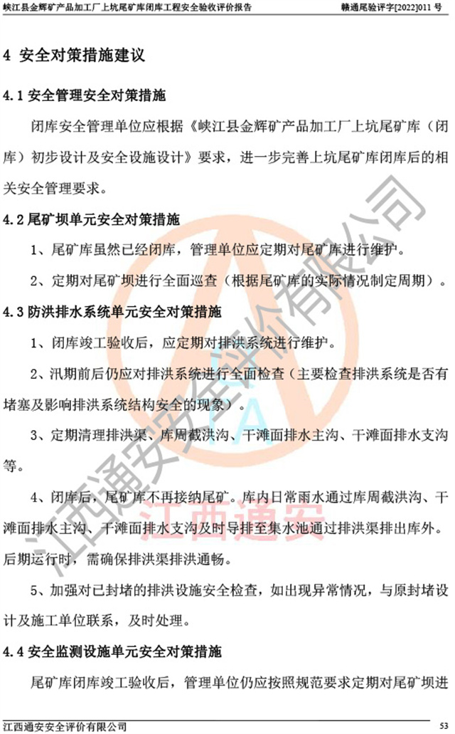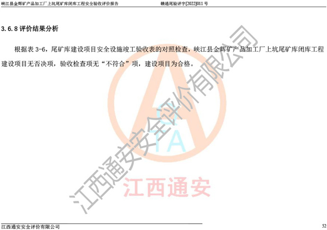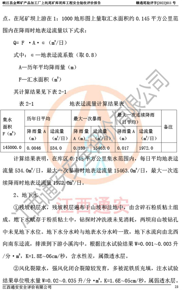 峽江縣金輝礦產(chǎn)品加工廠上坑尾礦庫(kù)閉庫(kù)工程安全驗(yàn)收評(píng)價(jià)報(bào)告