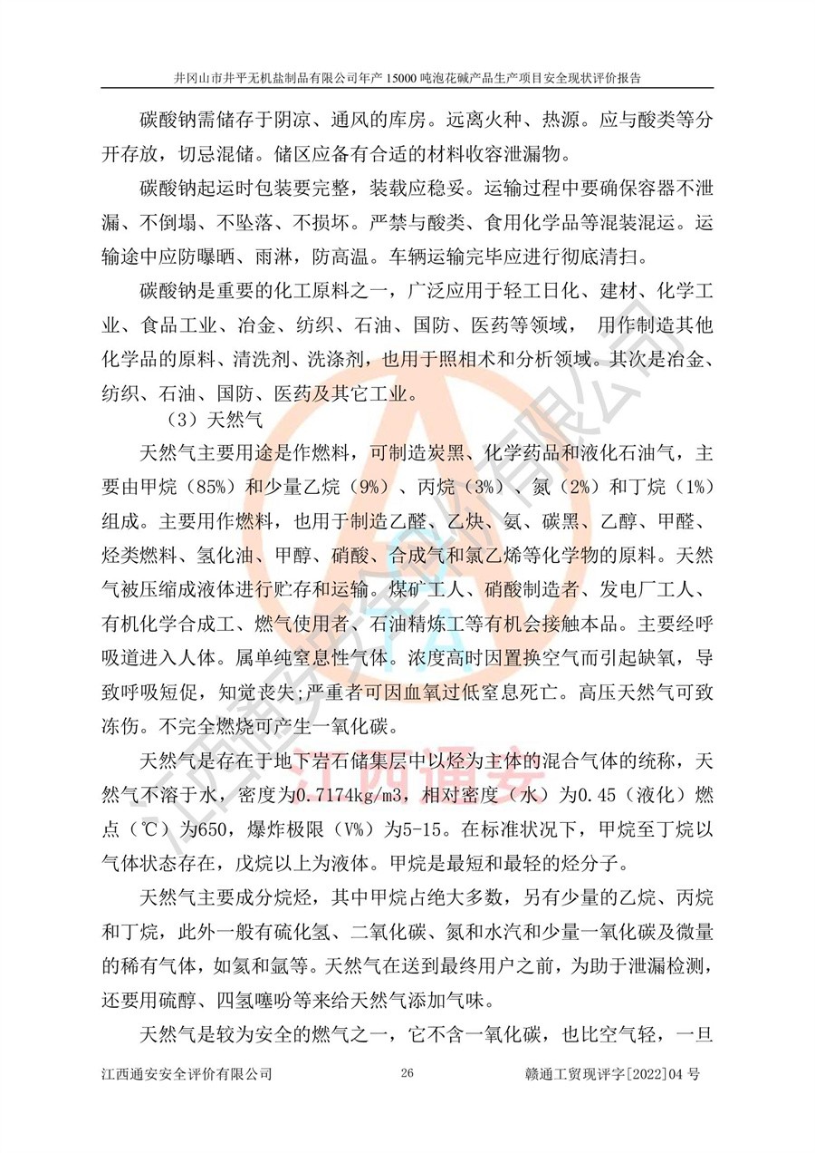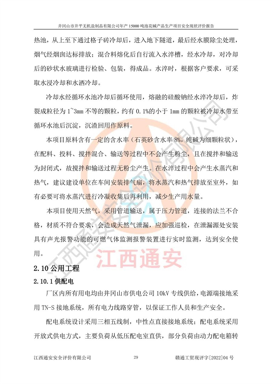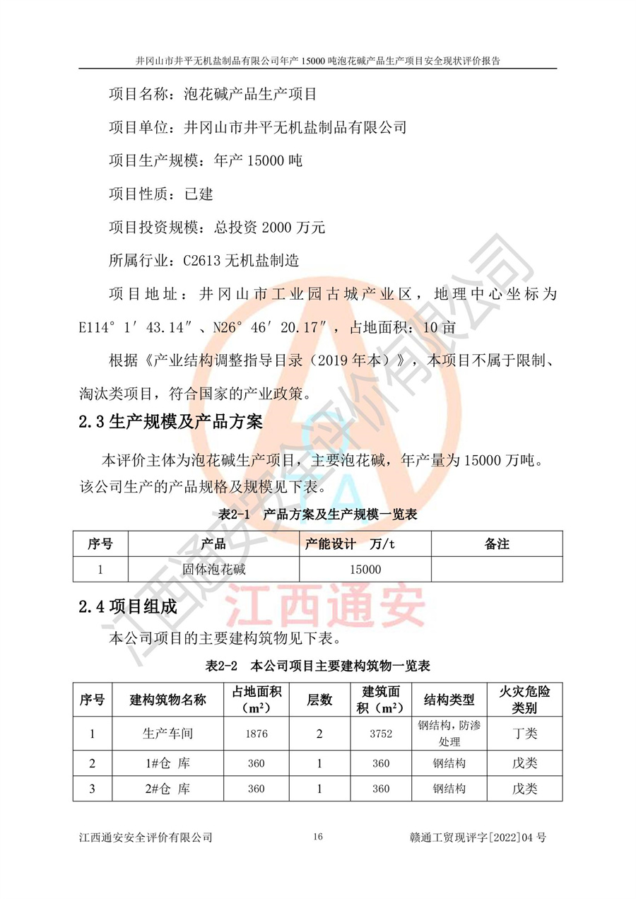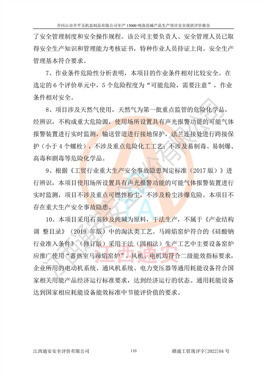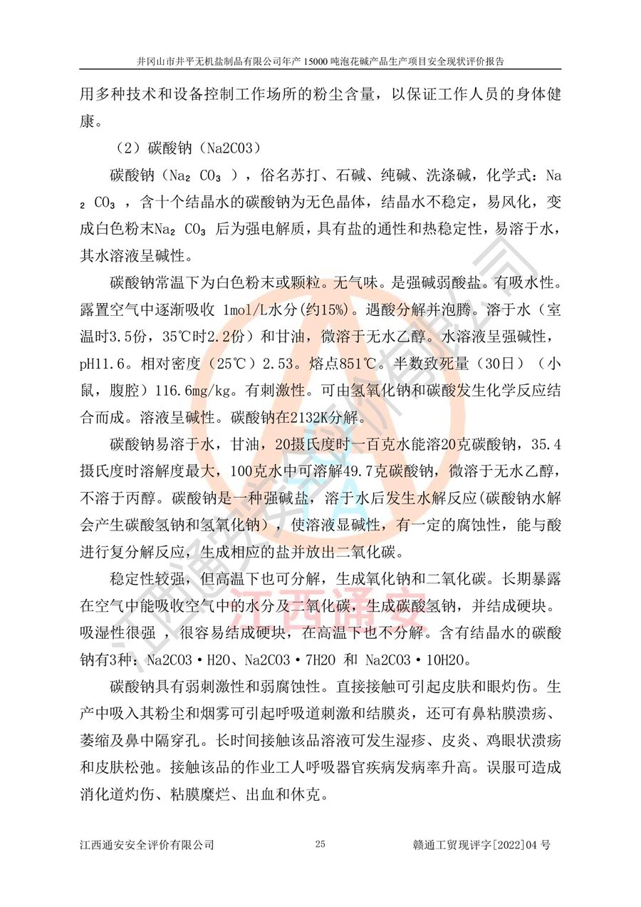 井岡山市井平無機鹽制品有限公司年產(chǎn)15000噸泡花堿產(chǎn)品生產(chǎn)項目安全現(xiàn)狀評價報告