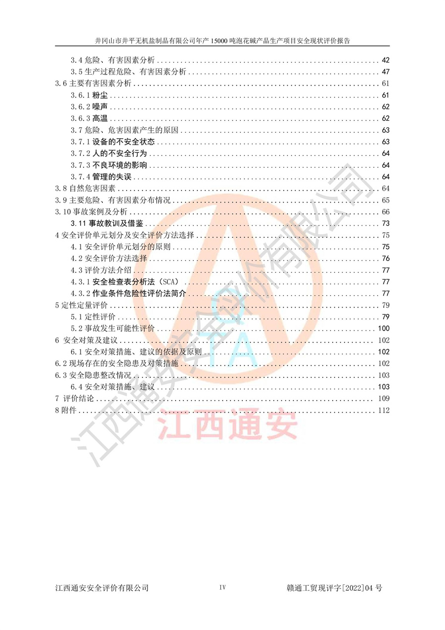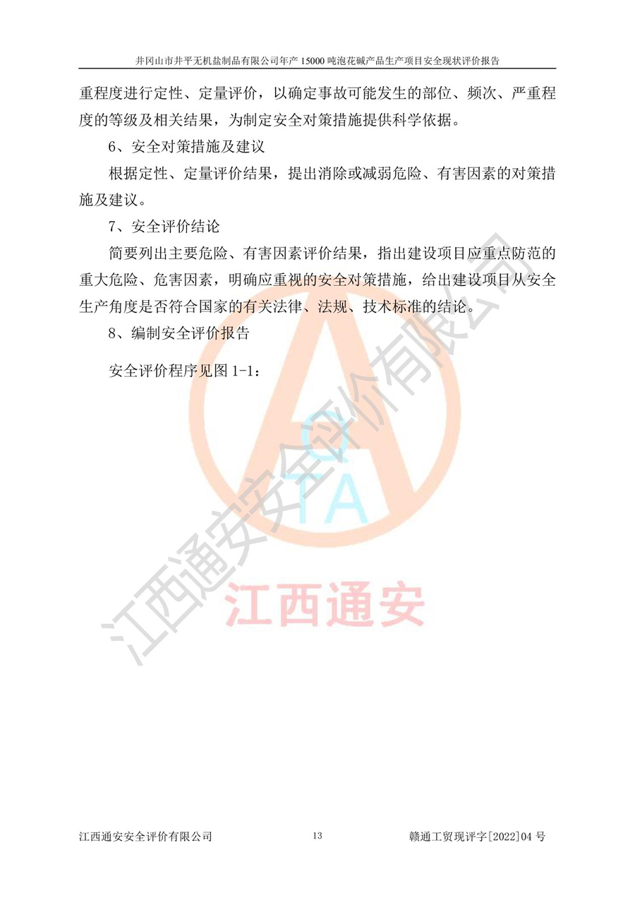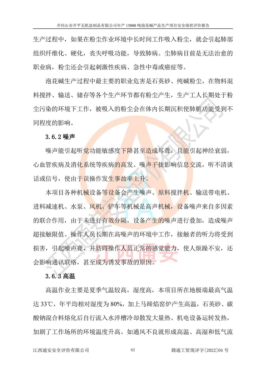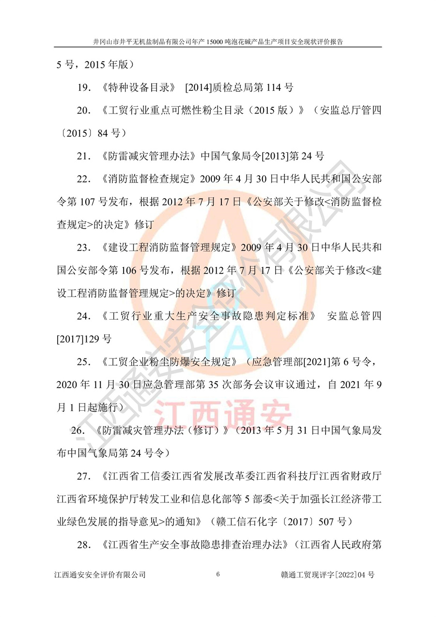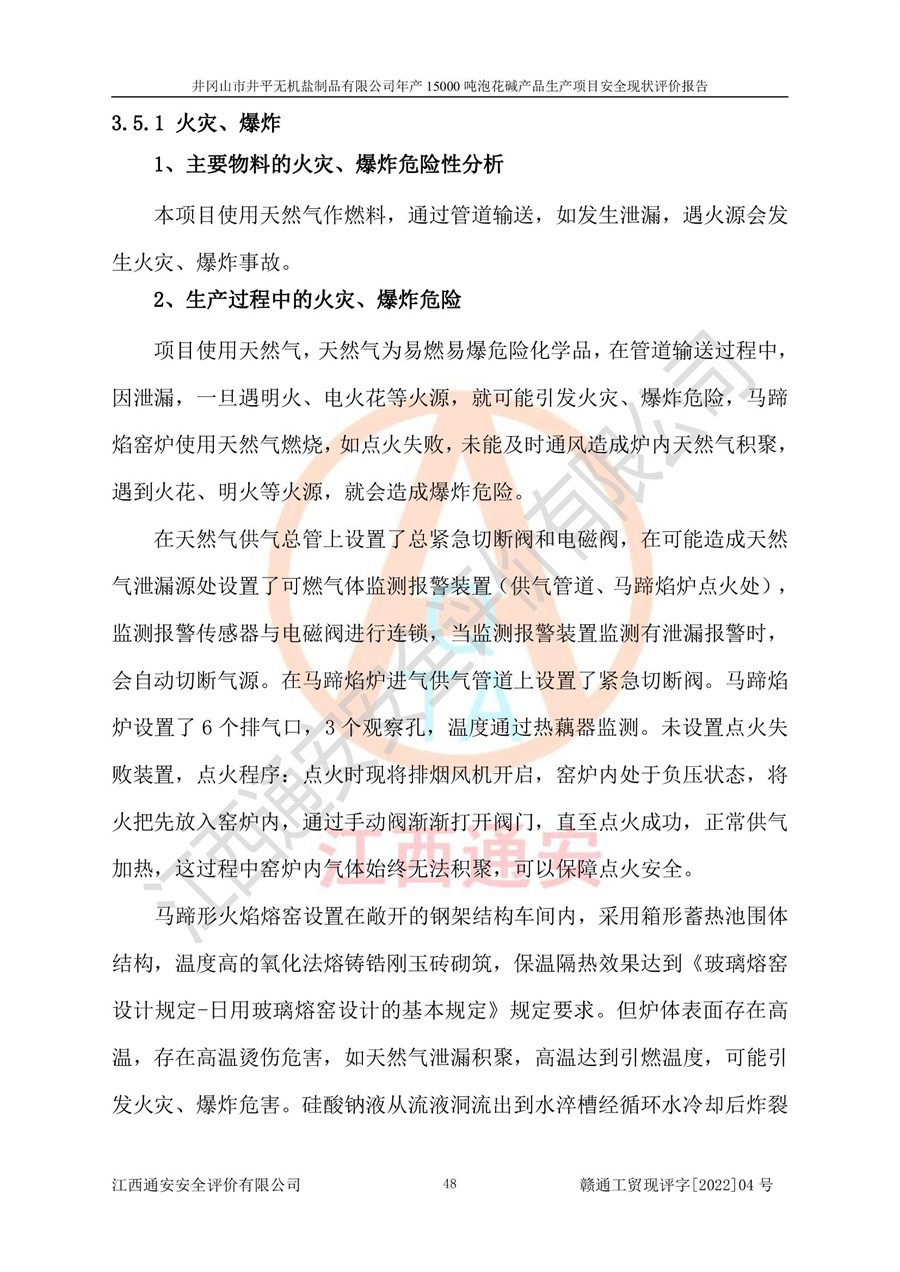 井岡山市井平無機鹽制品有限公司年產(chǎn)15000噸泡花堿產(chǎn)品生產(chǎn)項目安全現(xiàn)狀評價報告